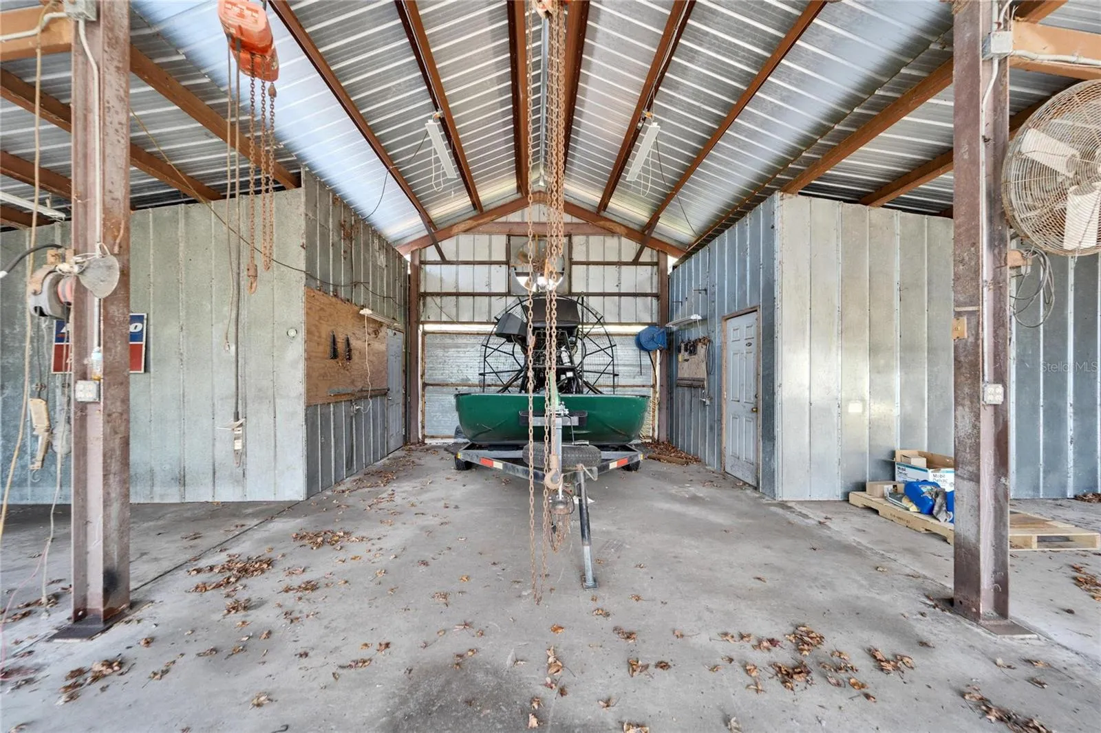 *Garage and Workshops*: In front of the home, you’ll find a large garage/shop area, perfect for storing tools, equipment, or creating your own workshop space. Also in front, a spacious 3-bay metal open shed awaits, featuring a 50-amp hookup, to accommodate your RV, boat, or golf cart. In the back, you’ll find a big shop that’s 40’x60′ under roof with an overhead lift system and 2 enclosed rooms for storage. There are also various other sheds on the property for entertaining and storage!