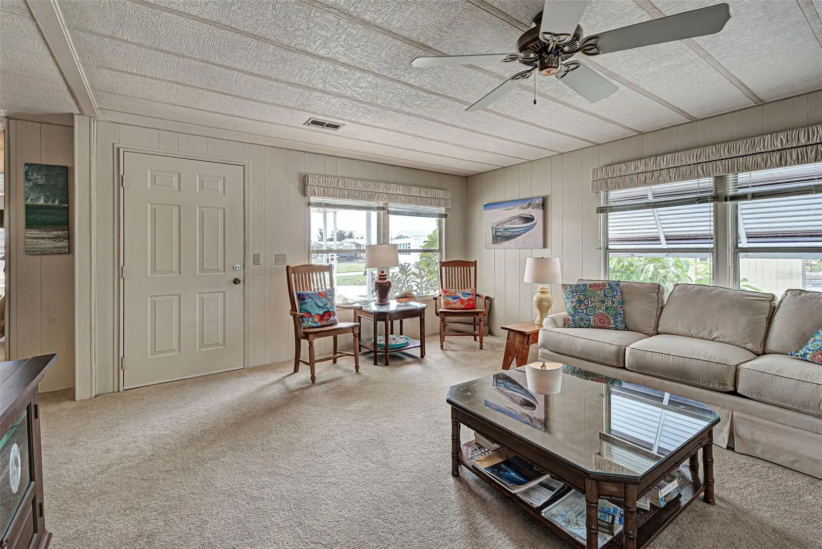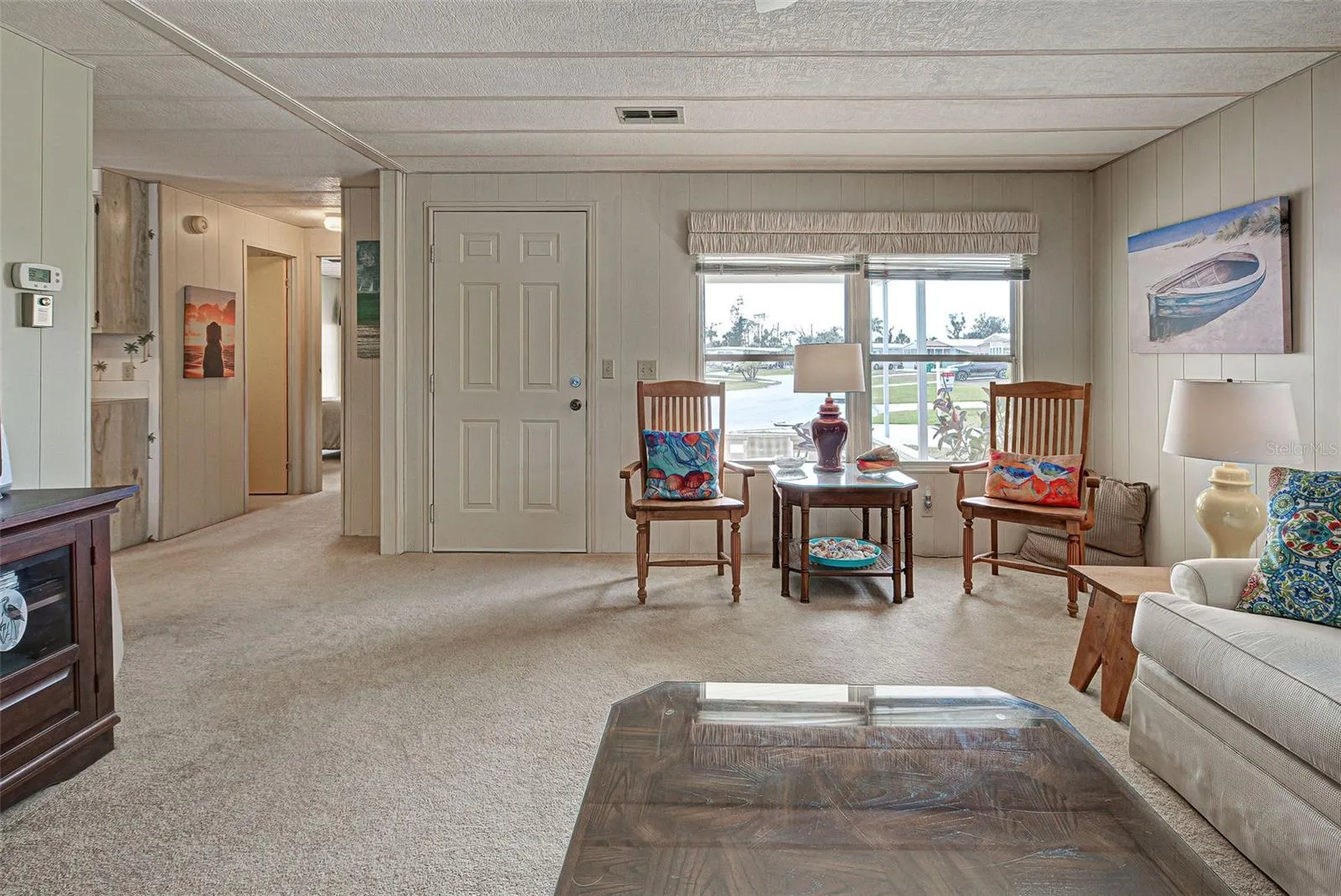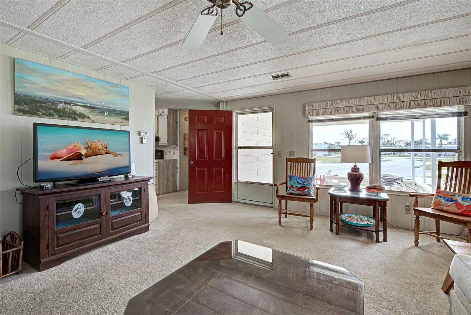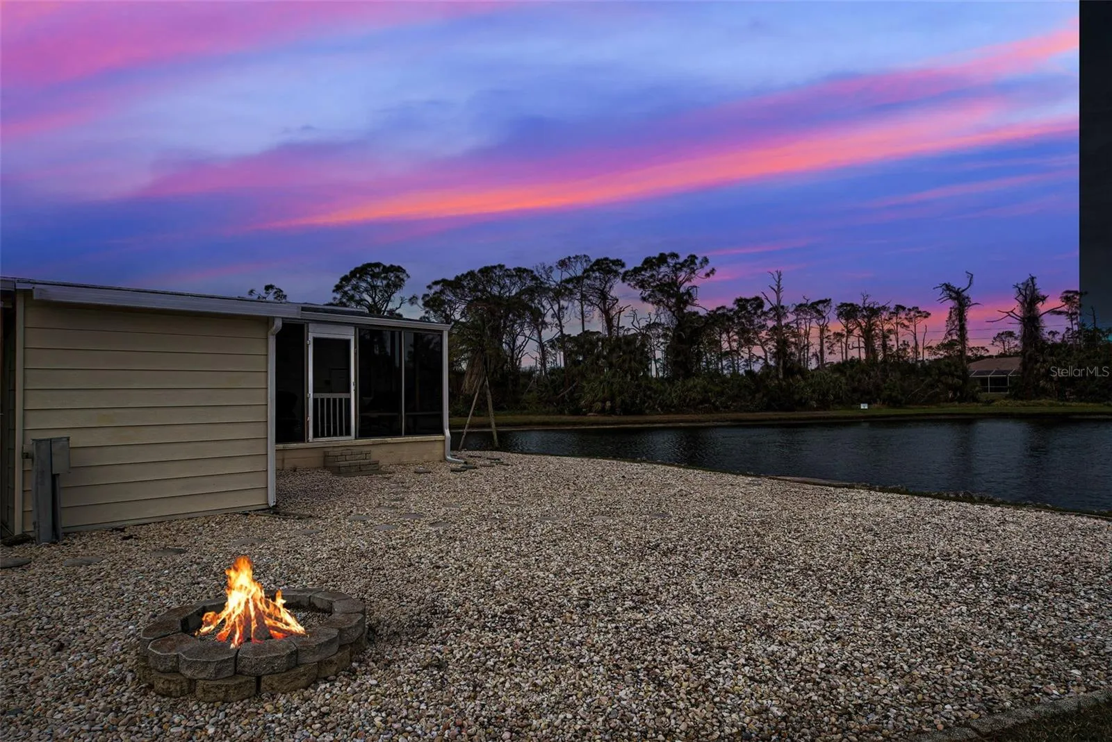 LOCATION, LOCATION, LOCATION! There’s a reason we say it 3 times. Welcome to Sandalhaven Estates/Gasparilla Pines in lovely Englewood, Florida! A +55, deed restricted, pet friendly, golf cart friendly, manufactured home community. YOU OWN THE LAND! NO LOT FEES! Being sold w/some contents included. Presenting this 1012 sq. ft., 1982, 2/bedroom, 2/bath, w/carport and back porch. This home sits beautifully overlooking a lake. Nature abounds for you to enjoy while sitting on your brand new, covered and screened back porch/lanai. Herons, Egrets, a variety of fish and wildlife call this little lake their home. Spend hours observing and enjoying “natures glory”. Many important items are new or newer-Roof 2023, Carport 2023, HVAC(Air Cinditioner) and Ducts new in 2024, Hot Water Heater 2023, Back Porch/Lanai 2023. The home has a split floorplan great for privacy when guests arrive. Kitchen opens to dining area Refrig. 2021. Primary bedroom has bath w/shower and storage. Slider leading to back porch. Attached shed has double entry doors. Shed houses washer/dryer (dryer 2024). Room for tools and yard items. Did I mention the roomy, covered front porch? So attractive and perfect for entertaining, grilling out or just lounging. No grass to mow as the entire lot is landscaped with stone. Makes the property a breeze to maintain. Located close to Boca Grande, Englewood Beach, Lemon Bay, boating, fishing and golf. Shopping and restaurants a short drive away. P.S. walkers, runners, and bikers will love the extra wide sidewalk located on Placida Road. Come enjoy SUN, FUN – that’s FLORIDA!