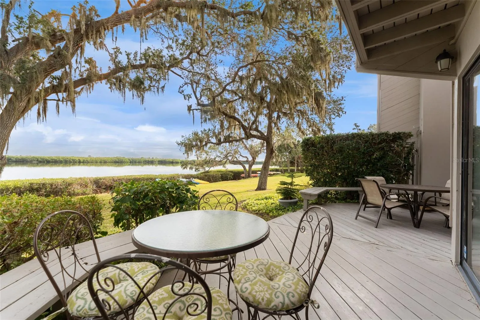 Tranquil WATERFRONT living is within your reach in this GROUND FLOOR condo in Sunfish Bay. Situated on the shores of Cooper’s Bayou on Old Tampa Bay, this condo offers a highly coveted ONE CAR GARAGE and a plethora of waterfront amenities. Imagine yourself waking up to the sun rising over the Tampa Bay as dolphins and manatee play in your backyard waters. With the cool, coastal tides lapping onto shore, launch your paddle board from the private boat launch just steps from your front door. Enjoy a friendly game of pickle ball with your neighbors on the newly resurfaced private community courts. Upon entering this lovely condo, you will be mesmerized by the water view from every window. Walk out onto the deck that overlooks the bayou waters to enjoy your evening bbq’s and cocktails. The kitchen has undergone a renovation that includes hardwood cabinetry, granite counter tops, a glass tile back splash, and terracotta tile flooring. The master bedroom offers stunning water views with spacious dimensions, generous closet space and a master bathroom en-suite. The home will convey fully furnished and turnkey for the new homeowner!! Florida’s playground is in your backyard at Sunfish Bay with a heated community pool, a private kayak launch, a fishing pier, tennis courts with pickleball, and a watercraft rack for kayak/SUP/canoe storage. The HOA fee Includes: Water, Sewer, Trash, Cable, Internet, Community Pool, Tennis Courts, Pickleball Courts, Kayak Launch, Kayak Storage. Amazing bonus is that this home did NOT sustain any water damage during the recent hurricanes! NEW HVAC installed in 2025. Located just steps from the Ream Wilson bike trail and a short walk to downtown Safety Harbor, this home is not just a condo, it’s a lifestyle!