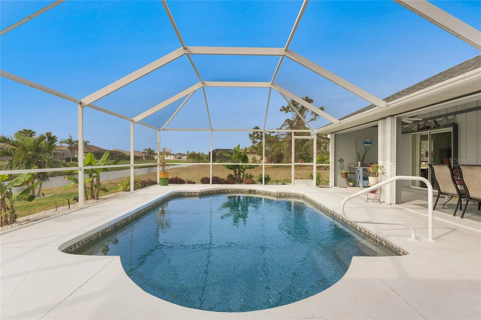 Price Drop! Indulge in the pinnacle of waterfront living with this immaculate Southern exposure pool home, boasting some of the most captivating views in Southwest Florida. Whether you’re a year-round resident, a host to visitors, an astute investor, or simply seeking a splendid winter retreat, this beautiful Rotonda West home presents an irresistible opportunity. From the moment you approach the driveway, you’ll be struck by the meticulous craftsmanship that has gone into fashioning this opulent residence. Stepping inside, you’ll be greeted by an elegant foyer that ushers you into a sprawling, open-concept layout. This residence exudes elegance with an extended screened lanai, offering an awe-inspiring water vista that seamlessly blends indoor and outdoor spaces for effortless entertainment. This thoughtfully designed home comprises three bedrooms, two bathrooms, a kitchen, a spacious living room, a formal dining room, a family room, a convenient inside laundry room, and a two-car garage. The expansive kitchen features luxurious granite countertops, tile flooring, stainless steel appliances, black granite composite sink, tile backsplash, recessed lighting, a built-in pantry, and much more! The 15×12 living room impresses with its luxury vinyl plank flooring, pocket sliding glass doors, and a captivating water and pool views. The 13×11 family room offers tile flooring, a tray ceiling, and plenty of extra room for entertaining guests. The 14×9 formal dining room boasts ample space for a sizable dining table. The master bedroom is a sanctuary unto itself, showcasing two generously sized walk-in closets, pocket sliders leading to the lanai area, a tray ceiling, a ceiling fan, and Luxury vinyl plank flooring. The master bathroom features a beautifully tiled walk-in shower, tile flooring, updated lighting, and much more! On the opposite wing of this home, you’ll find two spacious spare bedrooms with walk-in closets, and a second bathroom with an inviting tiled walk-in shower. The interior laundry room is complete with an extra closet for storage, tile flooring, washer, and dryer. The spacious two-car garage of this home features a Liftmaster My Q garage door opener, hurricane rated garage door, and ample storage space. Step outside, and you’ll be greeted by a truly exceptional outdoor living area. The extended 27×10 under roof lanai features two ceiling fans and breathtaking water views. The outside of this home also features a Pebble Tec pool with electric pool heater, tropical landscaping, and an irrigation system that is fed by the canal. Did I mention that this home boasts a 2022 roof, 2020 HVAC, 2018 hot water tank, and 2019 hurricane shutters? The best part is that this property is not in a Flood zone and would not require flood insurance. Rotonda West is a fantastic area with deed restrictions and low HOA fees. The location is perfect! You will find parks, bike paths, a community center, walking trails, tennis courts, and numerous golf courses within a short distance. You will also be within minutes of the Gulf of Mexico beaches, boating, fishing, dining, shopping, and all types of outdoor activities…you name it, and it is close! Don’t forget to check out the Video Tour and 3D Walkthrough!