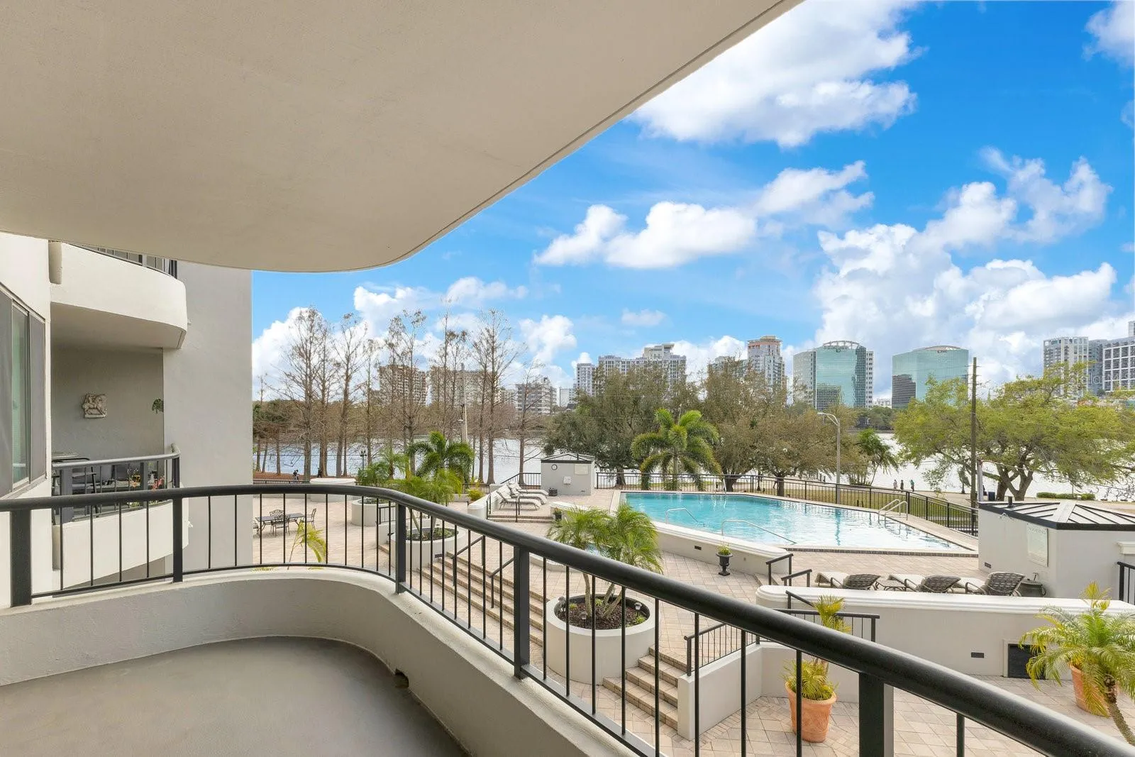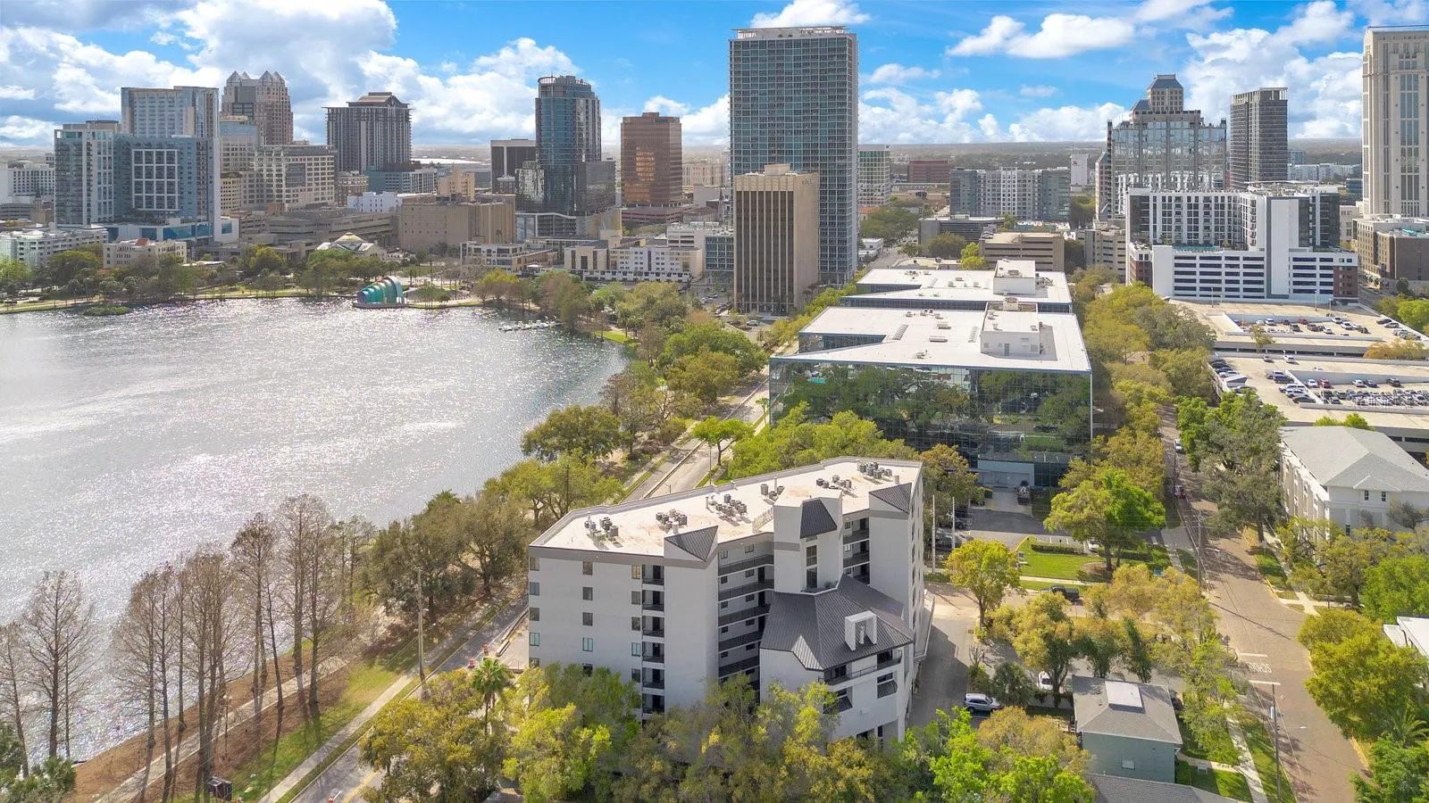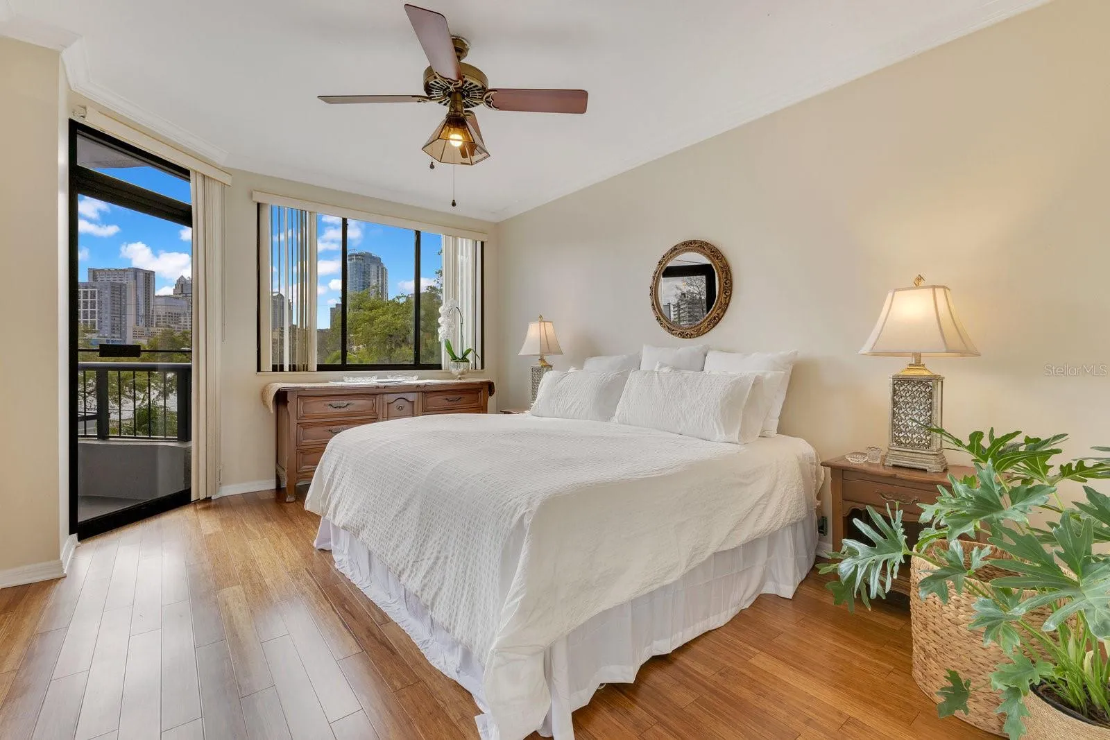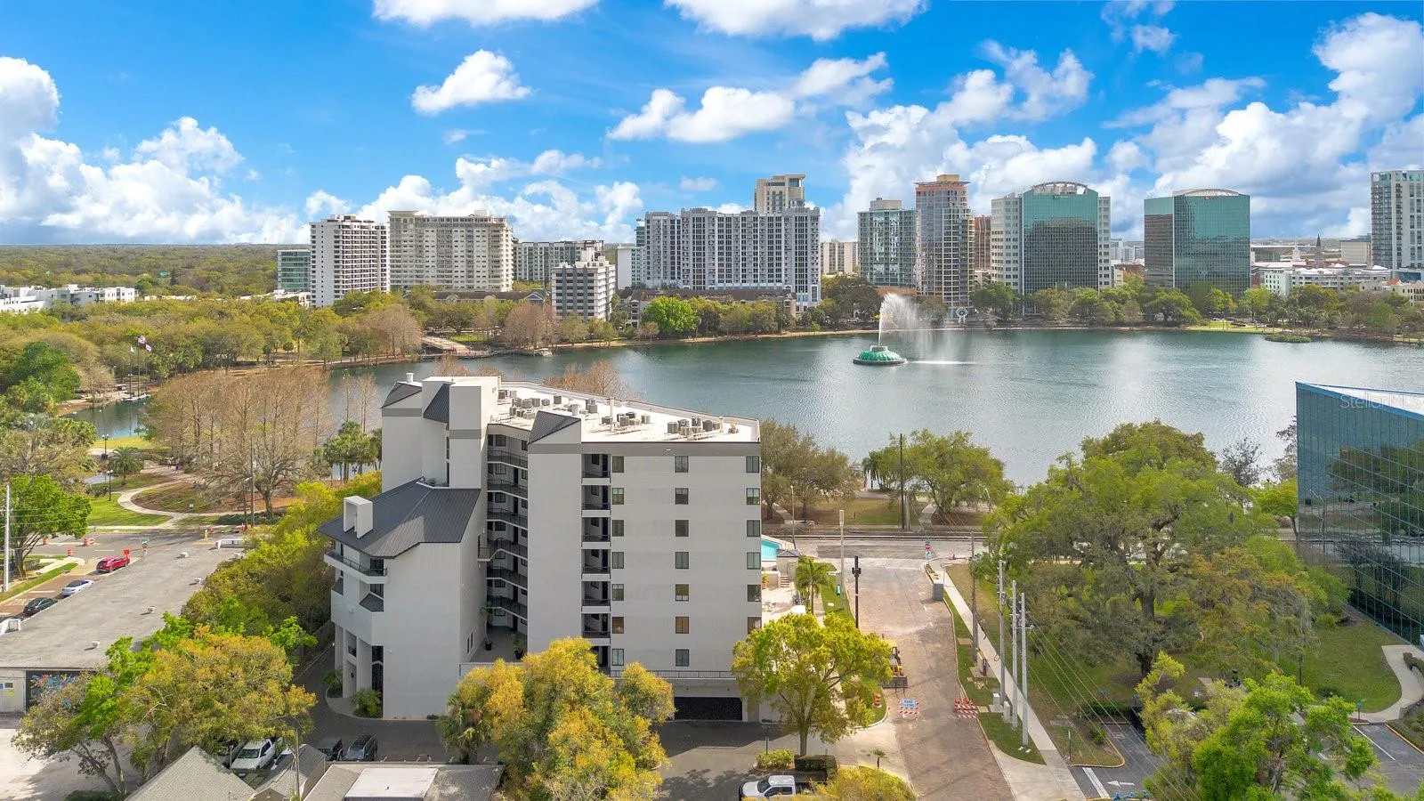 Now offered at $449,000, this residence at Reeves House presents an outstanding opportunity to own in one of downtown Orlando’s most sought-after condo communities. Blending downtown convenience with serene lakefront living, this beautifully updated 2BR/2BA home offers 1,196 SF of stylish living space on the 2nd floor. Upon entering, you are welcomed by a foyer that leads to an open-concept layout. The renovated kitchen features dark wood shaker-style cabinets, a natural stone countertop, a subway tile backsplash & Samsung SS appliances. The 4-door refrigerator includes 2 French doors for the fridge compartment & 2 pull-out freezer drawers. The adjacent utility closet houses a full-size W/D, with additional space for storage. The kitchen seamlessly flows into the generously sized dining & living areas, where wide-plank engineered hardwood flooring, baseboards & elegant crown molding add warmth and sophistication. Across from the dining area, a built-in dry bar complements the kitchen with matching cabinetry, a natural stone countertop, backsplash & mirrored glass display shelves. The living room is bright & inviting, with expansive sliding glass doors that open to a large balcony extending across the back of the unit. This outdoor space is accessible from both the living area & a private entrance from the primary bedroom, offering a perfect place to relax while enjoying the surrounding cityscape. The primary suite is a spacious & private retreat, featuring wide-plank engineered hardwood flooring, large-format windows that invite in natural light, a walk-in closet & a separate vanity area w/ sink and space for seating. The ensuite bath includes a white vanity w/ natural stone countertop, undermount sink, framed mirror & a bathtub-shower combo, all finished in neutral tones. The nicely sized 2nd bedroom at the front of the unit has a reach-in closet and is conveniently located next to a full hallway bath, finished similarly to the primary bath but w/ a stand-alone shower enclosed by a glass sliding door. Sold w/ the unit is 1 underground covered parking space in the secured basement garage, offering convenience & peace of mind. Reeves House offers an array of amenities, including a private lobby with controlled access, 2 elevators, multiple sitting areas & a well-designed entertaining deck. Residents enjoy a swimming pool & hot tub, providing a perfect setting to unwind & take in the beautiful surroundings. The on-site gym allows for convenient workouts without leaving the building, while the clubhouse offers additional space to gather, featuring a pool table for entertainment. The combo of these amenities creates a low-maintenance, lock-&-leave lifestyle ideal for those who want to enjoy everything the city has to offer without the upkeep of a single-family home. Its unbeatable downtown location provides easy access to both entertainment and business, making it ideal for those who want to enjoy both the work & play of city life. Walk to Lake Eola Park, the Dr. Phillips Center for the Performing Arts, the Public Library & all the conveniences of Thornton Park, including restaurants, retail, weekend farmers markets & cultural events—just steps from your front door. With modern updates, a full suite of amenities, a walkable urban setting & a maintenance-free lifestyle, this condo offers the perfect blend of comfort, convenience & luxury living in the heart of downtown Orlando.