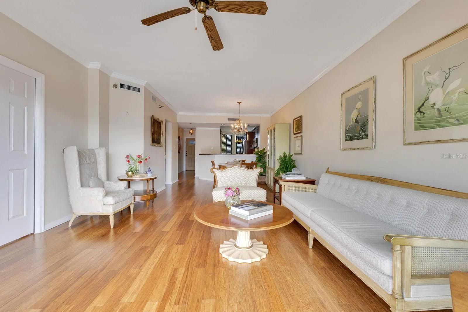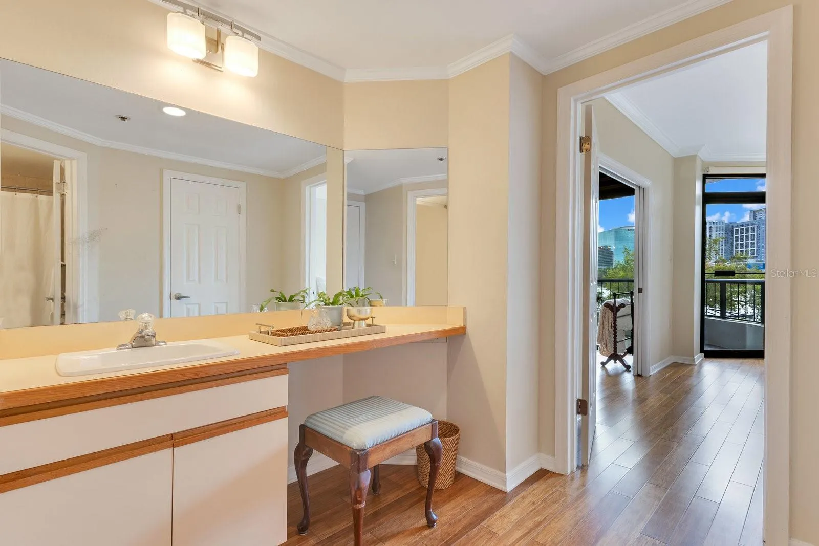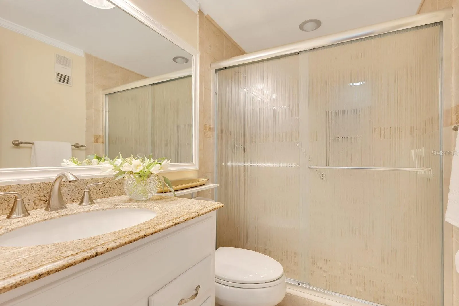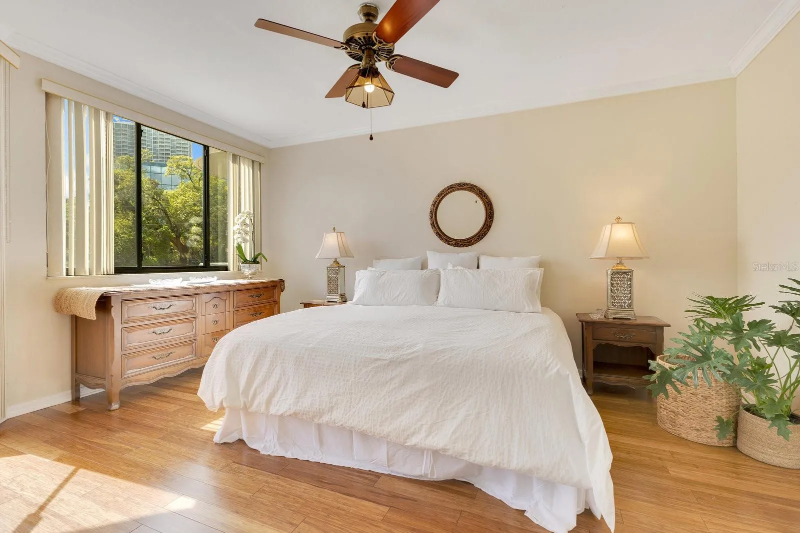 Now offered at $449,000, this residence at Reeves House presents an outstanding opportunity to own in one of downtown Orlando’s most sought-after condo communities. Blending downtown convenience with serene lakefront living, this beautifully updated 2BR/2BA home offers 1,196 SF of stylish living space on the 2nd floor. Upon entering, you are welcomed by a foyer that leads to an open-concept layout. The renovated kitchen features dark wood shaker-style cabinets, a natural stone countertop, a subway tile backsplash & Samsung SS appliances. The 4-door refrigerator includes 2 French doors for the fridge compartment & 2 pull-out freezer drawers. The adjacent utility closet houses a full-size W/D, with additional space for storage. The kitchen seamlessly flows into the generously sized dining & living areas, where wide-plank engineered hardwood flooring, baseboards & elegant crown molding add warmth and sophistication. Across from the dining area, a built-in dry bar complements the kitchen with matching cabinetry, a natural stone countertop, backsplash & mirrored glass display shelves. The living room is bright & inviting, with expansive sliding glass doors that open to a large balcony extending across the back of the unit. This outdoor space is accessible from both the living area & a private entrance from the primary bedroom, offering a perfect place to relax while enjoying the surrounding cityscape. The primary suite is a spacious & private retreat, featuring wide-plank engineered hardwood flooring, large-format windows that invite in natural light, a walk-in closet & a separate vanity area w/ sink and space for seating. The ensuite bath includes a white vanity w/ natural stone countertop, undermount sink, framed mirror & a bathtub-shower combo, all finished in neutral tones. The nicely sized 2nd bedroom at the front of the unit has a reach-in closet and is conveniently located next to a full hallway bath, finished similarly to the primary bath but w/ a stand-alone shower enclosed by a glass sliding door. Sold w/ the unit is 1 underground covered parking space in the secured basement garage, offering convenience & peace of mind. Reeves House offers an array of amenities, including a private lobby with controlled access, 2 elevators, multiple sitting areas & a well-designed entertaining deck. Residents enjoy a swimming pool & hot tub, providing a perfect setting to unwind & take in the beautiful surroundings. The on-site gym allows for convenient workouts without leaving the building, while the clubhouse offers additional space to gather, featuring a pool table for entertainment. The combo of these amenities creates a low-maintenance, lock-&-leave lifestyle ideal for those who want to enjoy everything the city has to offer without the upkeep of a single-family home. Its unbeatable downtown location provides easy access to both entertainment and business, making it ideal for those who want to enjoy both the work & play of city life. Walk to Lake Eola Park, the Dr. Phillips Center for the Performing Arts, the Public Library & all the conveniences of Thornton Park, including restaurants, retail, weekend farmers markets & cultural events—just steps from your front door. With modern updates, a full suite of amenities, a walkable urban setting & a maintenance-free lifestyle, this condo offers the perfect blend of comfort, convenience & luxury living in the heart of downtown Orlando.