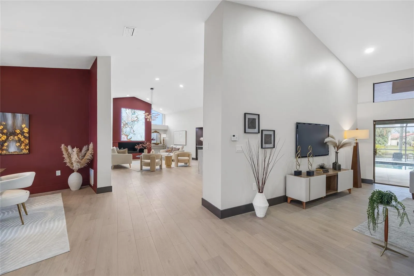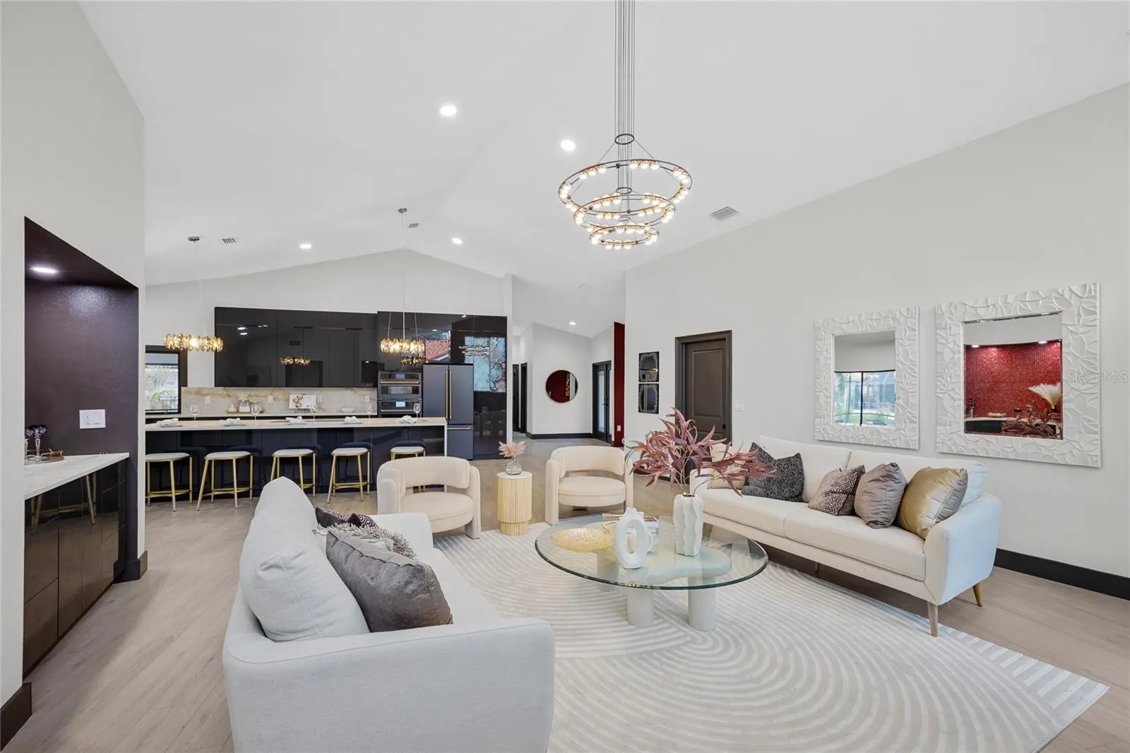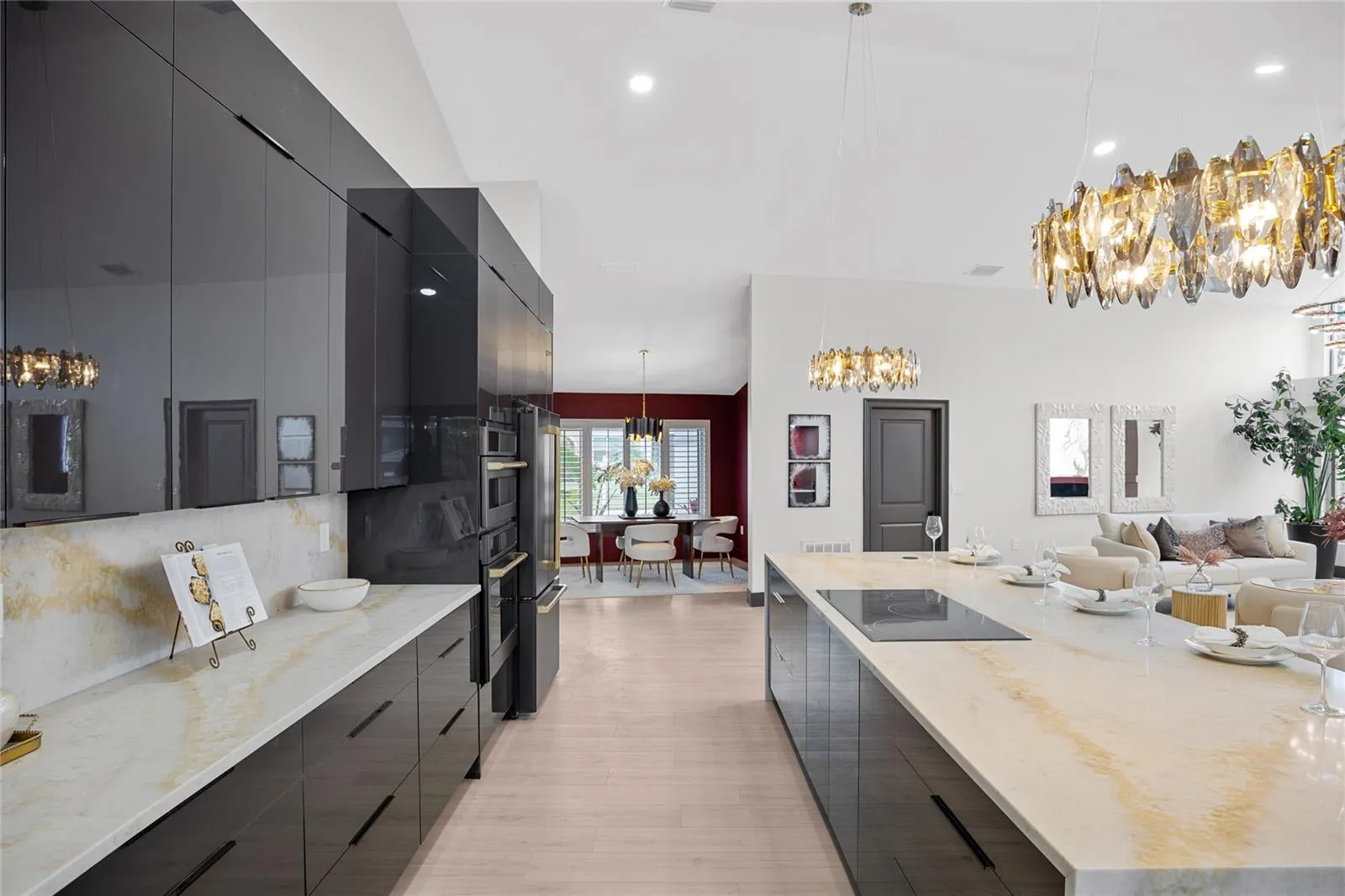 Designed by the renowned Misari Design Collective, this home exudes style and sophistication. The exterior is picture-perfect, with fresh paint, brand-new lighting, and lush landscaping that welcome you home. Inside, light oak luxury vinyl plank flooring with a waterproof core flows effortlessly throughout, setting the stage for elegant yet durable living.