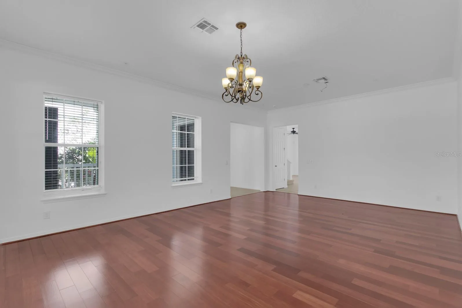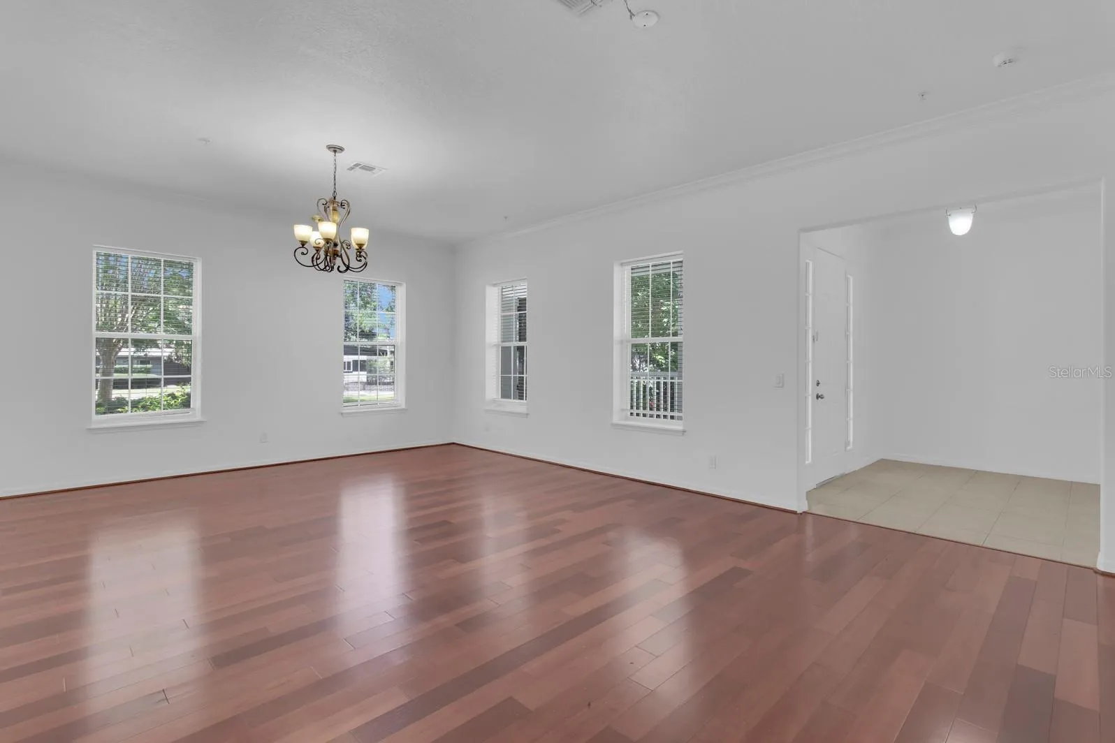 This non-owner-occupied Charleston-style Cambridge home delivers timeless curb appeal and modern functionality in the heart of Baldwin Park. The charming front porch overlooks beautifully manicured front and side yards, setting the tone for a bright and inviting interior. Inside, engineered hardwood floors carry through an expansive great room designed for both entertaining and everyday living. The open kitchen features brand-new stainless steel appliances, a spacious refrigerator, a dry bar, and a cozy breakfast nook with adjacent lounge area. The downstairs primary suite boasts coffered ceilings, two walk-in closets, and a spa-like bathroom with jacuzzi tub, separate shower, and dual vanities. A dedicated laundry room is also conveniently located on the main floor. Upstairs, three additional bedrooms each offer privacy and comfort. French doors open to a flexible space perfect for a fourth bedroom, home theater, or bonus room. Built-in desks create a practical setup for remote work or study. An oversized garage provides ample storage space for vehicles and recreational gear, and there is plenty of street parking available as well. Set within Baldwin Park, residents enjoy access to scenic lakes, walkable paths, top-rated schools, local dining, shopping, and proximity to major hospitals and airports.