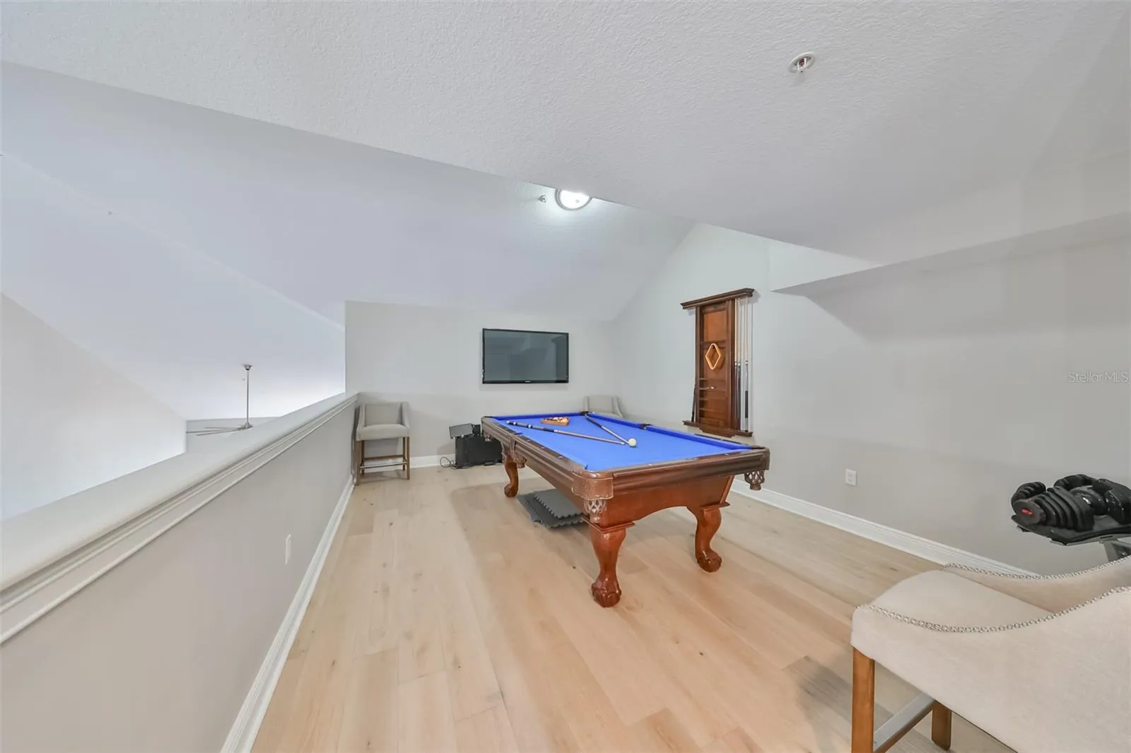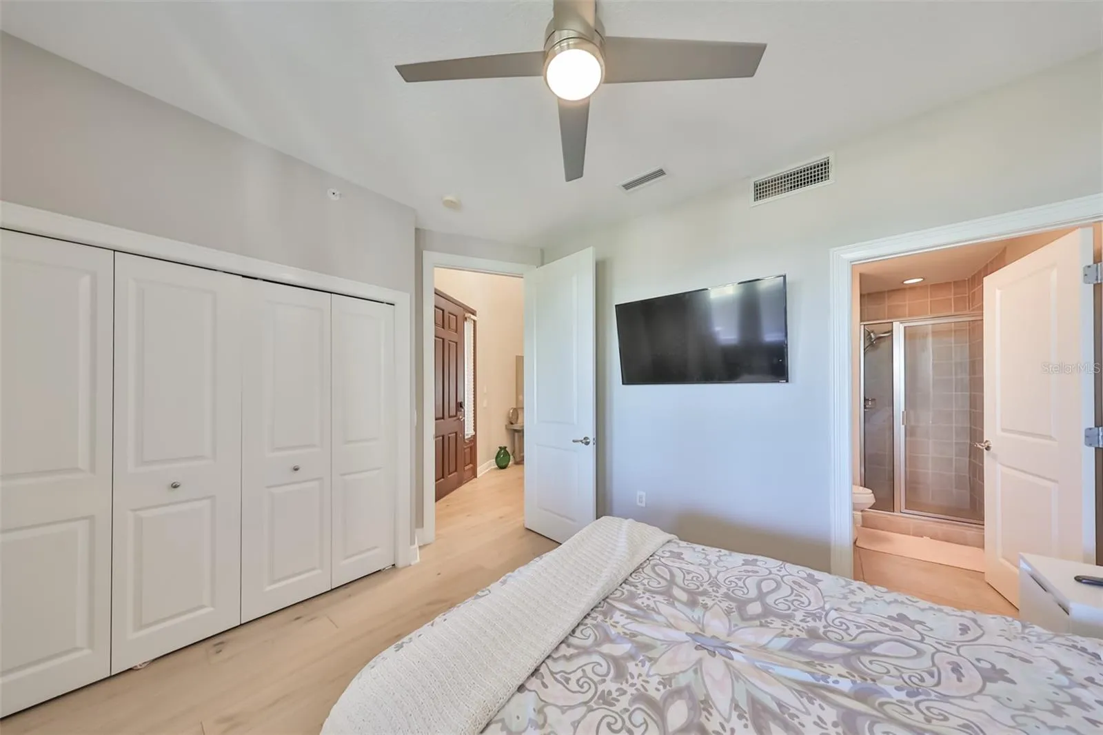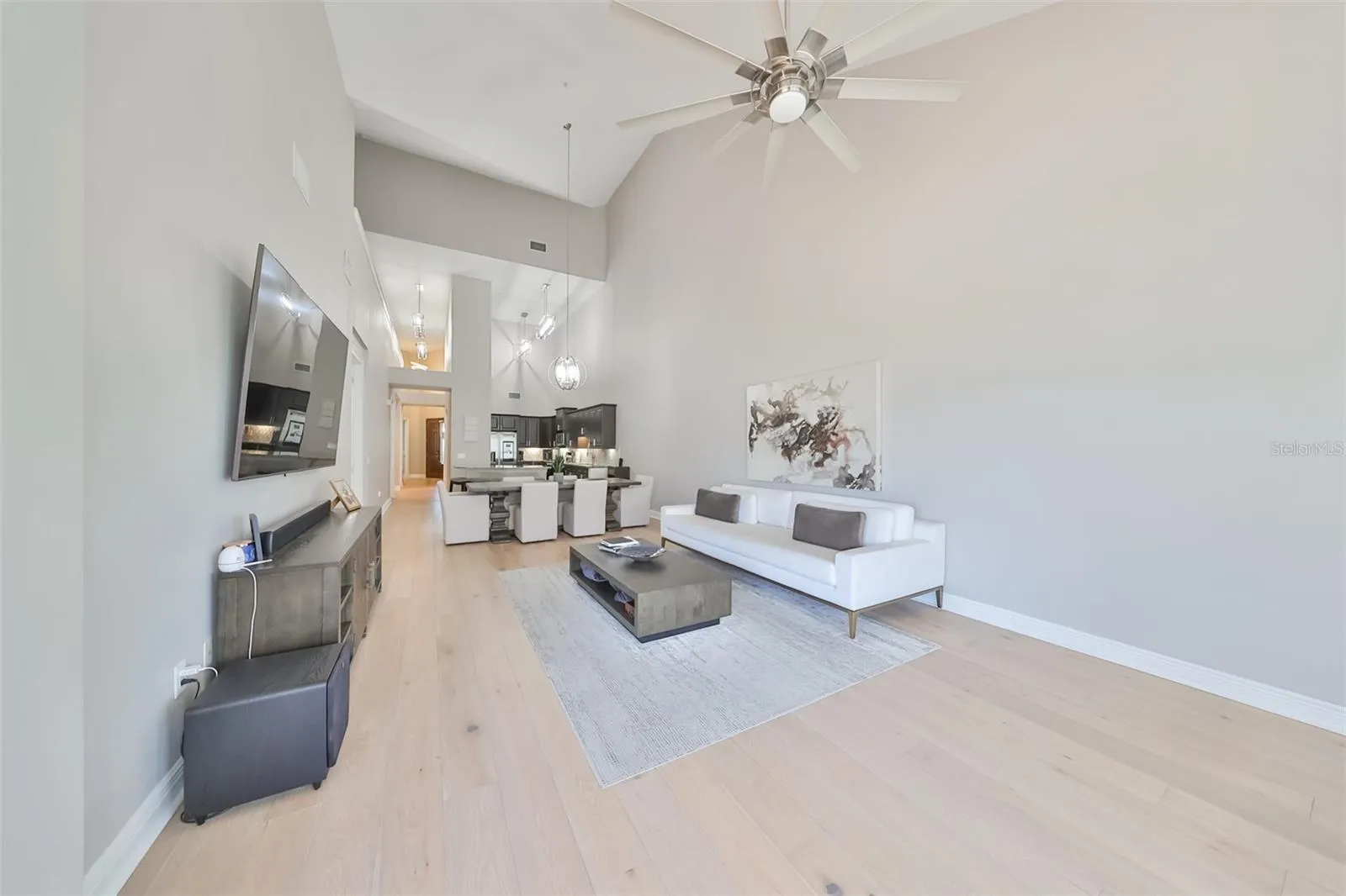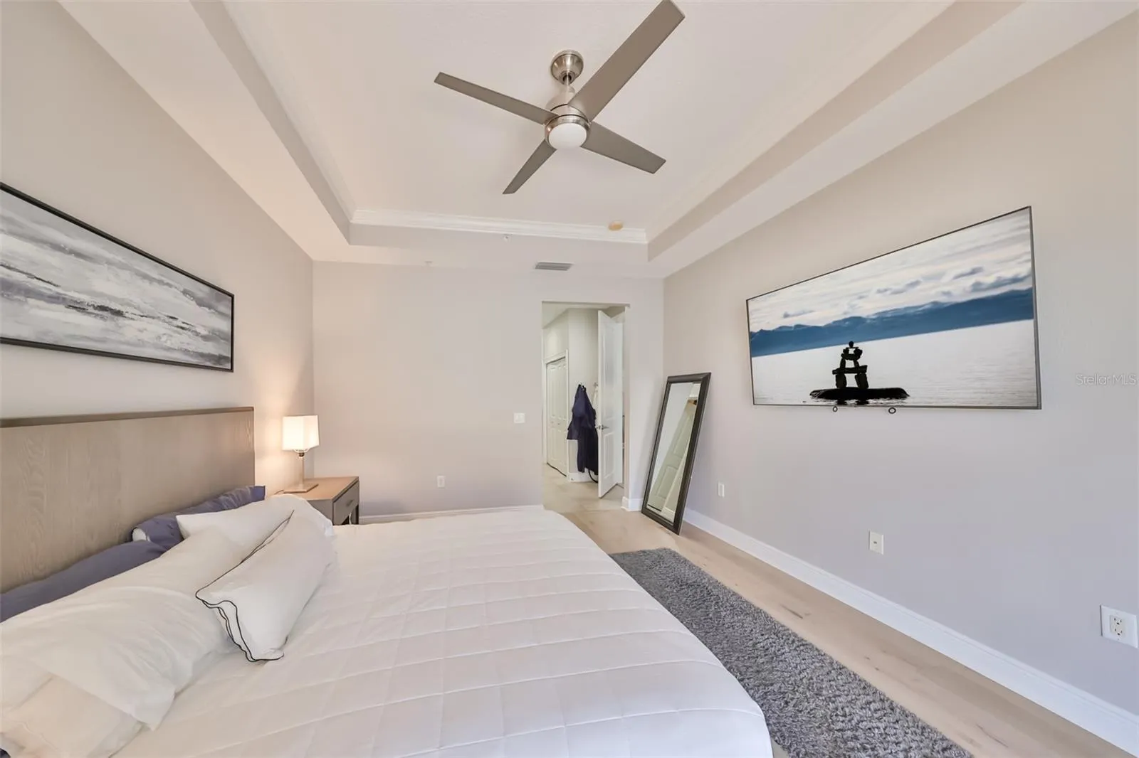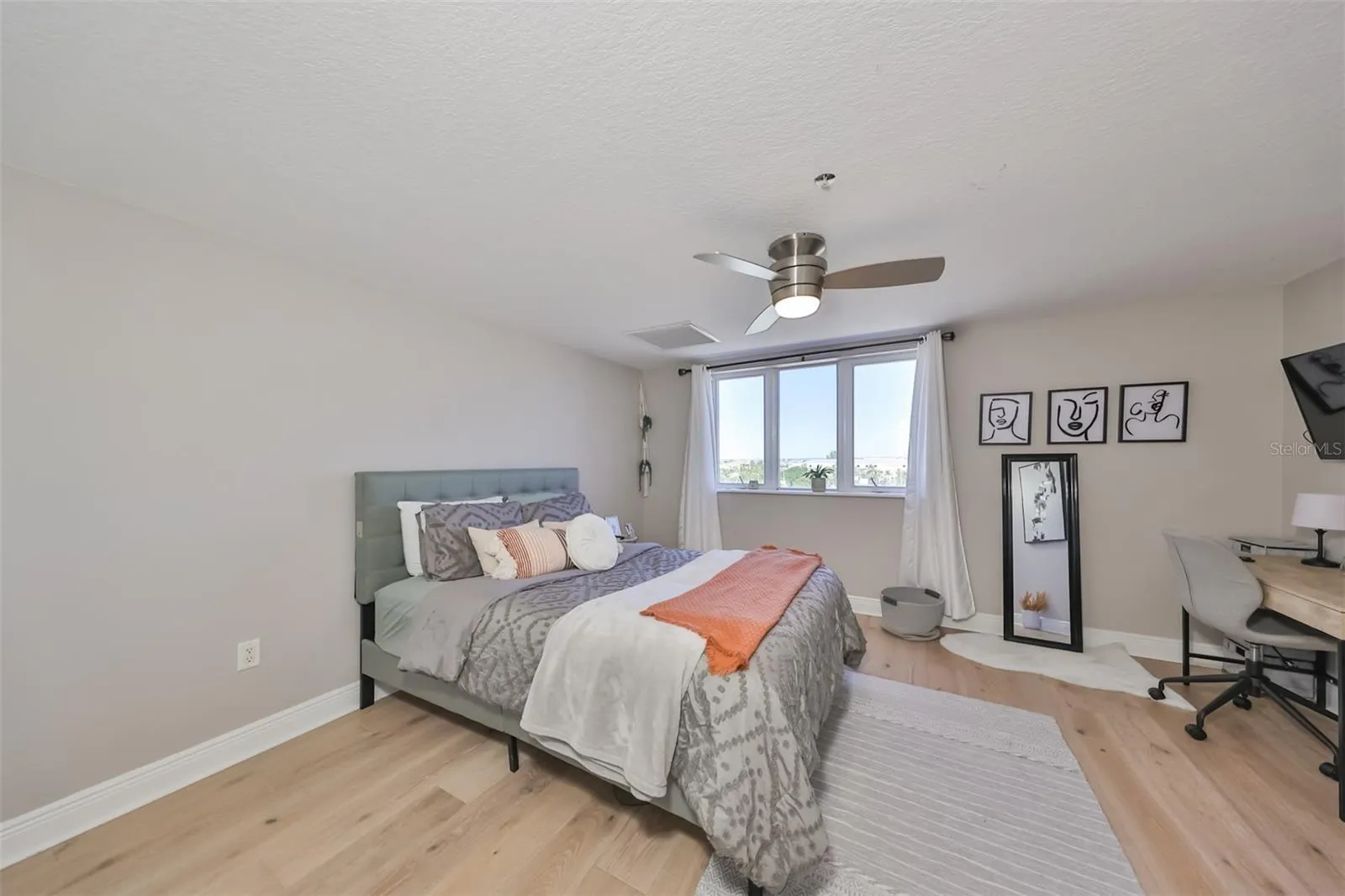 Upon entering the penthouse, you are welcomed by a grand, lighted foyer with 20-foot ceilings and beautiful hardwood floors throughout the common areas. The spacious family and dining room leads to a balcony that offers captivating water views. The newly renovated kitchen boasts Coco Brown cabinetry, granite countertops, a marble backsplash, stainless steel appliances, and an island breakfast bar. The master suite provides direct access to the balcony and includes a custom walk-in closet. The main bathroom features dual sinks, a large shower, and a separate bathtub. On the first floor are two secondary bedrooms, one of which has an ensuite bathroom. As you ascend the wood steps to the penthouse’s second floor, you’ll appreciate the view of the first floor. On the first floor are three secondary bedrooms, one of which has an ensuite bathroom. As you ascend the wooden steps to the penthouse’s second floor, you’ll enjoy an overlooking view of the first floor. The second floor includes a large bonus room and an additional bedroom with a bathroom. Enjoy maintenance-free living with fantastic amenities, including a gym, a large resort-style pool, a jacuzzi, a tiki bar, a clubhouse, and cooking grills.