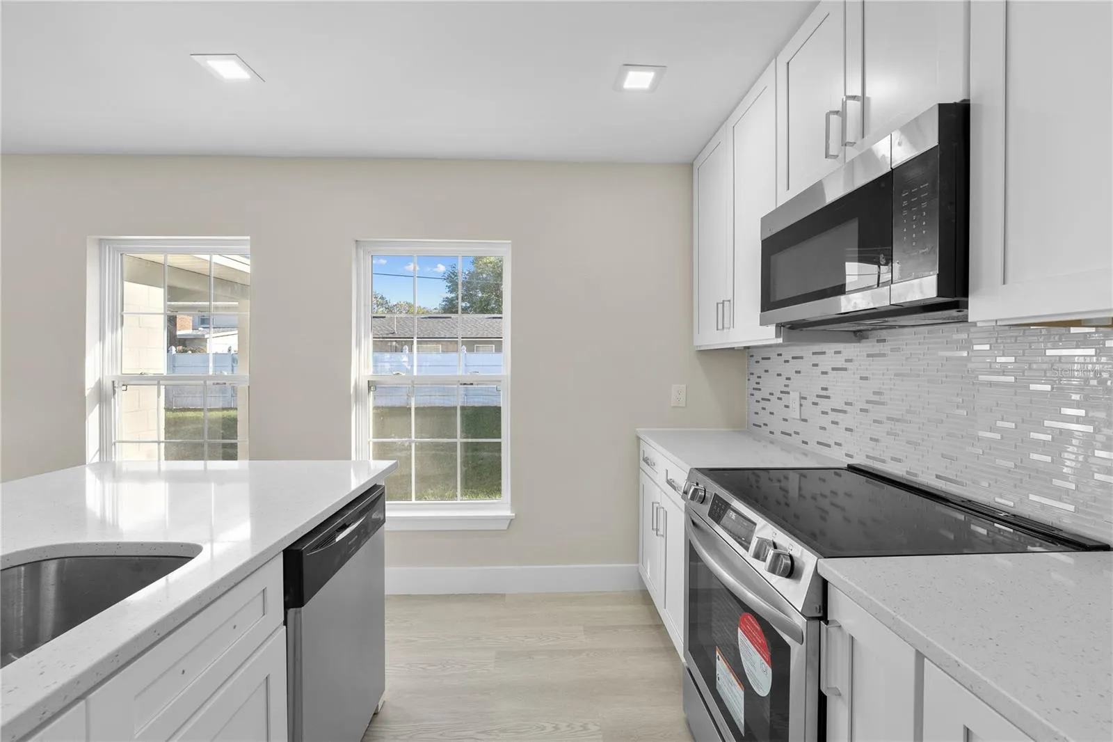 One or more photo(s) has been virtually staged. Don’t miss out!!! MOTIVATED SELLER! A true GEM located in the highly desirable Brookshire Heights, presenting this FULLY REMODELED spacious single-story property in the heart of WINTER PARK. Showcasing a new meticulously designed floorplan, this property has also recently been EXTENDED by a total approx. 1,040 sqft. Exuding luxury in a modern setting and with stunning curb appeal, this TURNKEY residence with high-end finishes features 3 bedrooms and 2 bathrooms. At the heart of the home is the expansive OPEN PLAN CONCEPT kitchen and living room with plenty of natural light which flows into the dining room area and large family room with sliding patio doors providing access to the tiled COVERED PATIO and sizeable backyard. The GOURMET KITCHEN is a chef’s dream including brand new appliances, ample cabinetry, sprawling central island with countertop seating, quartz countertops and tile backsplash. There is a conveniently located laundry room which leads to the ATTACHED GARAGE with automatic door opener. The driveway also provides extra space for parking. The primary bedroom is a well-appointed, true retreat with views of the yard and has a large CUSTOM walk-in closet and in addition a secondary closet as well as an impressive ensuite bathroom consisting of separate vanities and a walk-in shower. Each of the other additional two bedrooms are well-proportioned with well sized closet spaces both served by a beautiful bathroom with vanity sink and large walk-in shower. OTHER HIGHLIGHTS TO NOTE are new windows and doors, new Carrier a/c, new tankless water heater, new electrical panel, new plumbing, new LED lighting throughout the home as well as new front yard landscaping. Seamlessly blending the outdoor with the indoor, enjoy Florida lifestyle at its finest. The huge backyard is a COMPLETELY FENCED IN PRIVATE OASIS and has plenty of room to add a dream pool should a future project be in your sights. LOCATION, location, location! NO HOA’s! This property is only a couple of blocks away and zoned for top rated schools. Also conveniently located to a ton of amenities – nearby shopping centers, dining & entertainment options, Park Ave, Baldwin Park, Ward Park, the Cady Way Bike Path, Cady Way pool, sports such as Winter Park Pines Golf Club and close to Full Sail, UCF & Valencia colleges. Orlando International Airport and highways 417, 436, and I-4 for easy access to anywhere in the greater Orlando area. DON’T MISS OUT, see the 3D tour, video or schedule your private showing today!
