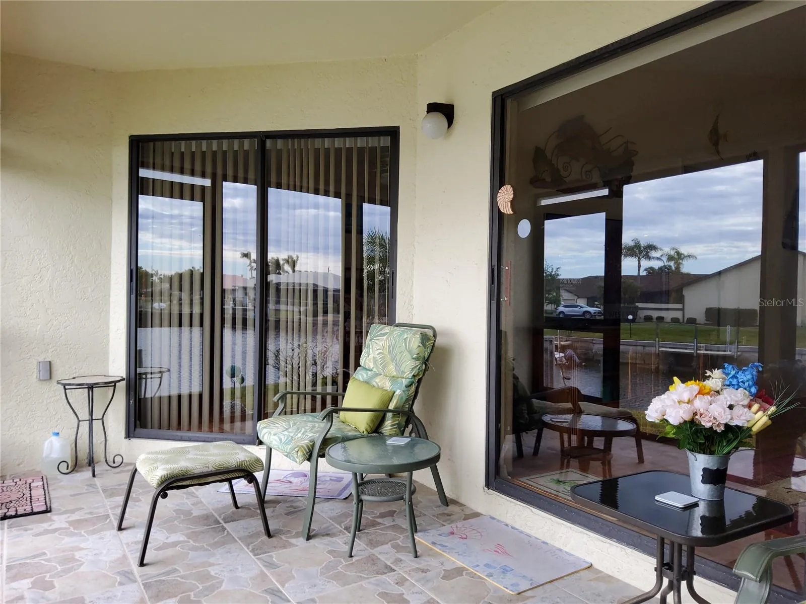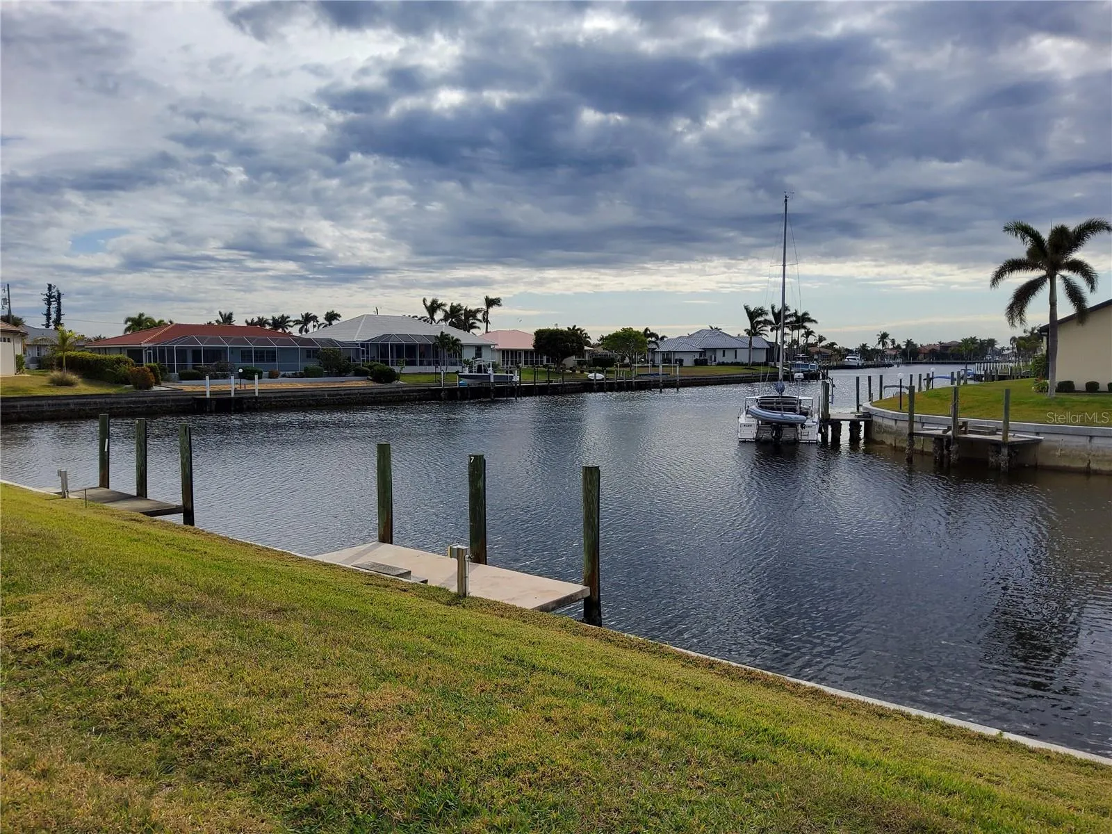 This end unit villa truly has one of Punta Gorda’s most breath-taking water views. The vaulted ceilings and skylights enhance the open floor plan. Enjoy water views from the kitchen to dining/living area and into the lovely, enclosed lanai. Your parking will be convenient with the attached two-car garage. The private courtyard entrance is enclosed with tile and has plenty of room for seating and decorative plants. When entering the home, you will be impressed with the large gourmet kitchen with granite and wood cabinetry making it a pleasure to cook and entertain. This kitchen is also abundant in storage areas including a walk-in pantry. The pass-through bar with stools to dining area provides lots of seating for guests. This open area great room has beautiful water views from every seat especially in the enclosed lanai. The assigned dock for this unit is directly behind the unit and has water and electricity. The water access is great for sailboats and/or motorboats and is just a few minutes through Buckleys Pass to Charlotte Harbor. Inside living is comfortable with 2 bedrooms, a den which could be an optional 3rd bedroom and two full bathrooms. Wood laminate floors and tile show case these areas. The primary bedroom has en suite bathroom, a glass slider to lanai with a beautiful water view to wake up to in the mornings. This unit is just steps away from the year-round heated community pool. Swimming, water aerobics or just reading a book will be a pleasure while enjoying the 4 canal views. The Villas of Bal Harbor is a small 27 unit community with social gatherings to help you feel at home and get to know your neighbors. Fishermen’s Village has boutique shopping, and the great restaurants of downtown Punta Gorda are all within 2 to 5 miles from this location. Don’t worry about packing and moving this villa is sold turnkey. Start living your “Florida Dream” in the comforts of this cozy villa at The Villas of Bal Harbor.