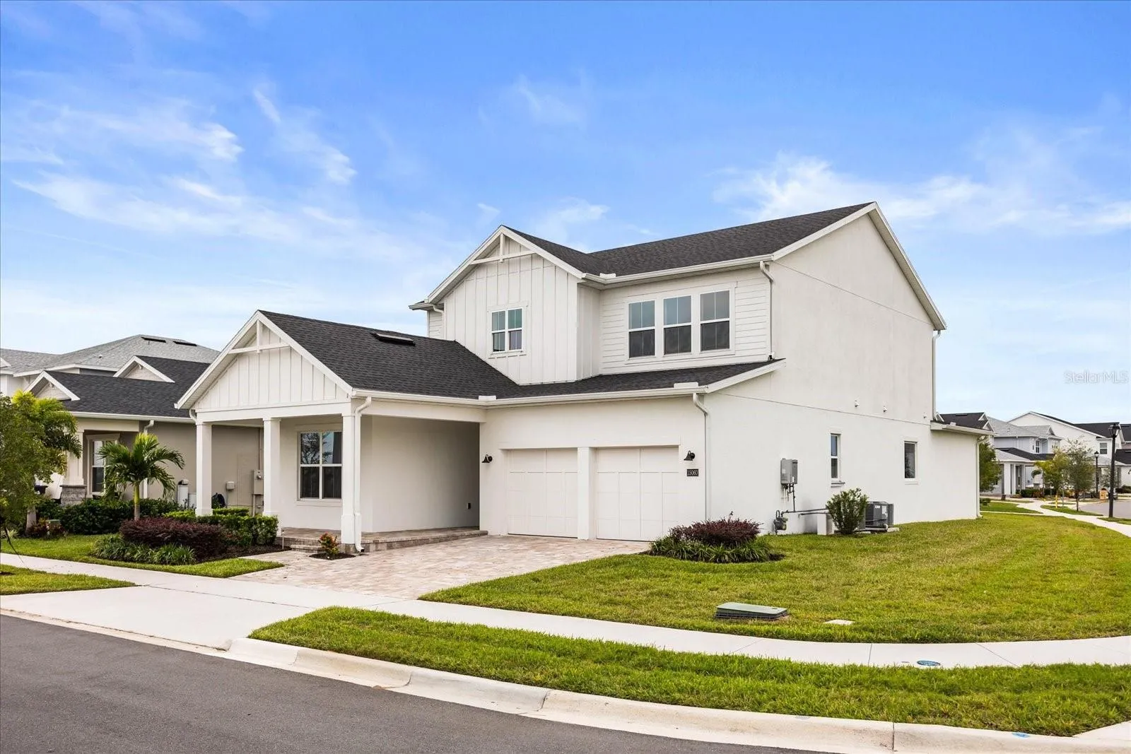 One or more photo(s) has been virtually staged. NEW PRICE on this BRAND NEW luxurious move-in-ready 5 Bedrooms/3.5 Baths home built by Toll Brothers, America’s Luxury Home Builder. Located in the beautiful community of Westhaven at Ovation—part of the sought-after Horizon West area of Winter Garden—the home sits on a quarter-acre corner lot adjacent to the future clubhouse/fitness center with a resort-style swimming pool. Spanning 3,256 SF, this home has been carefully designed and tastefully upgraded to delight everyone in the family, starting with a 20’ two-story foyer. The stunning gourmet kitchen is a chef’s dream, fully equipped with high-end appliances, an ample pantry, amazing craftsmanship of tile and wood, and plenty of counter space to entertain in a well-appointed atmosphere. The large great room features a luxurious floor-to-ceiling tile accent wall, a beautiful fireplace, surround sound connections, and opens out to a massive 527-SF covered lanai through an oversized 3-glass-panel sliding door. Conveniently located on the first floor, you’ll find the large owner’s suite with a spa-like bathroom displaying impressive tile work, a modern free-standing tub, dual sinks, and a large walk-in closet. A modern and elegant staircase takes you to the large secondary bedrooms and spacious loft, perfect for movies and/or game nights for the whole family’s enjoyment. Don’t wait; come see this brand-new, never lived-in home today, and you won’t be disappointed!