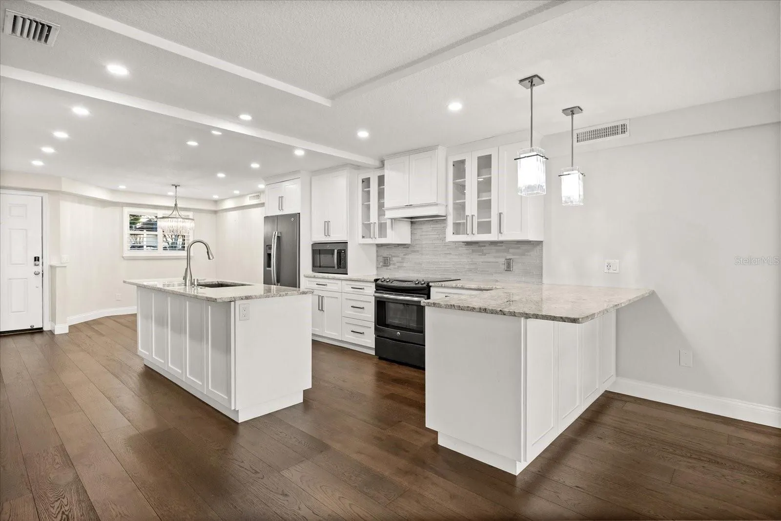 One or more photo(s) has been virtually staged. Tucked away on the tranquil shores of Lake Killarney, this impeccably remodeled two-story residence offers a rare opportunity to enjoy waterfront living with unmatched convenience. Just steps from Hillstone, Trader Joe’s, and Winter Park Village, this 2-bedroom, 2.5-bathroom home is the perfect blend of modern sophistication and timeless charm.