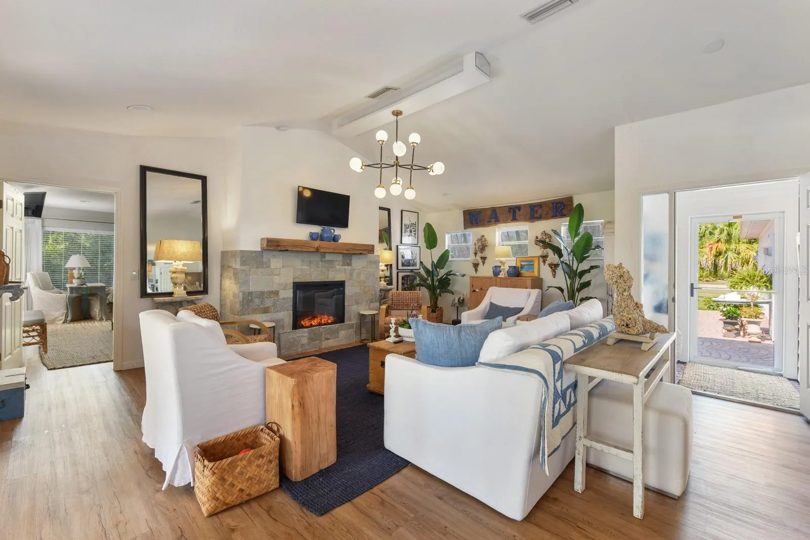 PRICE REDUCTION! Welcome to Burnt Store Lakes to a home with NO history of flooding and no damages from Ian, Helene or Milton! If you are looking for a home with character and charm and are not fond of “cookie-cutter” new homes, this could be the home for you! Surrounded by an HOA green space, creating a very private setting, you will be amazed at the natural habitat of tortoises, birdlife, rabbits and even the occasional pair of eagles. Four beautiful French doors open to a large screened lanai leading to a spacious 12×16 deck. The kitchen has been completely redone, and the home has all new laminate flooring, vaulted ceilings and a new electric fireplace for those chilly evenings. Roof was replaced in 2021 and the home has full hurricane shutters, accordion and Bahama-style. Third garage space has been converted to a second bedroom or office/den, completely private from master en suite. Located across from Burnt Store Marina, with a 27-hole golf course, restaurant, and the favorite Cass Cay restaurant, all only a golf cart ride away. Florida living at its best, you couldn’t find a more reasonably priced home with so many wonderful features! Come have your morning coffee with the eagles!