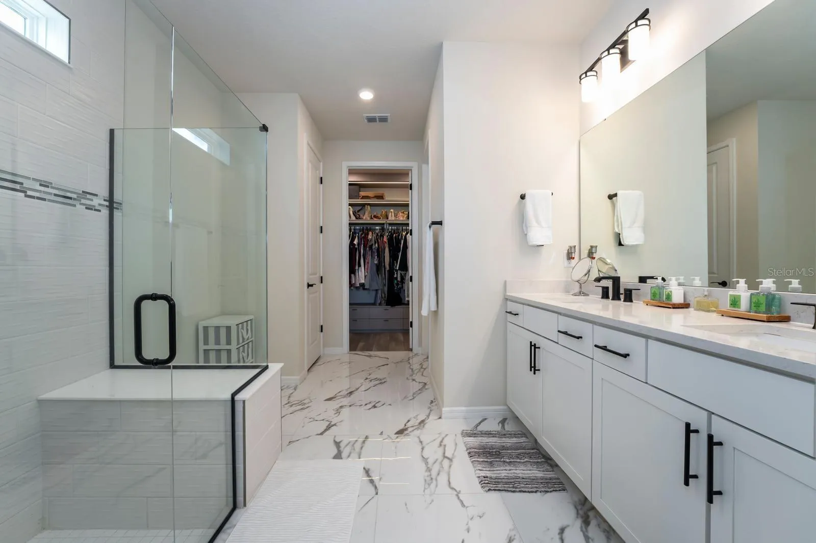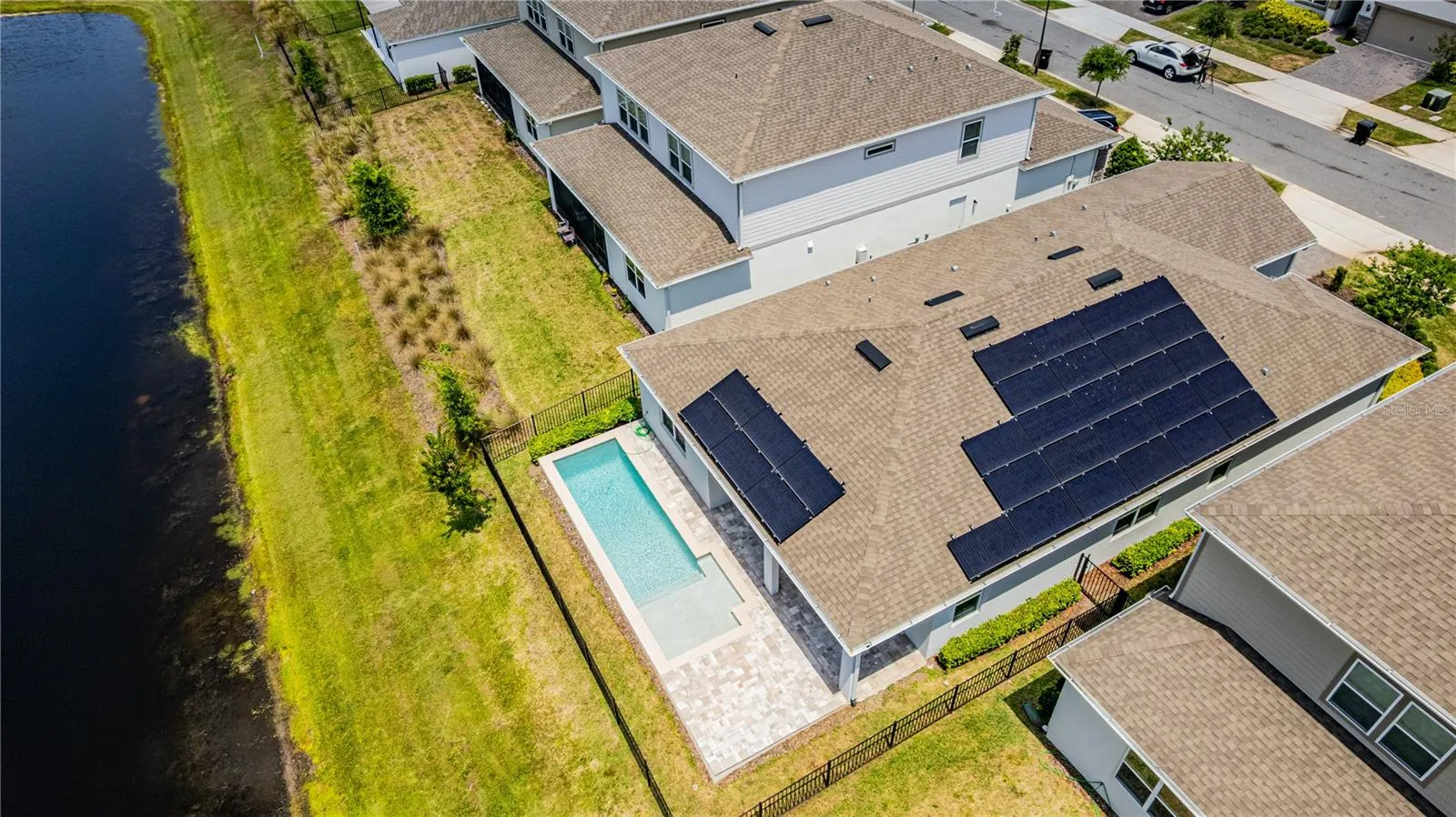 Light fills the open floor plan, leading to a private outdoor oasis with a custom pool, covered lanai, and tranquil pond views. Inside, elegant touches like large-format porcelain tile, a spa-inspired primary suite, and a flexible ensuite bedroom offer true everyday luxury.