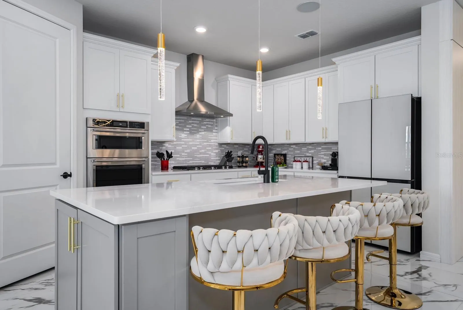 Professionally designed with custom Appenin cabinetry and curated by a Decor design expert, every space radiates warmth and modern sophistication. The chef’s kitchen stuns with quartz countertops, Samsung smart appliances, and sleek, thoughtful finishes— It’s a space made not just for cooking, but for gathering, laughing, and making memories.