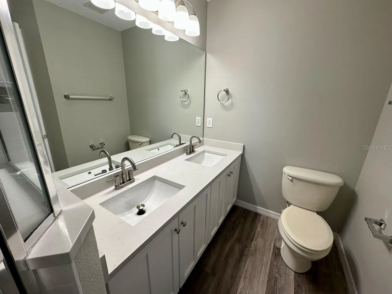 Upstairs, discover two full primary suites, each with en-suite bathrooms. The main suite features dual sinks and a large, walk-in corner shower for a touch of luxury. Convenient upstairs laundry adds to the easy living lifestyle.