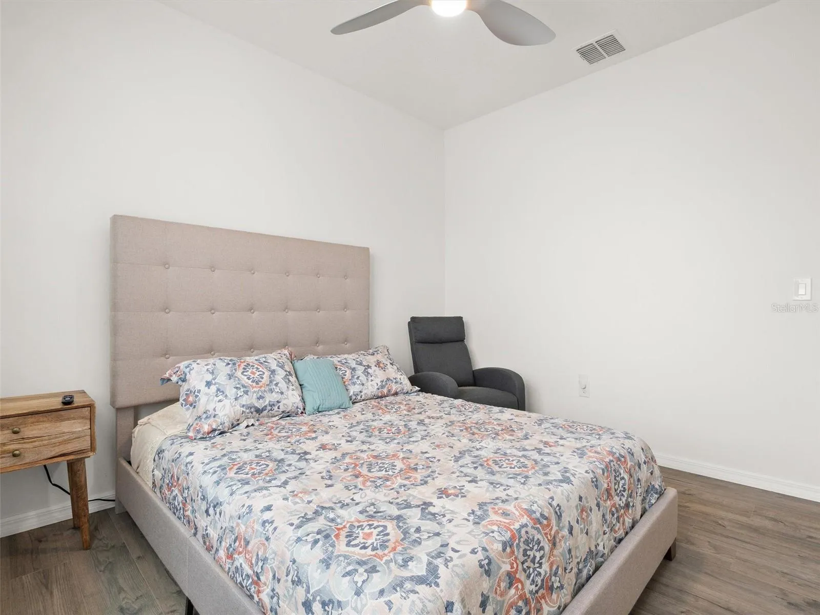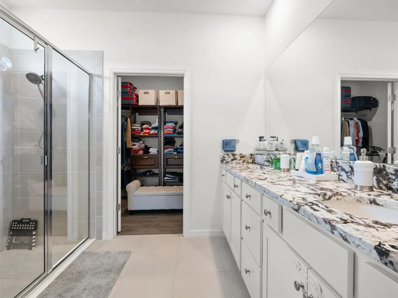 The spacious split floor plan includes a large primary suite with a gigantic walk-in closet, a luxurious en-suite bathroom featuring a double-sink granite vanity, tall cabinetry, and a premium step-in shower. There’s even a direct door to the laundry room! The second and third bedrooms offer flexibility to serve as guest rooms, office space, or hobby areas—whatever you need them for. All bedrooms have had the carpet removed and replaced with vinyl plank tile. NO CARPET!