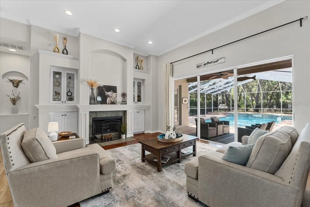 Significant price adjustment! Incredible value for this beautiful home! Welcome to 6007 Hammock Hill Ave located in the desirable gated community of FishHawk Trails. This exceptional property offers the perfect blend of comfort, style, and functionality. Featuring a true in-law suite with its own private entrance and full kitchen, this home is ideal for multi-generational living or guest accommodations. Inside you’ll find thoughtfully designed spaces with recent upgrades including three brand new AC units. This stunning 5-bedroom, 4-bathroom home boasts over 4,800 square feet of living space and features an open concept floor plan that is perfect for entertaining. The kitchen is a chefs dream with a huge island, quartz countertops, subway tile backsplash, custom cabinets, a pot filler, large farmhouse sink, wine fridge, and a walk in pantry with sliding barn doors. The breakfast nook features mitered glass windows overlooking the pool. The family room has triple glass pocket sliders that open to the lanai. The dining room overlooks the mature landscaped front yard. The inviting living room showcases a fireplace with custom built-ins and a triple sliding door to the pool. French doors lead you into the bright office complete with a closet. The large master suite overlooks the pool and has a sitting area with a door that leads to the lanai. The en-suite offers two walk in closets, double vanities, a frameless walk in shower and a beautiful soaking tub. The secondary bedrooms are spacious and one bedroom features a private bathroom. Crown moulding throughout. The large lanai has a covered sitting area and covered bar area, a heated pool and spa with overflow jets and plenty of space for large gatherings.