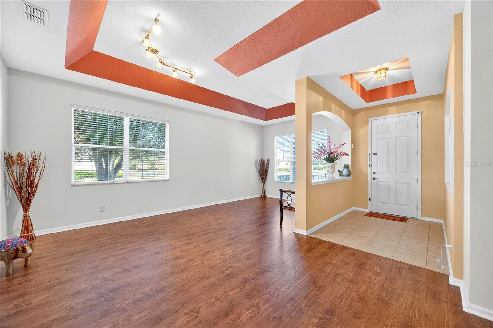 The primary bedroom features a tray ceiling, a huge walk-in closet, and an en-suite bathroom with double sinks, a garden tub, and a separate shower. The Florida room is filled with natural light, offering additional space that’s perfect for family gatherings. Upstairs, the versatile layout includes a loft that can serve as a 5th bedroom, flex space, or private suite with a full bath. The home boasts a new roof (2025) and a fully fenced backyard on a corner lot, providing both privacy and serenity.