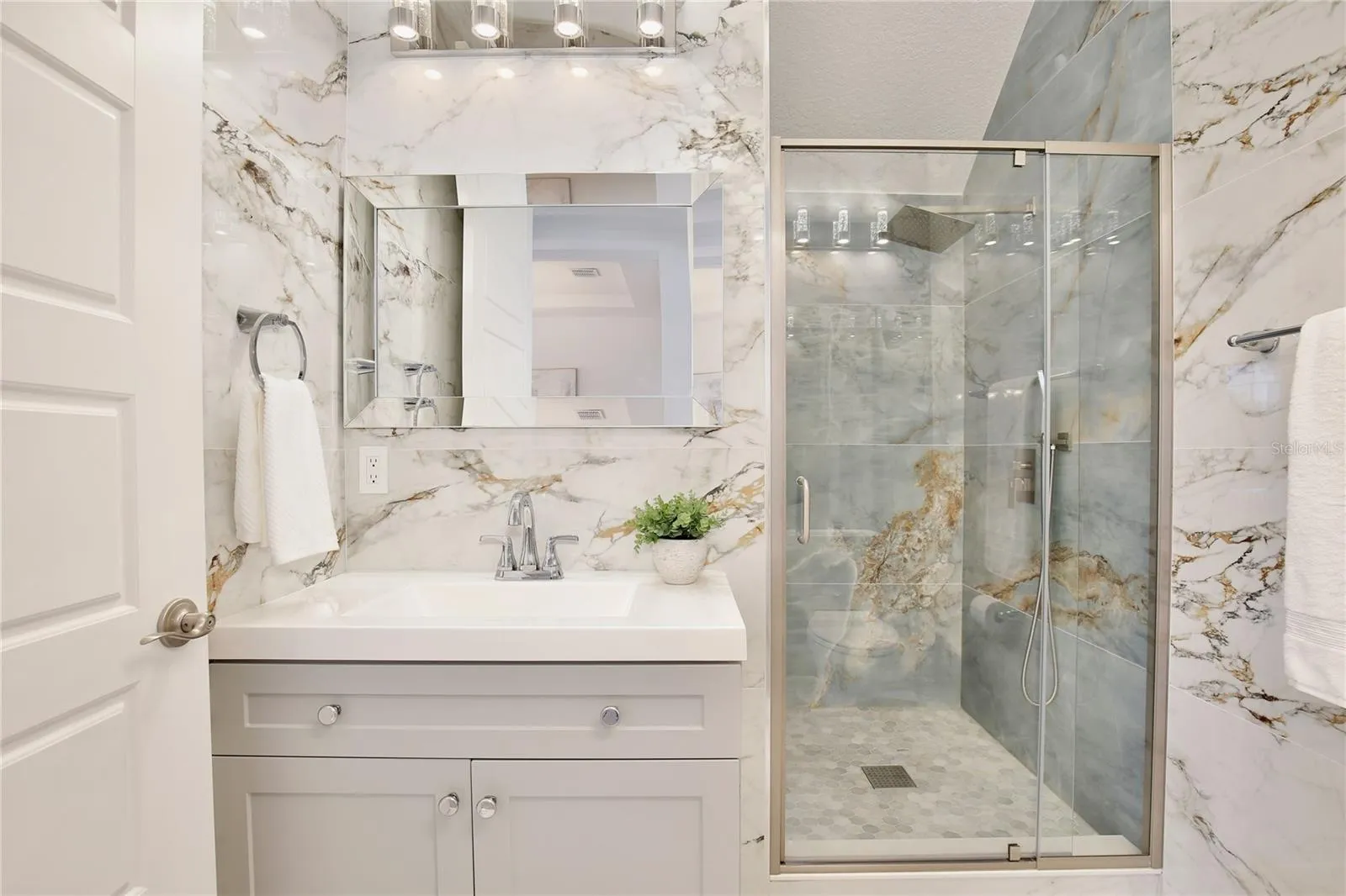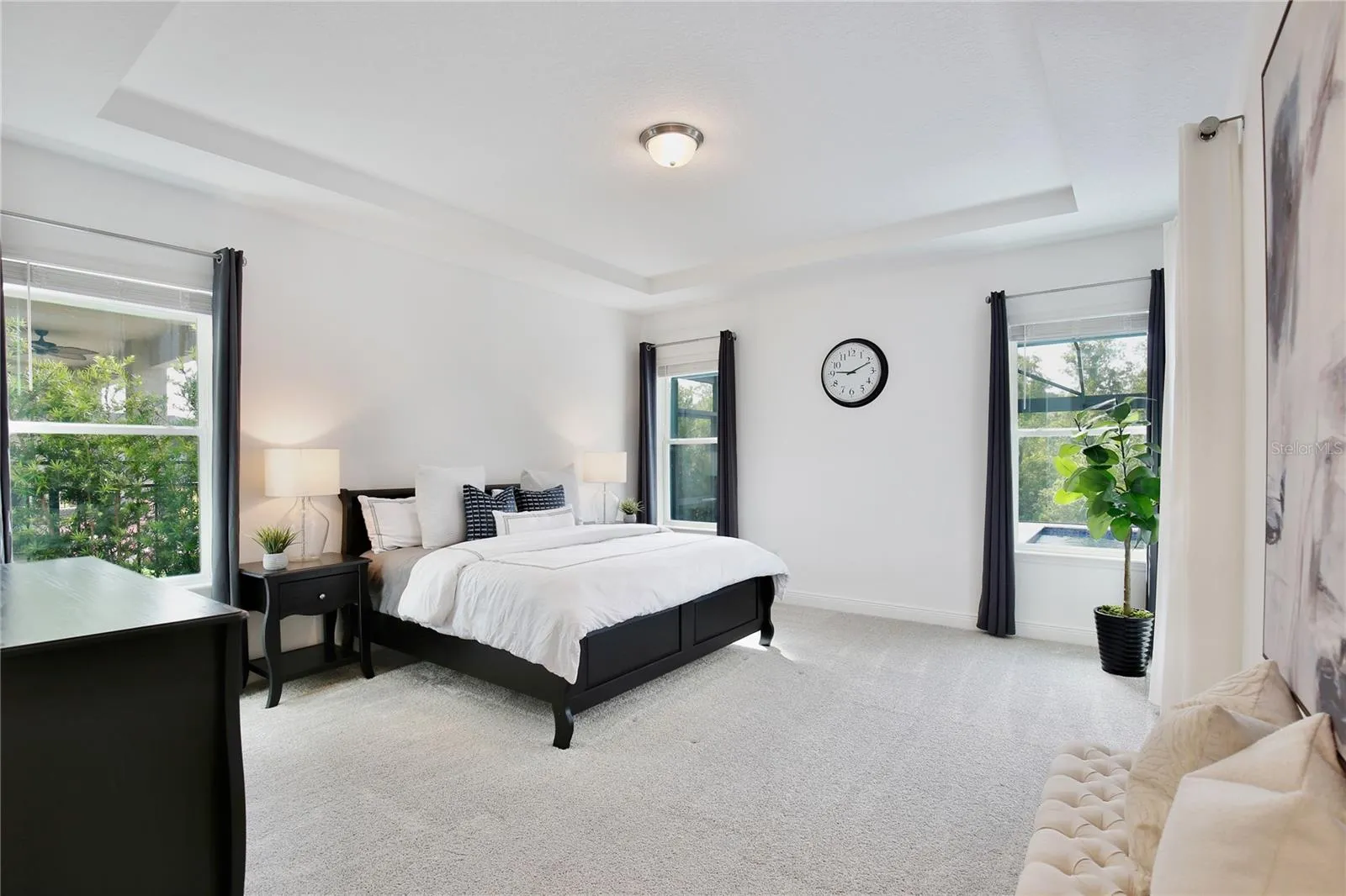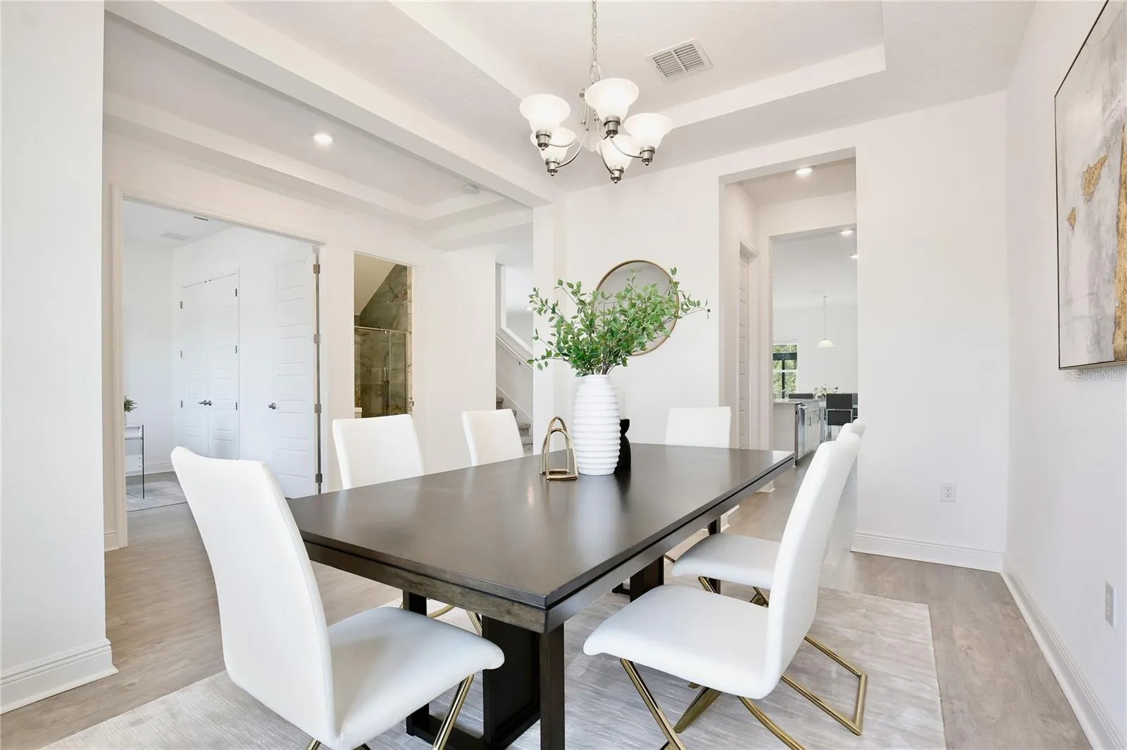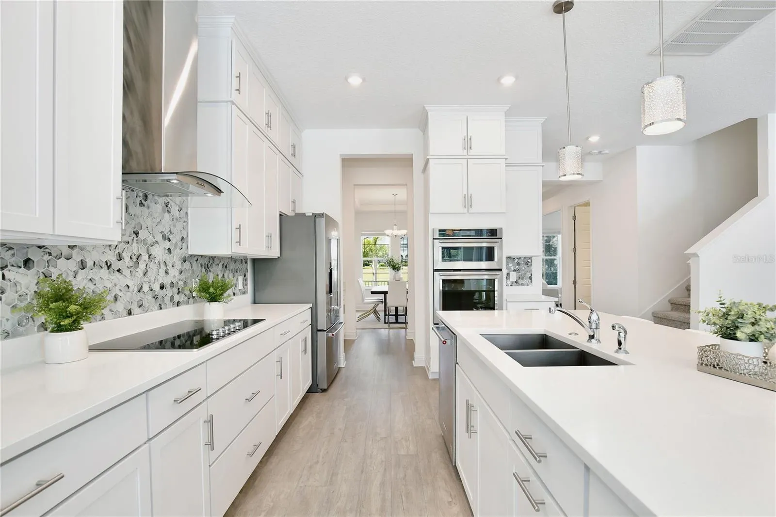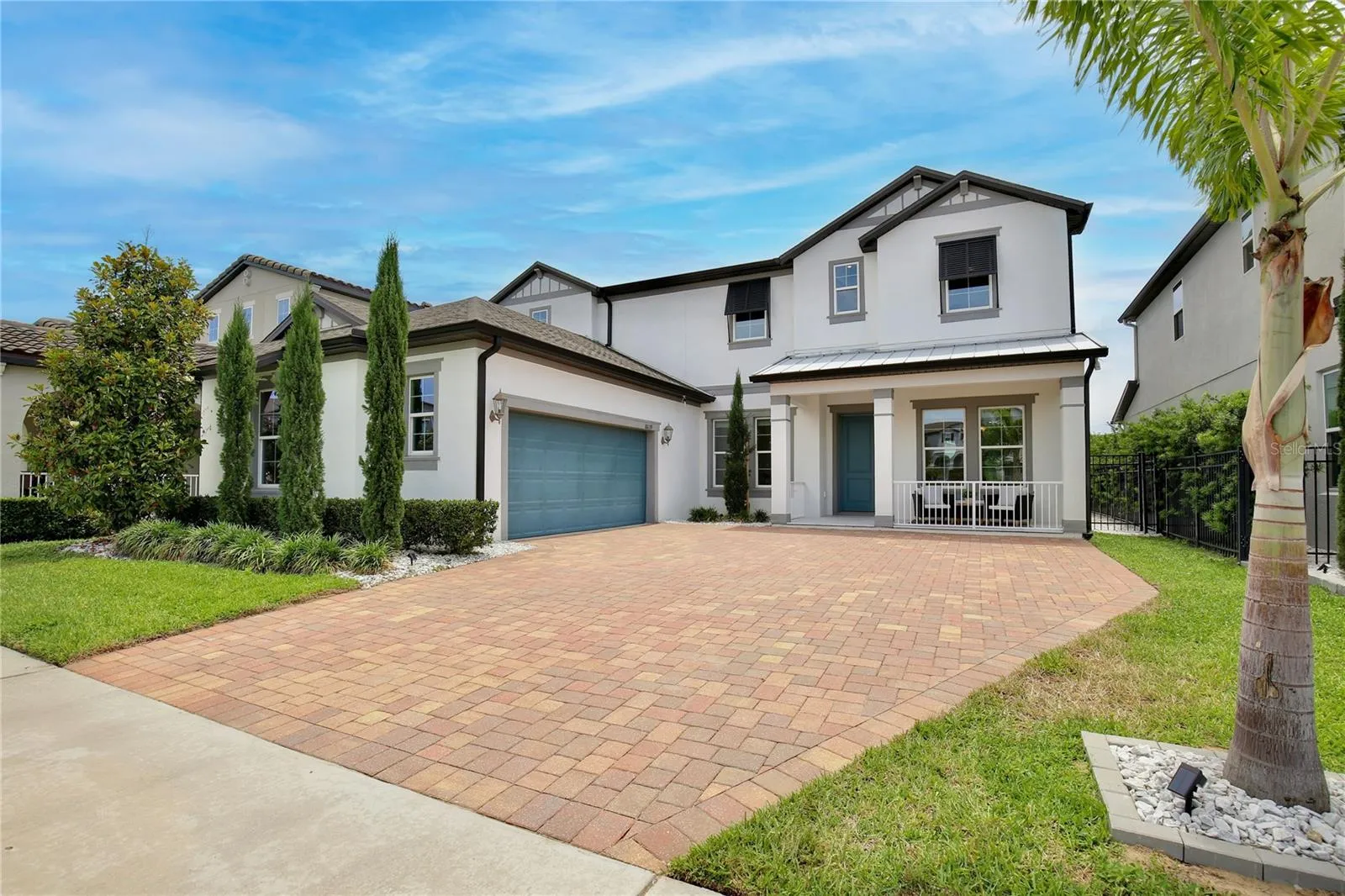 Welcome to 10139 Austrina Oak Loop! Featuring SIX BEDROOMS PLUS OFFICE and FIVE FULL BATHS, on a premium one-third acre lot overlooking the Disney preserve with a HEATED SALTWATER POOL AND SPA under a screen enclosure, this beautifully upgraded home is 4,500 square feet of understated elegance. With no front neighbor, step back to take in the impressive façade, paver drive and custom landscaping. Across the foyer from the formal dining room, French doors lead to the private office / seventh bedroom with an adjoining full bath. The gourmet kitchen and butler’s pantry feature quartz countertops, stainless appliances including double ovens, 42-inch cabinets with bonus overhead cabinets, an oversized island, and a walk-in pantry, all under the glow of custom light fixtures. A triple-pane sliding door with motorized blinds overlooks the pool and illuminates the family room, with ten-foot ceilings and luxury vinyl plank floor. Around the corner is the first floor Owner’s Suite, with tray ceiling and separate pool access, plus a large Owner’s Bath with two quartz vanities, soaking tub with separate shower and a huge walk-in closet. Upstairs, a wet bar with granite counter opens into a spacious loft with separate bonus room, adjacent to an en suite bedroom with full bath and walk-in closet. A tour of the large secondary bedrooms reveals plentiful natural light, walk-in closets, and views of the pool and wooded area beyond. Outside, a paver deck surrounds the heated saltwater pool and spa – all enclosed in an oversized screen enclosure offering uninterrupted views of nature by day and Disney fireworks by night. This immaculately maintained is completely move-in ready with custom window treatments, fully fenced lot, rain gutters and much more. This home is walking distance to top rated schools, retail, and dining at The Mark, and offers easy access to area attractions and the FL-429 corridor. Contact us now to schedule a private showing of this beautiful home!