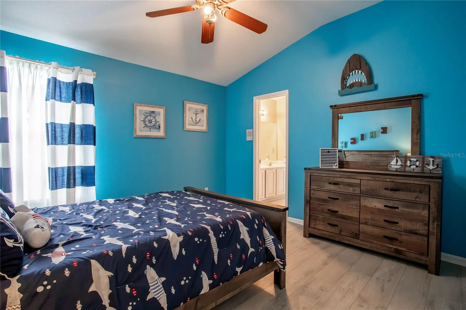 Step outside to your private backyard oasis, where a gorgeous swimming pool with a marble finish awaits. Whether you’re cooling off after a day at the parks or relaxing in the evenings, this resort-style pool area is truly the centerpiece of the home. There is also ample patio space for outdoor dining, lounging, or entertaining under the Florida sun.