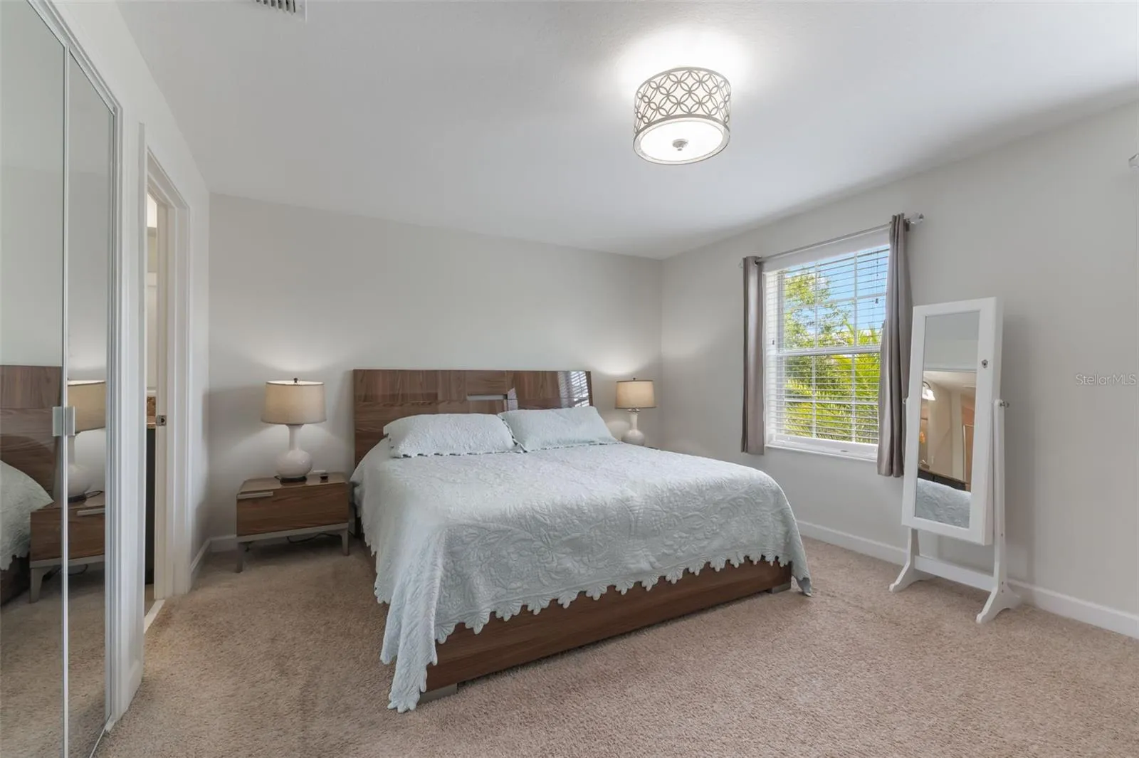 PRICE IMPROVEMENT AND SELLER IS OFFERING $5K BUYER INCENTIVE. Now is your opportunity to become a homeowner in Storey Park in Lake Nona and embrace resort-style living. This move-in ready townhome features a BRAND NEW AC unit, two bedrooms and two-and-a-half bathrooms. As you step into the home you will see the gorgeous open floor plan with a nicely appointed kitchen featuring 42” cabinets with crown molding, tile backsplash, granite countertops, and stainless steel appliances. The open kitchen provides counter seating and overlooks the dining area and living room. There is also a laundry room downstairs, along with a half bath perfect for guests. Upstairs, you will find the primary owner’s suite with an ensuite bath with dual sinks, granite countertop, and shower. On the other side, you’ll find another nicely sized bedroom, also with an ensuite bathroom. Outside you will find a fenced patio area, which connects with the single-car garage. Residents of Storey Park enjoy numerous amenities including multiple resort-style pools, a clubhouse, fitness center, tennis courts, dog park, big playing field, picnic area, playgrounds, and walking trails. HOA dues include cable, internet, and exterior maintenance. The townhome is conveniently located just minutes from the Orlando International Airport, top-rated schools, Nemours Hospital, VA Hospital, Drive Shack, Lake Nona Adventure Park (water park), UCF College of Medicine, many restaurants, attractions, major highways, and Lake Nona’s town center. Don’t wait and schedule your showing today!