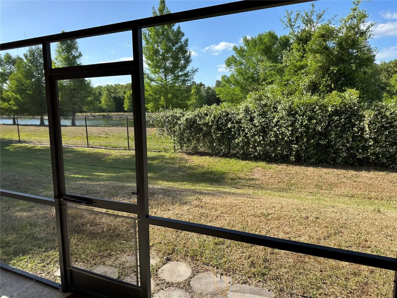 Step out back to the screen-enclosed patio overlooking a peaceful pond, offering a quiet place to relax or entertain once refreshed.