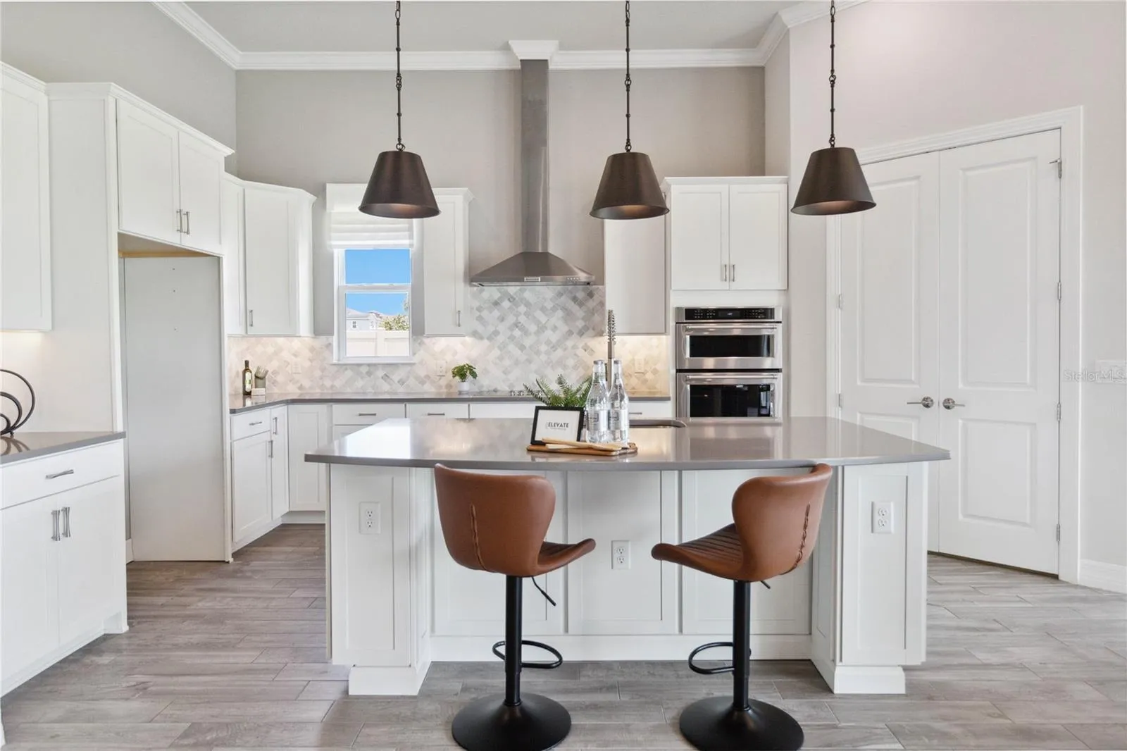 The kitchen is a highlight, featuring a large island, a walk-in pantry, and stunning design elements complete with KitchenAid appliances.