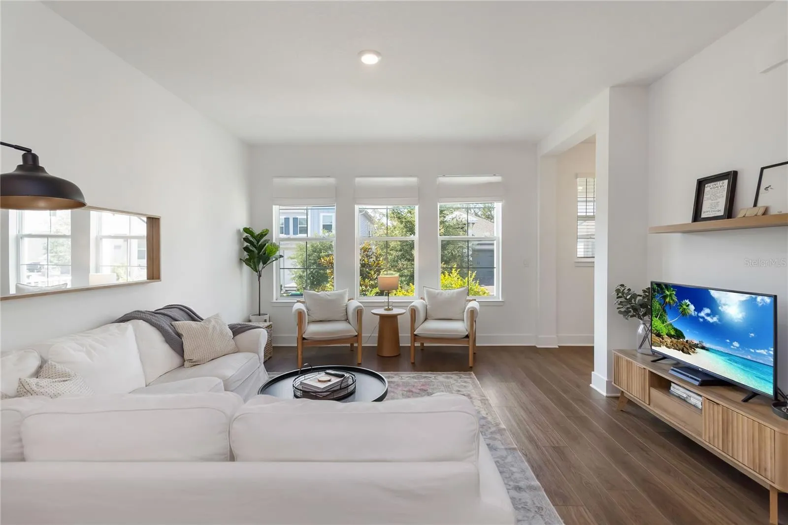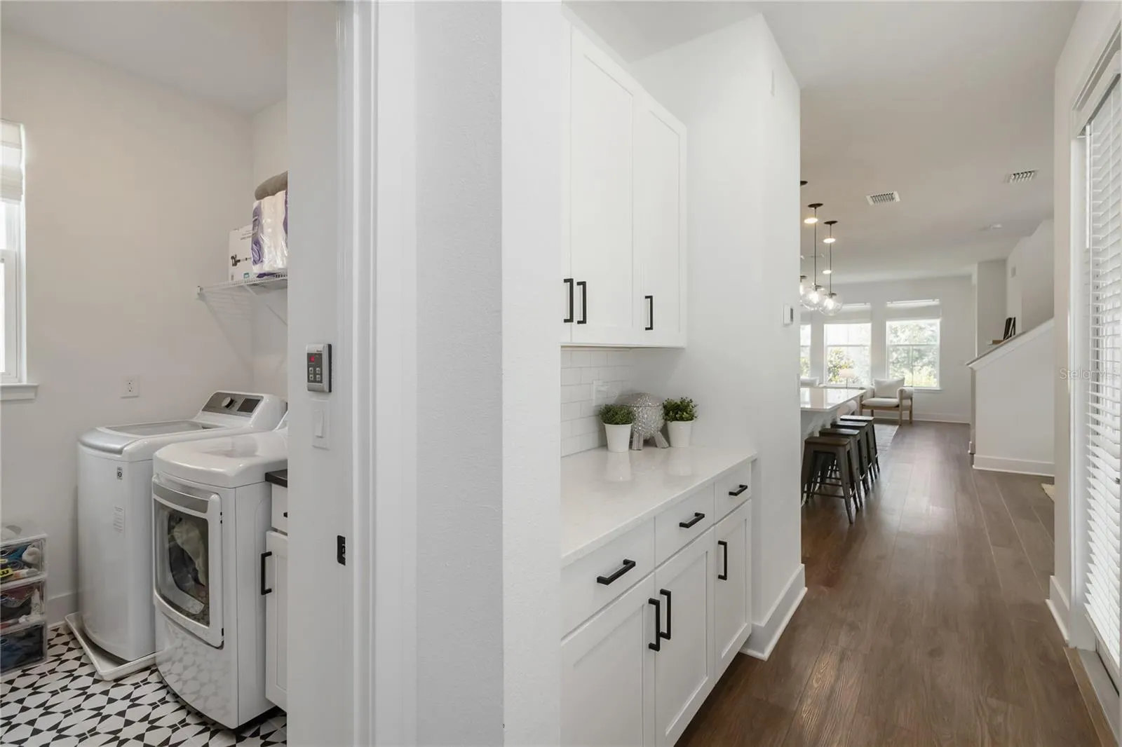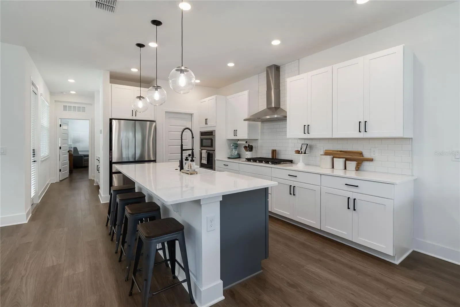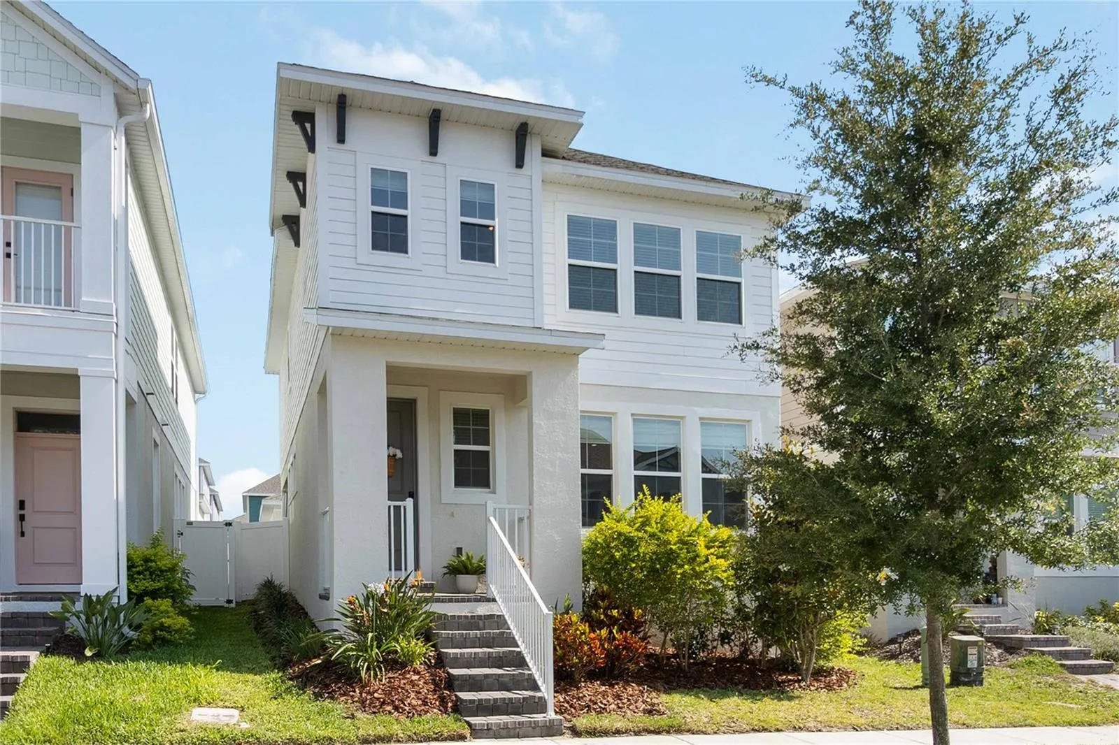 Discover the exceptional LOW MAINTENANCE lifestyle offered in the Horizon West – Winding Bay community with this impressive custom-built residence (2022). NO CDD – LOW HOA- This home seamlessly combines modern design, everyday ease, and remarkable accessibility. Situated in a vibrant, active neighborhood boasting a clubhouse, dog park, and resort-caliber pool. Zoned for TOP RATED Water Spring Elementary & Middle School and Horizon High School. Inside, the expansive open-concept great room flows into the upgraded kitchen with oversized island, GAS range, subway tile backsplash, SS appliances and quartz counters. Retreat to the first-floor primary suite, complete with tray ceilings, a custom walk-in closet, and a luxurious spa-like bathroom featuring a stunning tiled shower and dual vanities. The conveniently located first-floor laundry room adds to the ease of living. Upstairs a loft/bonus room with a built in office space connects the THREE generously sized bedrooms with shared bathroom. Step outside to your private, covered lanai and vinyl-fenced yard- alley access to a two car garage. Moments away from Hamlin Town Center, Flamingo Crossings Village, and Orlando’s World Class Theme Parks, Dining, Golf, Shopping and MORE. Easy access to highways for a trip to one of Florida’s Famous Beaches! This is the one! Tour today!