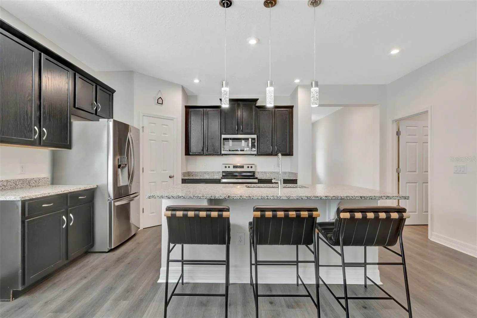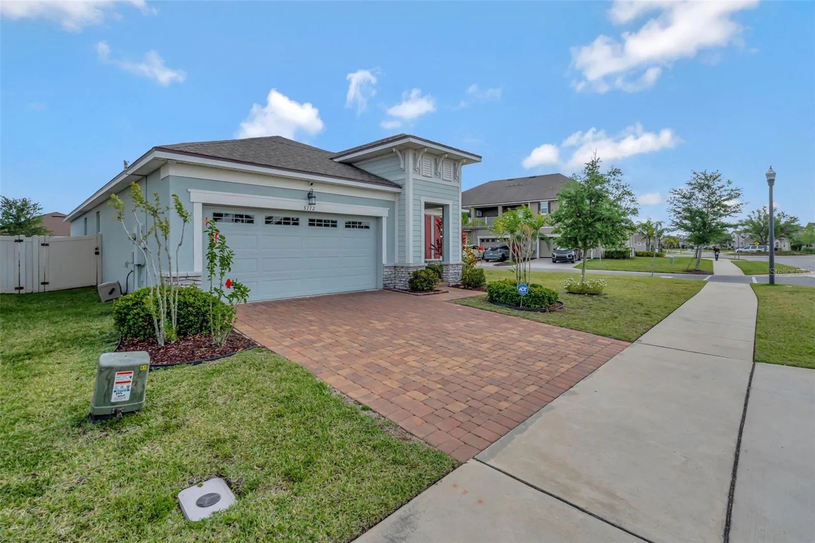 Location, location, location! This move in ready, light and bright home is located in the highly sought after gated Waterbrooke community, steps from the community amenities and with easy access to the Turnpike. It doesn’t get better than this. This charming home features convenient one level open concept living with 3 bedrooms, 2 bathrooms and a flex/bonus space that can be a home office/den/living room/play room, or anything your lifestyle desires. The primary suite has an oversized closet with custom closet system as well as a second closet. The great room and dining room are open to the gourmet kitchen with center island, granite counters, stainless steel appliances and walk in pantry with custom closet systems. The great room opens to the covered, screened patio area with pavers and looks onto the expansive, fenced back yard that is perfect for outdoor activities. The yard is oversized with room for pool and still have plenty of play space. The home sits on a corner lot allowing for the extra size as well as privacy. Inside laundry room with custom mud area shelving. The home sits steps from the community resort style amenities that include a pool, clubhouse, gym, playground, dog park, walking trails and lake. Easy access to the Turnpike, 429, downtown Clermont, downtown Winter Garden, downtown Orlando, hospitals, shops, restaurants and the attractions. Come see this immaculate home – why wait to build when you can have it today!