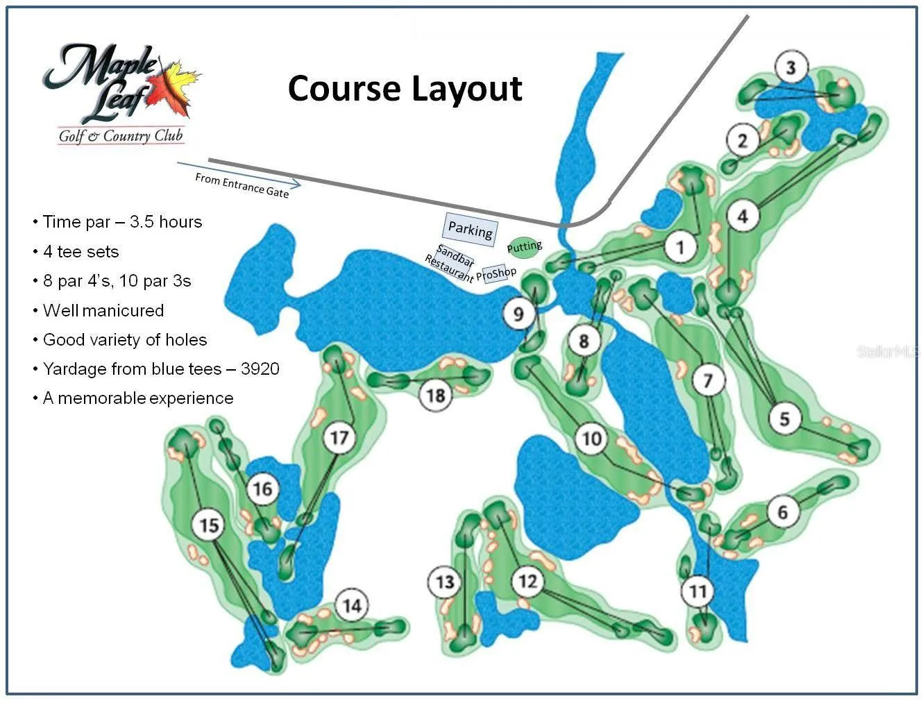 This beautifully maintained 2-bedroom, 2-bath home is located in a vibrant 55+ gated golf course community. A practical floor plan with comfortable living and dining spaces. Functional kitchen with ample storage. The front 220sq ft lanai is the perfect space for reading, relaxing, watching the sunset or just sitting quietly enjoying your favorite beverage. Take in the tranquil surroundings and manicured landscapes. Low-maintenance yard with room to personalize. On the exterior, you will enjoy the enclosed portion of the carport leading to a oversized storage shed with workshop and laundry. Whether you’re a golf enthusiast or just looking for a peaceful, active lifestyle, this home is the perfect blend of comfort and community. Schedule your private showing today and start living the Maple Leaf lifestyle. **Be sure to check out the 3-D virtual tour and walk through video links** Located in award winning Maple Leaf Golf & Country Club, a popular 55+ gated golf course community with an active resort lifestyle. Features a Par 62, 18 hole golf course, 5 tennis courts, bocce ball, lawn bowling, 2 shuffleboard courts, 4 heated swimming pools, 2 hot tubs, fitness facility, woodworking facility, 75+ clubs/activities, 4 pickleball courts, restaurant with full service bar, tiki hut/bar and more. Don’t miss out on this opportunity to live in a thriving community where every day feels like a vacation.