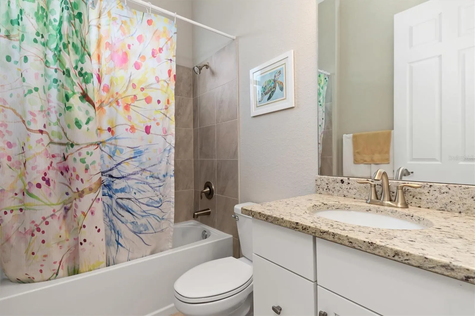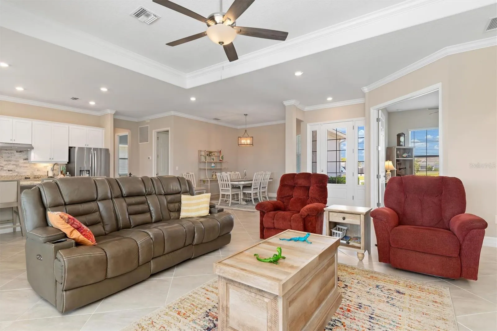 Truly move-in ready home, TURNKEY FURNISHED, with all-tile flooring, impact windows, front door & sliders for peace of mind and open floorplan with high ceilings, perfect for entertaining or everyday living!