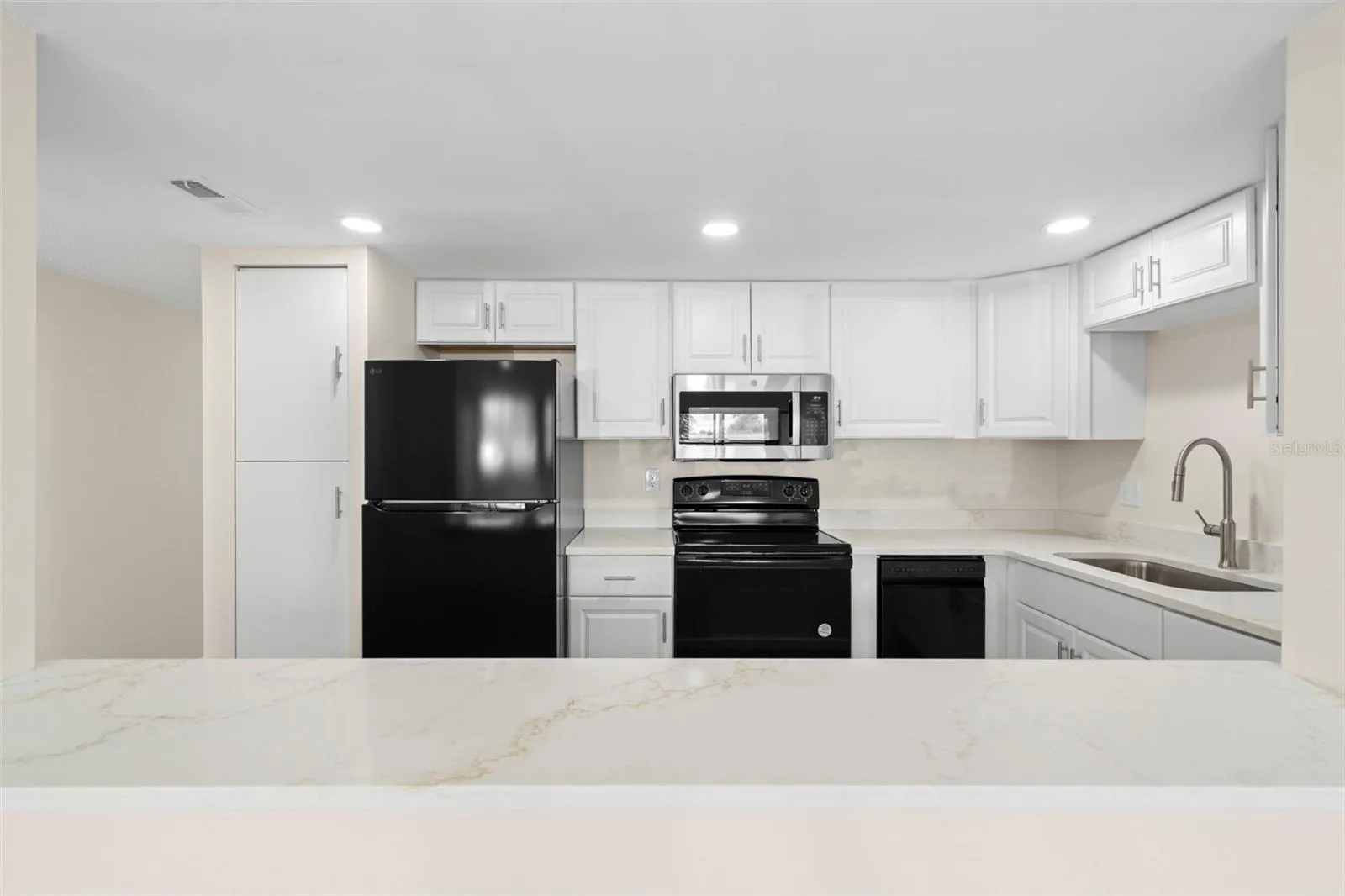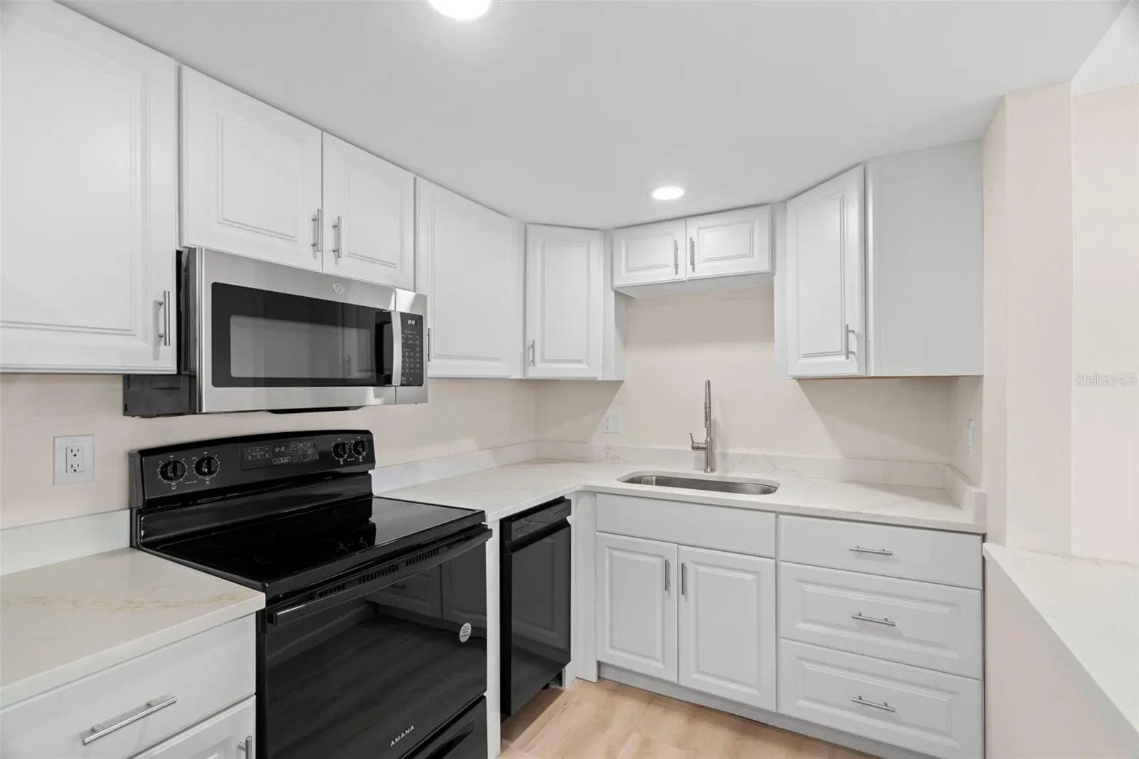 Flood zone X 500. Evac zone C/D. 1st floor parking space in front of condo. This is a must see. Purchased in Feb 25. The condo has had a complete remake. Newer storm door and front door, laminate flooring, new screens throughout and new vinyl on the sliding windows of the Florida room. New lights in living room kitchen and bath and hallway. Cut through from kitchen to dining area has been opened. Kitchen ceiling has been raised with new lighting. The entire kitchen has new floors quartz counters and all new appliances including a new hot water tank. In the hallway a new electrical panel has been installed. HVAC is newer and in good working order. The bath has new vanity and tile in bath area. New screens in both bedrooms. The entire condo in the Florida room and all other rooms has been freshly painted. Low monthly fee including cable and internet. 2 heated pools tennis and pickle ball. Lots of fun activities and close to shopping, dining, TIA, St Pete Clearwater Airport, and of course miles of sparkling Gulf Beaches, come see you will be sure to be pleased.