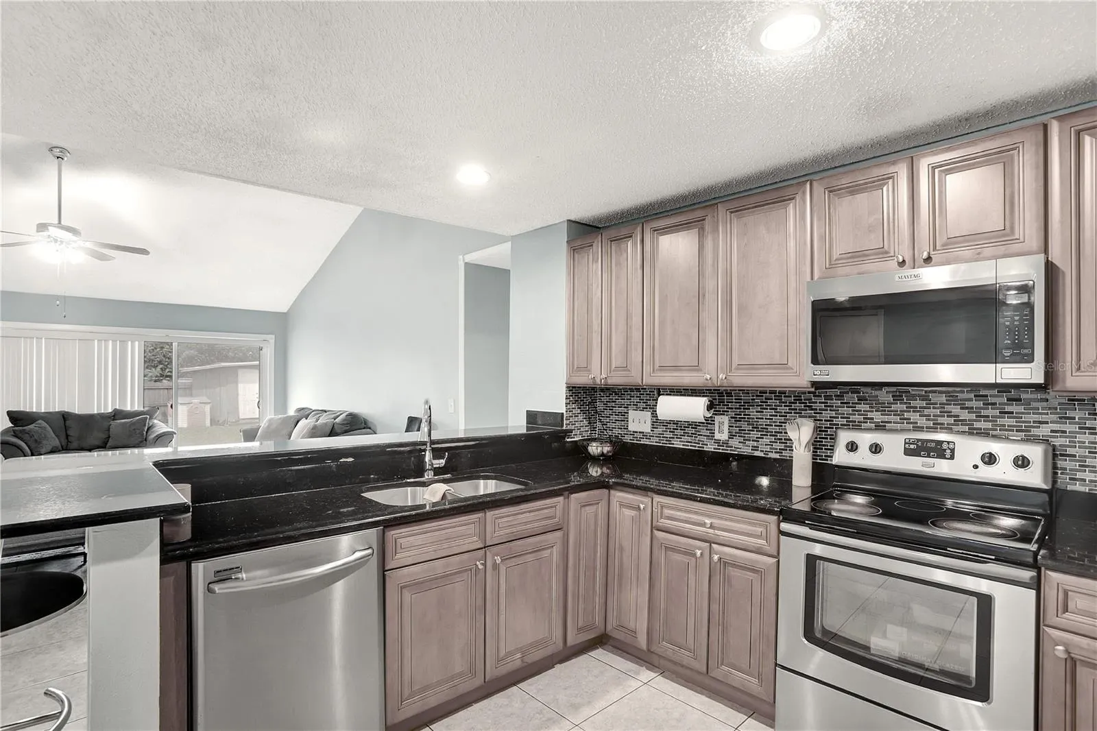 Seeking more space for your growing family? WELCOME HOME TO COMFORT! This spacious 2310 sq ft residence features 4 bedrooms and 2.5 bathrooms, nestled on a fenced 1/3 acre lot within the peaceful Silver Ridge Community. Step inside the entrance to find both Formal and Living Rooms—perfect for entertaining or creating a home office or den. The foyer opens to the heart of the home: an open-concept Kitchen and Family Room with a cozy Wood Burning Fireplace. The split floor plan offers privacy with the Master Suite and second bedroom plus half bath on one side—ideal for a nursery or office—and two additional bedrooms with a full bath on the other. Enjoy seamless indoor-outdoor living with huge 3-door glass sliders leading to an open patio and ample outdoor space for play or storing recreational vehicles. The updated kitchen boasts granite countertops, solid wood cabinets, a pantry, and eat-in dining. Bathrooms feature granite counters and solid wood vanities. Additional highlights include ceramic tile and wood flooring, tall cathedral and vaulted ceilings, a low HOA, and a modern, flexible floor plan. Well maintained with A/C replaced in 2019. This home’s solar system provides very LOW POWER BILLS! Conveniently located minutes from Highways 408 and 429, shopping, dining, and just 30 minutes from Orlando International Airport. Schedule your private tour today!