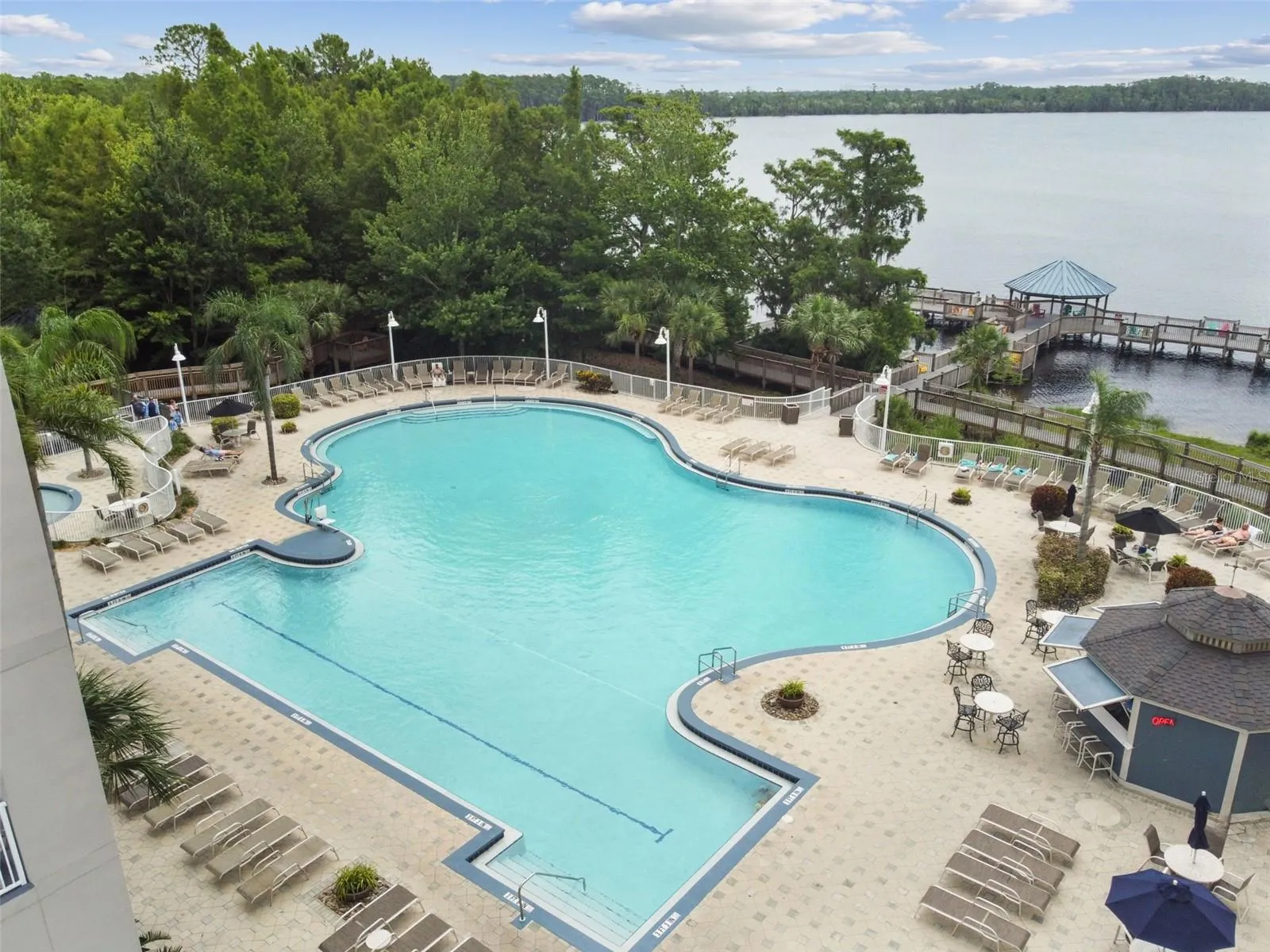 LAKEFRONT VACATION ESCAPE in the Heart of Orlando – Fully Furnished 2-Bedroom Condo-hotel with Bunk Bed Nook! Wake up to breathtaking sunrise views over Lake Bryan from your private balcony in this beautiful 4th-floor condo—just minutes from Disney Parks, Disney Springs, and world-class shopping, dining, and entertainment! This spacious 2-bedroom, 2-bathroom retreat also features a fun bunk bed nook that’s perfect for kids or extra guests. The open-concept living area includes a sleeper sofa, large dining space, and a fully equipped kitchen with granite countertops, bar seating, and everything you need for vacation living. NEW INTERIOR PAINT THROUGHOUT IN MAY 2025, with professionally cleaned bedroom carpet and durable ceramic tile floors, this unit is ready for new owners! Enjoy peace of mind with a NEW A/C in 2024 and a NEW HOT WATER HEATER IN 2025. Unwind each evening on the balcony or catch the Disney fireworks lighting up the sky! Resort-style amenities include: 2 heated outdoor pools, a kiddy pool, hot tub, and a relaxing pool terrace, private dock for catch-and-release fishing, fitness center, arcade/game room, nature boardwalk, and picnic areas with BBQ grills. High speed internet, cable, water, sewer and building exterior and grounds maintenance are included in the monthly condo fees. Located in a secure, well-maintained community with two multi-story towers, and garage parking, this 2007-built resort offers a unique investment opportunity or vacation getaway. Rent Jet skis, kayaks, paddleboards & pontoon boats from nearby Paradise Cove Watersports for a day on gorgeous Lake Bryan. You’re just 2 miles to Disney Springs, under 15 minutes to Disney Parks, and only 20 minutes to Universal Orlando and newly opened Epic Universe. Manage your short term rental yourself, or utilize the on-site short term rental program. Live in the unit full time or lease to longer term tenants. Whether you’re looking for a short-term rental or your own personal slice of paradise, this lakefront gem checks all the boxes!