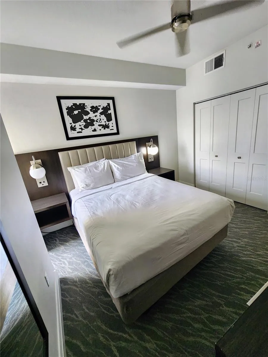 One or more photo(s) has been virtually staged. Turn-Key, Fully Furnished 3-Bedroom Condo at The Grove Resort & Water Park!Welcome to your personal slice of paradise at The Grove Resort & Water Park, one of Orlando’s most sought-after vacation destinations just 10 minutes from Walt Disney World! This beautifully appointed 3-bedroom, 2-bathroom model offers 1,396 sq ft of spacious living, located on a high floor with tranquil views from your private screened balcony—the perfect spot to unwind after a day of adventure.Inside, you’ll find a fully equipped kitchen with quartz countertops and stainless steel appliances, seamlessly connecting to an open-concept living and dining area designed for comfort and entertaining. The primary suite features a king-size bed, luxurious en-suite bathroom with double vanity, soaking tub, and separate glass shower. Two additional bedrooms with queen-size beds and a second full bathroom ensure privacy and comfort for family and guests alike.Indulge in resort-style living with world-class amenities, including Surfari Water Park with dual water slides, a FlowRider® double surf simulator, lazy river, multiple pools, spa, fitness center, arcade, mini golf, and Lake Austin access for fishing, paddle boating, and lakeside relaxation. The resort offers on-site dining, alfresco market, and complimentary shuttle service to Disney—making your vacation effortless and unforgettable.The Grove’s professional management team can handle everything, from maintenance to short-term rentals, ensuring your investment works for you even when you’re away. HOA fees cover all utilities, including electricity, water, cable, and high-speed internet.Whether you’re seeking a luxurious vacation home or a high-demand investment property, this turn-key condo offers the ultimate Florida lifestyle.