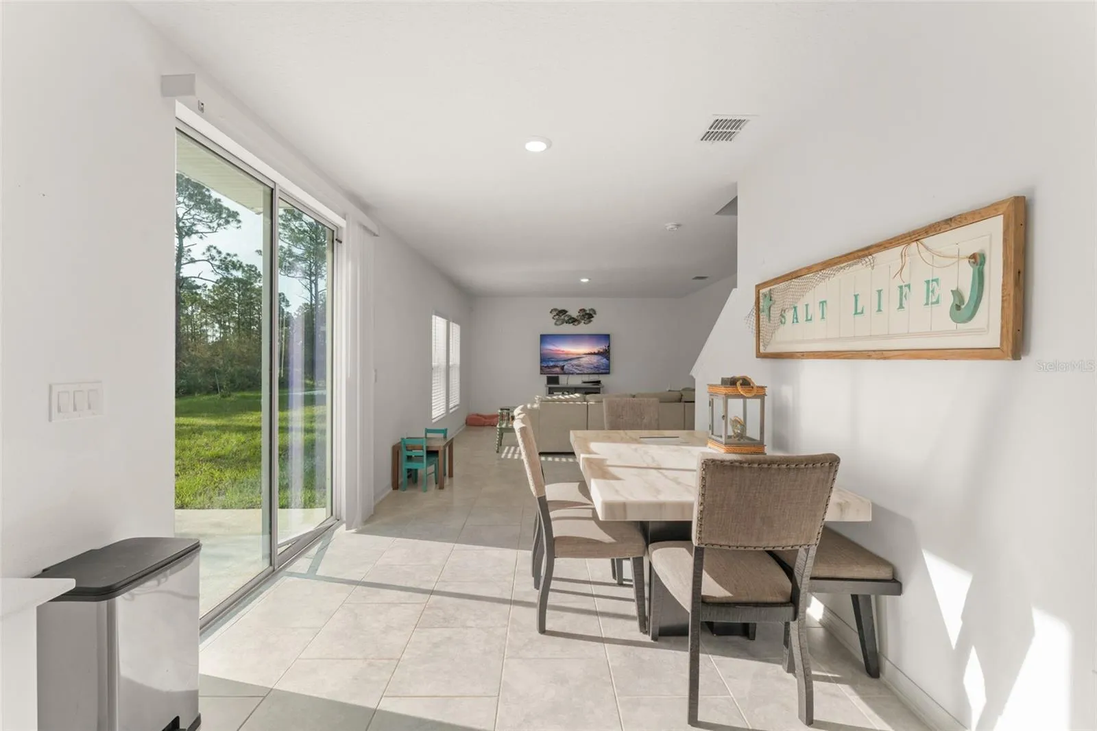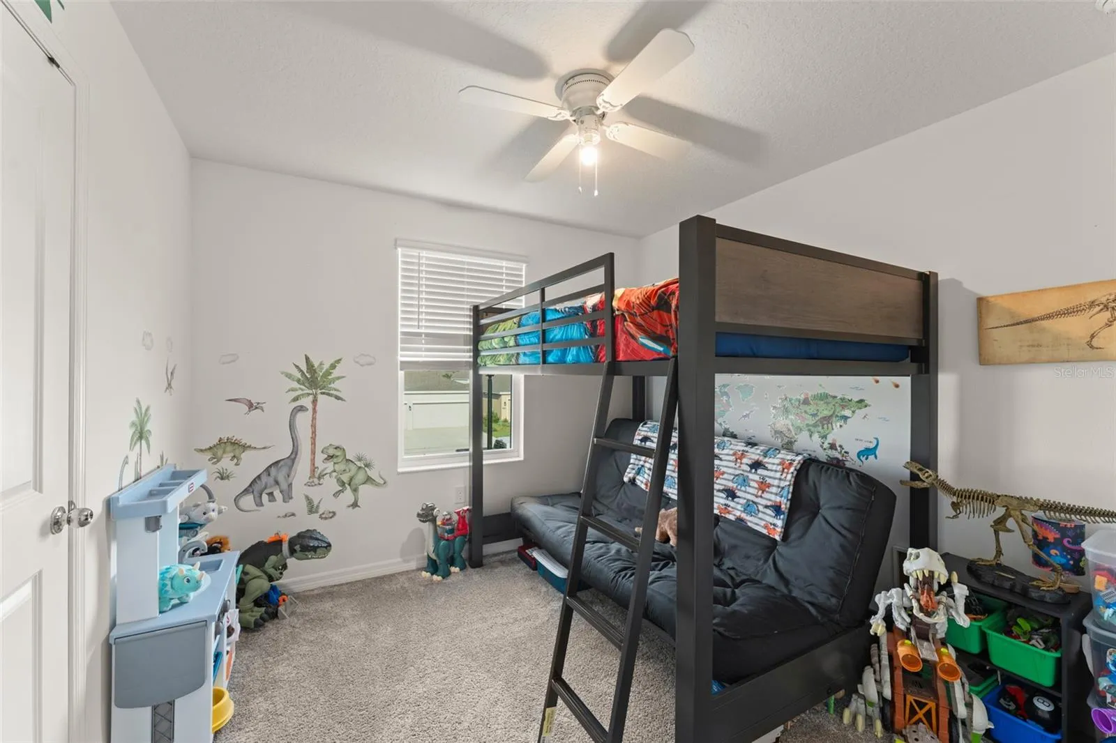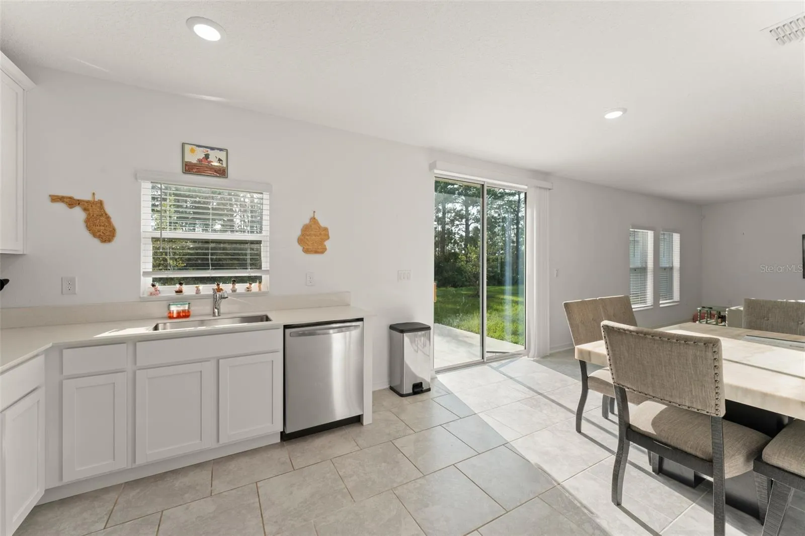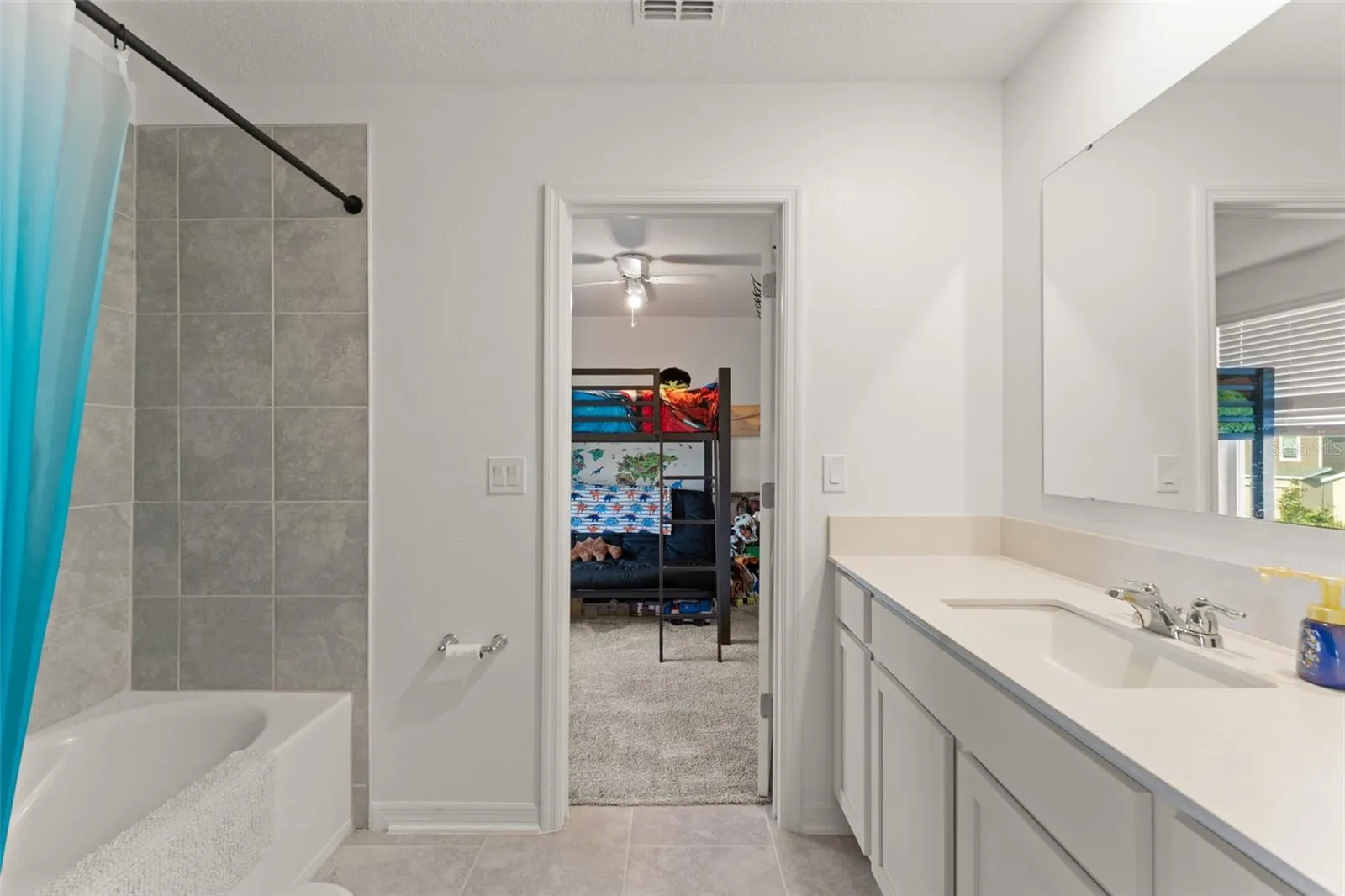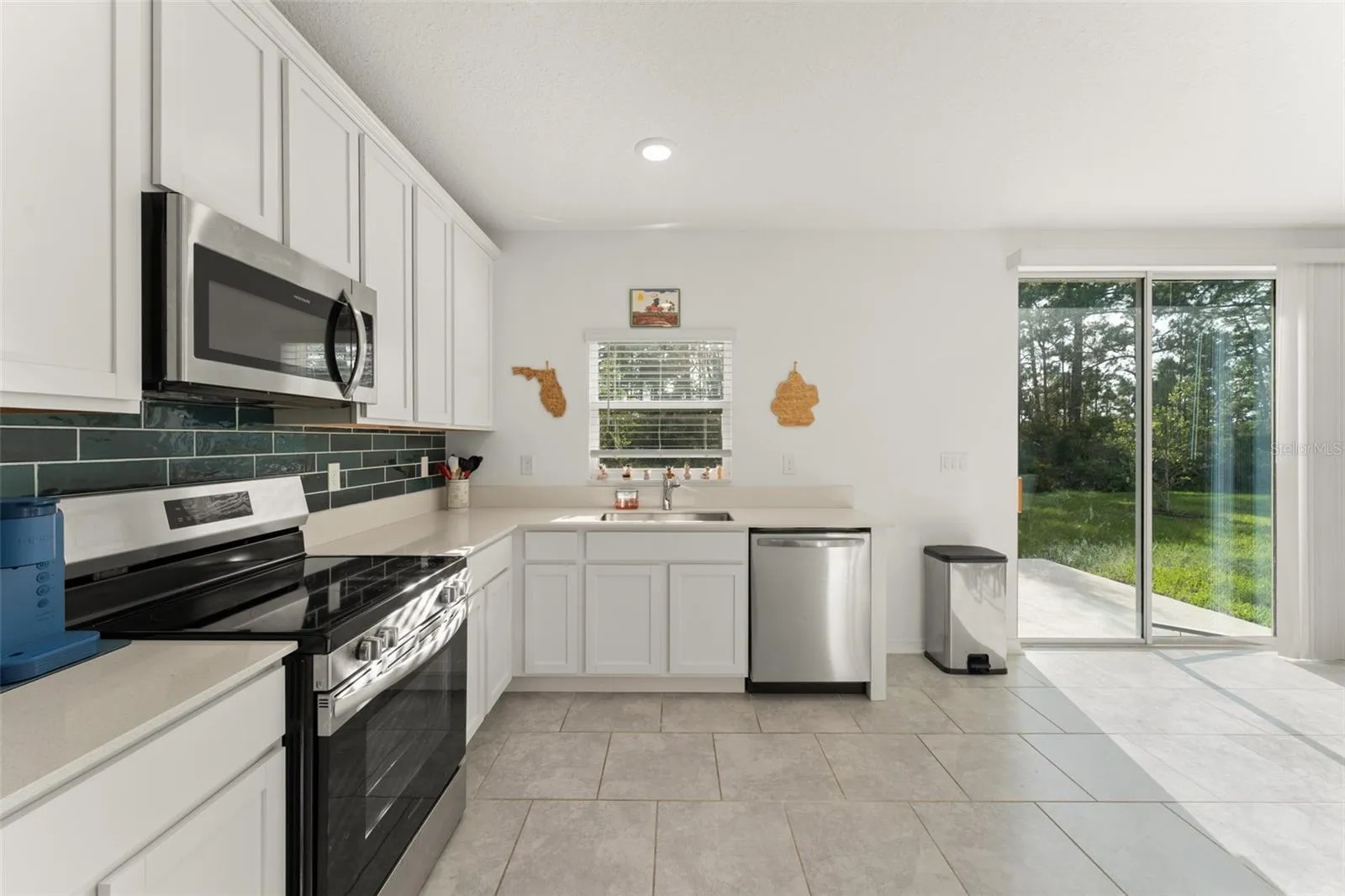 **This home qualifies for lending with NO DOWN PAYMENT required, 100% financing available. ** Welcome to an inviting 4-bedroom, 3-bathroom single-family home nestled in the peaceful community of Edgewater. From the moment you arrive, you’ll be greeted by a beautifully landscaped front yard and a welcoming two-car garage. The front porch, with space for two rocking chairs, is the perfect spot to relax and soak in the tranquil surroundings. Step inside and take in a sneak peek of the bright and airy living room just down the hall. To your right, you’ll find a cozy first-floor bedroom with a built-in closet, ideal for guests or a home office, along with a nearby full bathroom featuring a bathtub. As you continue through the home, access to the garage is conveniently located on the left. The living room, with windows overlooking the lush backyard, flows effortlessly into the galley-style dining area and open-concept kitchen. The kitchen features crisp white cabinetry, stone countertops, a vibrant tile backsplash, and stainless steel appliances—perfect for both everyday living and entertaining. A sliding glass door off the dining area opens to a patio and offers beautiful views of the greenery beyond. Upstairs, a versatile loft area has been thoughtfully modified with a built-in counter—ideal as a desk or workspace. Two additional bedrooms feature built-in closets and share a Jack-and-Jill bathroom with stylish cabinetry and a tub. The laundry room is conveniently located between the third bedroom and the primary suite, complete with a modern bottom-loading washer and dryer and built-in shelving for easy organization. The primary bedroom is a sunlit retreat with multiple windows and a spacious en suite bathroom featuring dual sinks, matching white cabinetry, and a luxurious walk-in shower with floor-to-ceiling tile. The walk-in closet includes wrap-around built-in shelving to keep everything in its place. Step out back and enjoy a blank canvas backyard—a perfect setting for your dream outdoor living space, framed by mature vegetation for privacy and natural beauty. Don’t miss your chance to own this thoughtfully designed home that blends comfort, style, and functionality. Schedule your showing today!
