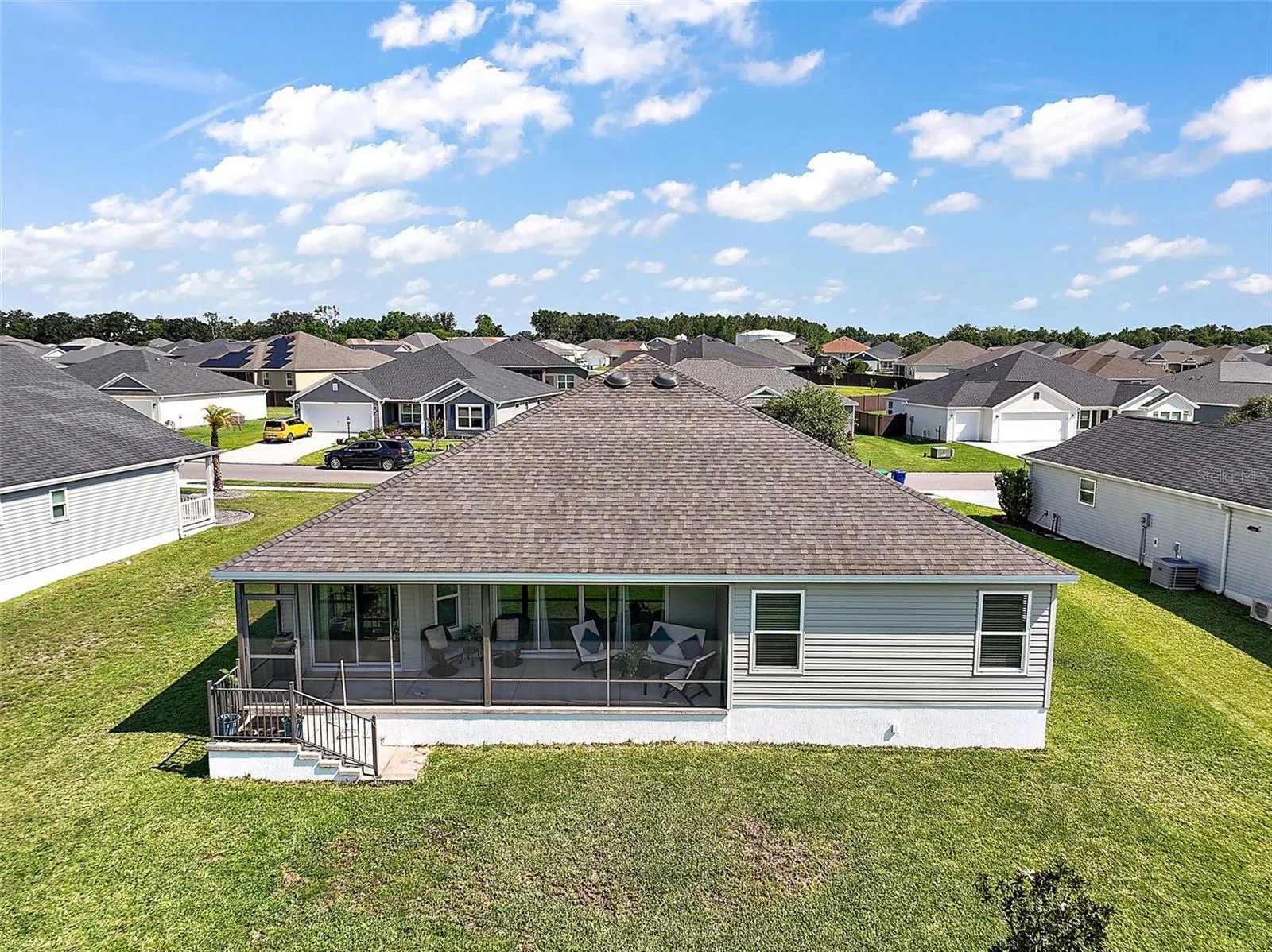 Step into refined living in this beautifully appointed 3-bedroom, 2-bathroom home nestled within the gated community of Oxford Oaks. Designed with both style and functionality in mind, this home showcases an expansive open-concept layout that effortlessly blends everyday comfort with upscale entertaining. From the moment you enter, you’ll appreciate the sleek low maintenance flooring that flows throughout the living spaces. The kitchen is a chef’s dream, featuring upgraded cabinetry, stainless steel appliances, a built in pantry and a layout opens seamlessly to the living room and dining areas- ideal for hosting guests or enjoying quiet evenings at home. Two sets of sliding glass doors draw you out to the oversized screened in lanai, where serene views offer the perfect backdrop for morning coffee or sunset relaxation. Retreat to the luxurious primary suite, where a spacious walk in closet, dual vanities, and large walk in shower offer the perfect blend of comfort and function. Additional features include a full two car garage plus a dedicated golf cart garage, ideal for exploring the community! Cool down at the community pool on hot summer days! Located just minutes from the Villages and a wealth of shopping, dining and recreational options, this exquisite home combines modern convenience with charm and tranquility of one of Oxfords’s premier neighborhoods!