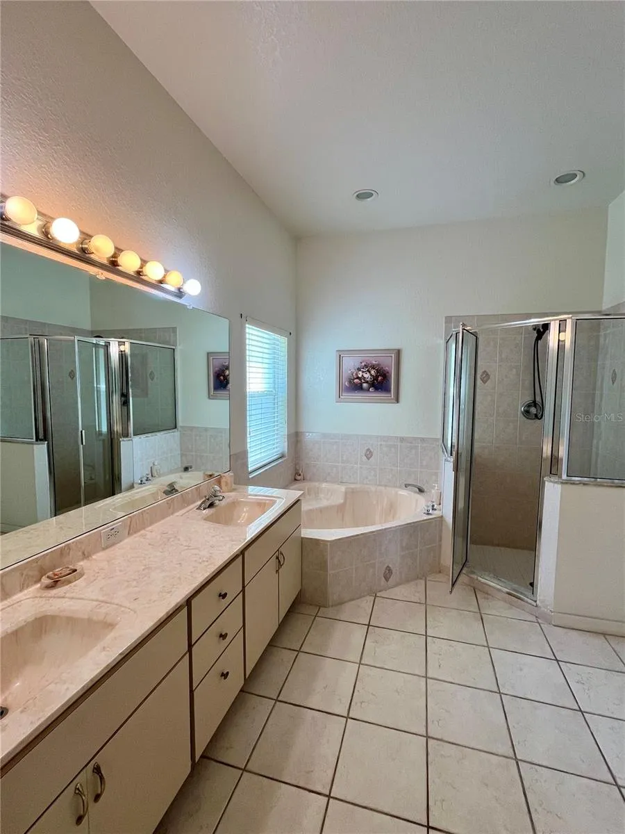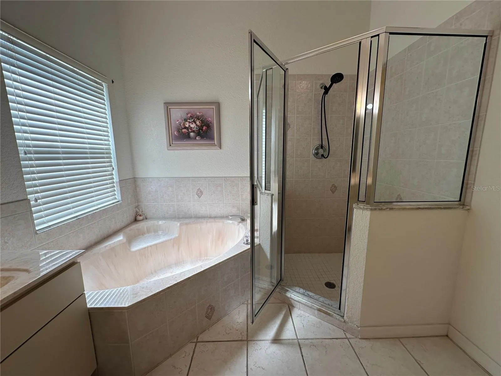 The primary suite features a spa-like bathroom with an oversized garden tub and walk-in shower, while a secondary bedroom has its own private bath which is great for visitors or in-laws.