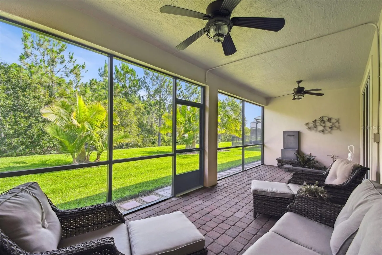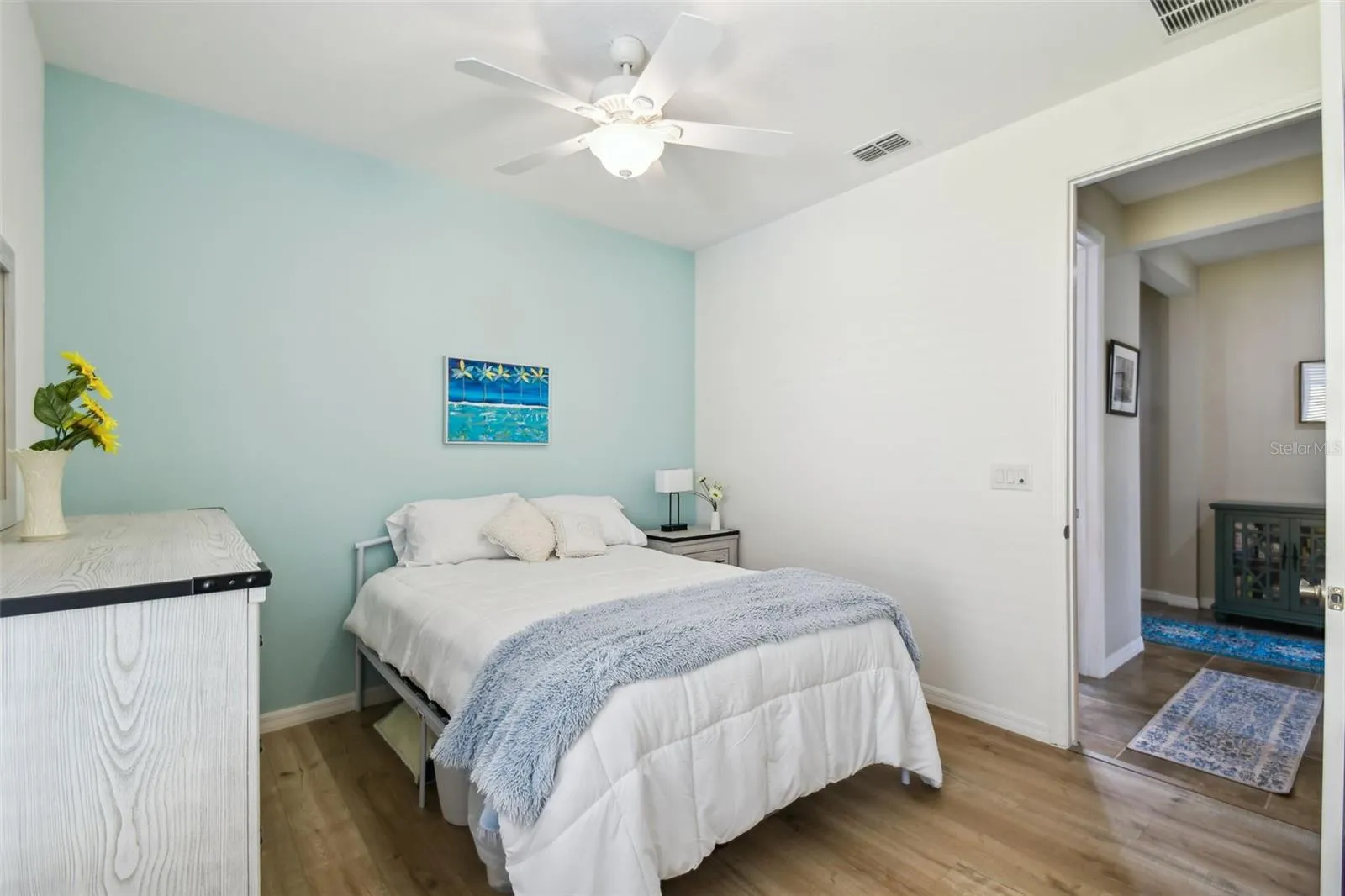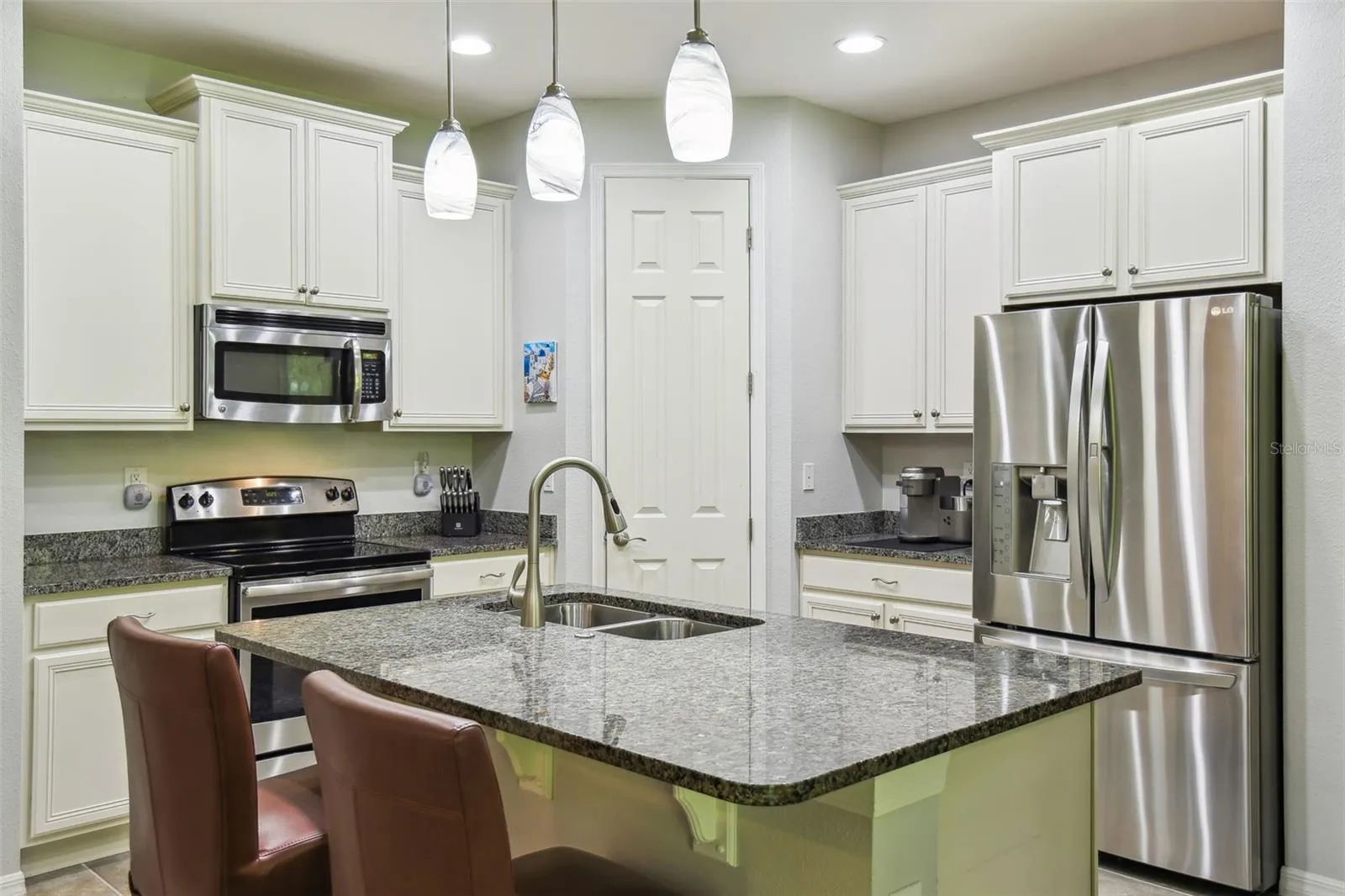 MOTIVATED SELLER. NEW PRICE $385,000. CONSERVATION VIEW, NO CARPETS, LVT TILE IN BEDROOMS AND DEN. SOME FURNITURE AVAILABLE OUTSIDE OF CONTRACT. This popular Cabella model has a 3-bedroom floor plan and extended garage with room for two cars AND a golf cart. This home has a large backyard with room for a pool and a fence for your furry friends, Entering through the screen entry and the leaded glass door you will immediately notice the open concept layout that allows for seamless entertaining, The large great room with a great ceiling fan gives you plenty of options for your furniture layout along with a spacious dining area offering a picturesque view of the Conservation. Prepare to be amazed by the kitchen with a large island, plenty of granite counter space, top-of-the-line stainless steel appliances, upgraded cabinets, and great lighting that makes this kitchen both stylish and functional. Plus, the walk-in pantry and additional storage space ensure you’ll never run out of room. Retreat to the expansive primary bedroom, where you’ll find ample space for a king-size bed and a great view of the conservation area. The en-suite primary bath features solid surface counters, a large walk-in shower and a large walk-in closet. NO CARPET in this home. All 3 bedrooms have new upgraded vinyl wood look flooring and walk in closets. The covered lanai has a beautiful waterfall feature that helps you relax with your favorite beverage while enjoying the tranquil atmosphere. New upgraded landscaping and outdoor lighting make your new home even more inviting no matter what the time. A new garage door opener and whole house surge protector round out all the fantastic features this home offers to the lucky new owner! This beautiful home is located near the Palms amenity center and the West Gate for easy entry and exit from the community. Solivita is a Tuscany Inspired 55+ active community located approximately 40 minutes from Disney World, Sea World, and the Orlando International Airport. Solivita AMENITIES include more than you will ever have time for! 2 state of the art amenity centers with exercise & meeting rooms; a SOFTBALL diamond & field; 3 restaurants – 14 HEATED POOLS; PICKLEBALL and TENNIS courts; BOCCE BALL; Shuffleboard; Horseshoe; a BILLIARDS room; LIBRARY; a DOG PARK; over 250 resident clubs; 36 holes of CHAMPIONSHIP GOLF and SO MUCH MORE!! The HOA fees include 24 hour gated security and complete landscape maintenance and watering. Welcome to the “Solivita Family”!