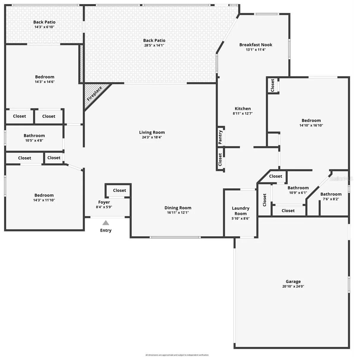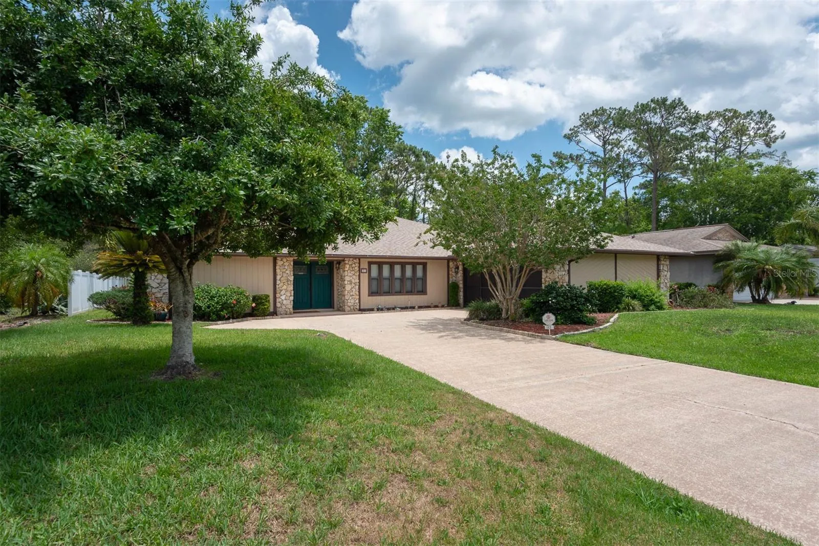 Spacious and full of character, this 3-bedroom, 2-bath Palm Coast home offers over 2,000 sq ft of living space with thoughtful details throughout. Enjoy a galley-style kitchen with stainless steel appliances and a sunny breakfast nook, generously sized bedrooms with ample closet space, and a primary suite featuring dual marble sinks and a sunken tub. Relax by the striking coquina wood-burning fireplace or entertain across two screened lanais overlooking the fully fenced backyard. The courtyard-style driveway adds curb appeal, while the 2-year-old roof, serviced A/C, full irrigation, and smart home features provide peace of mind. With no HOA, a large lot, and a convenient location near schools, shopping, and major roadways, this home is truly a lot of house for the money. Schedule your showing today and see why this one stands out.