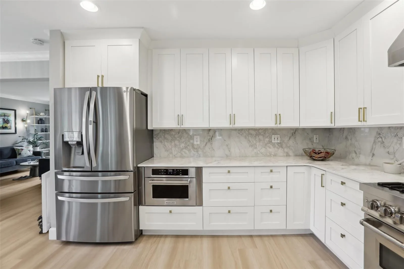 The completely remodeled 4-bedroom, 3-bathroom home has been thoughtfully designed with attention to detail and high-quality finishes throughout. The chef’s kitchen features premium stainless steel appliances, including a natural gas range, dual-icemaker refrigerator, reverse osmosis water filtration, sleek countertops, and custom cabinetry, perfect for the avid cook or entertainer. The open-concept layout flows seamlessly through the living and dining spaces, ideal for gatherings or relaxed everyday living.