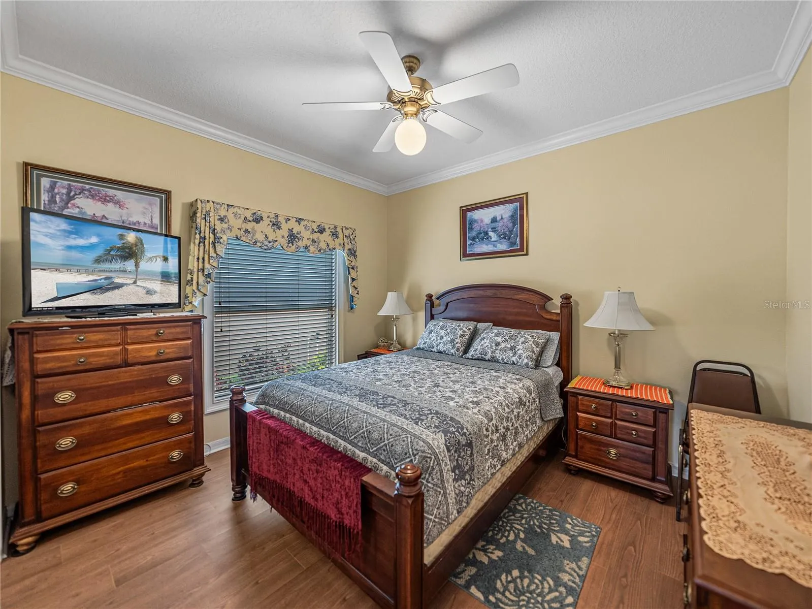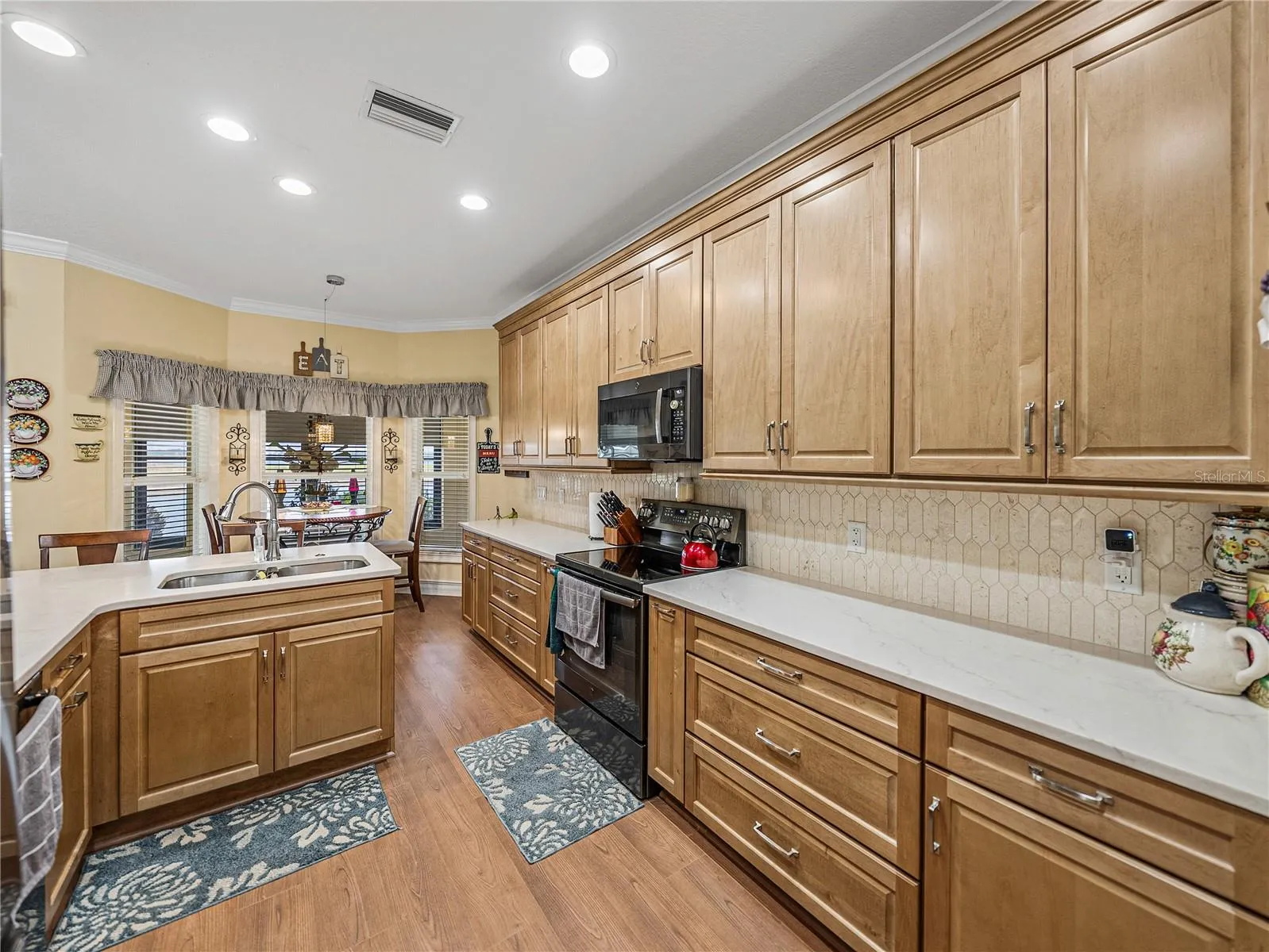 New luxury vinyl plank flooring throughout the entire home, fresh interior paint and added crown molding in the den/office, new split A/C unit in the enclosed lanai, whole-house insulation upgrade, including the garage, and solar panel system for energy savings.