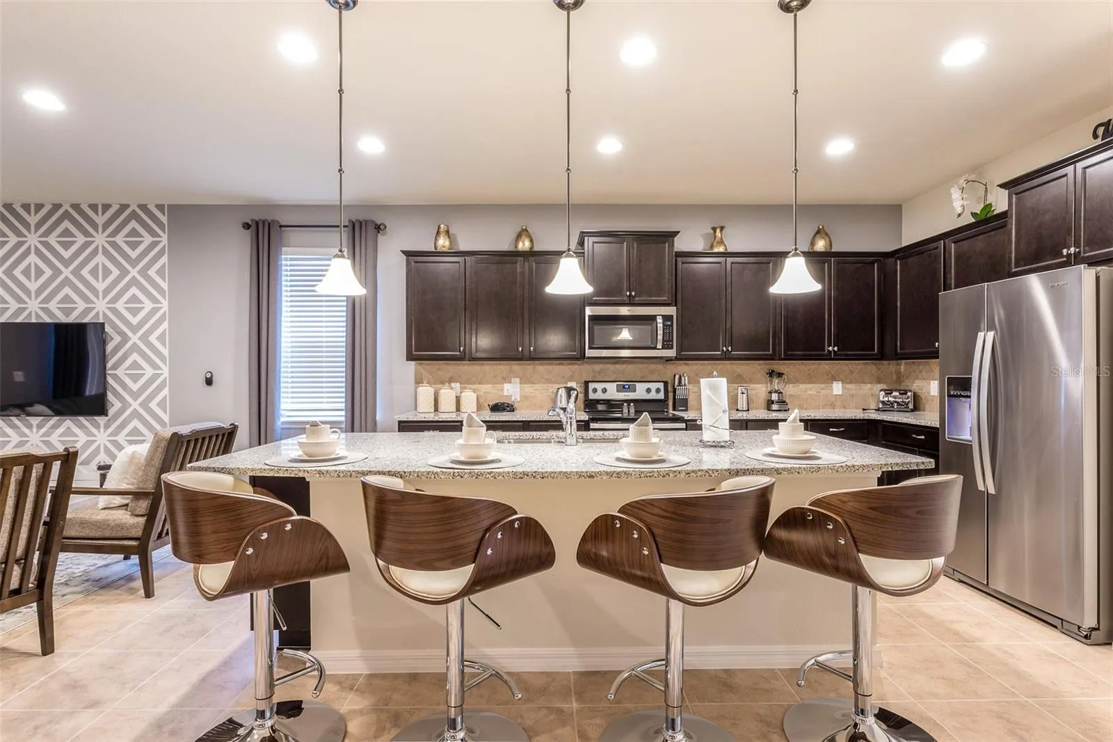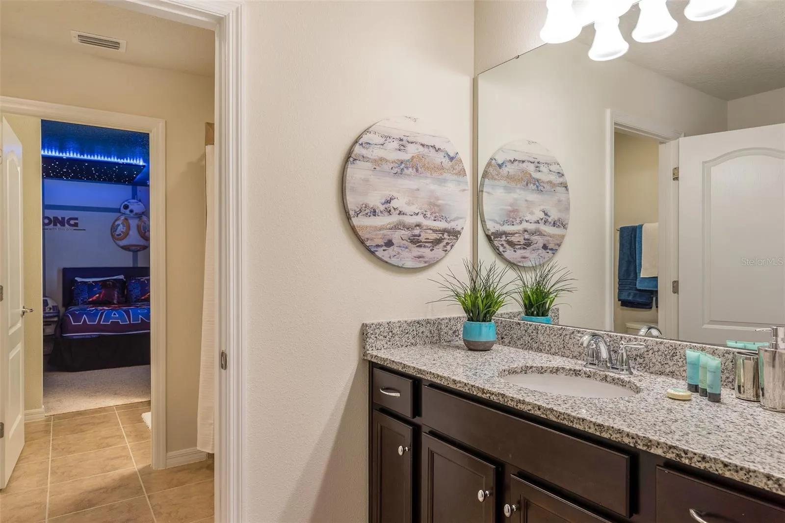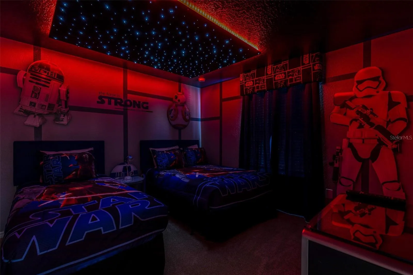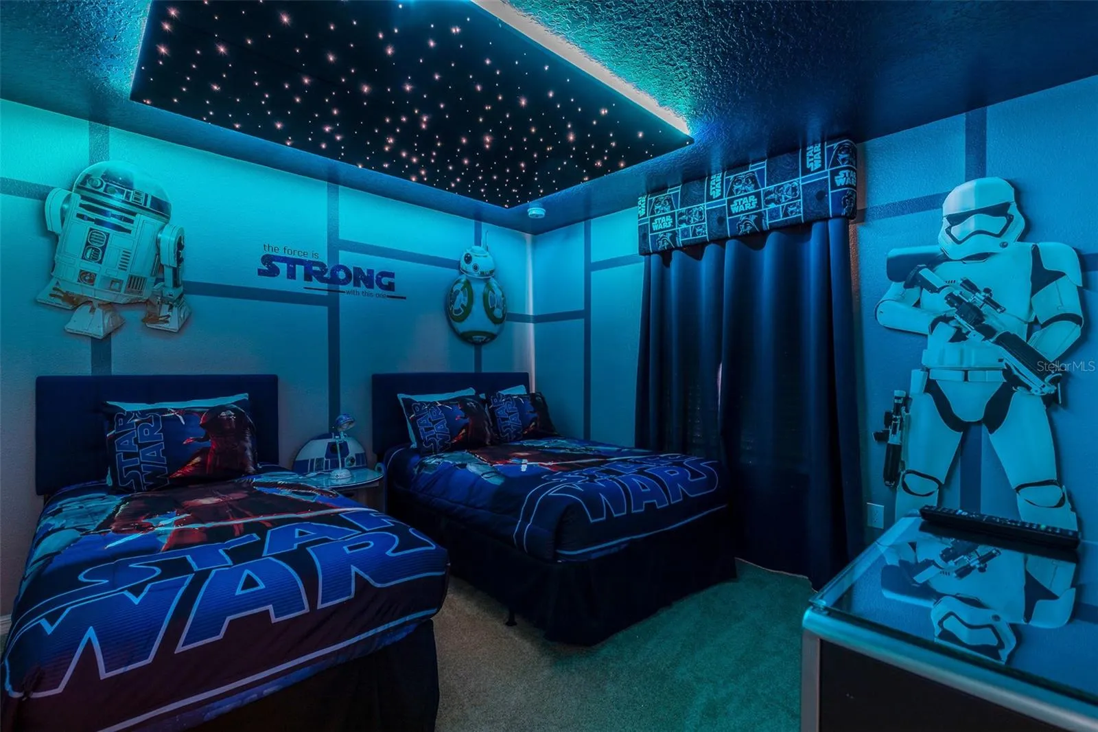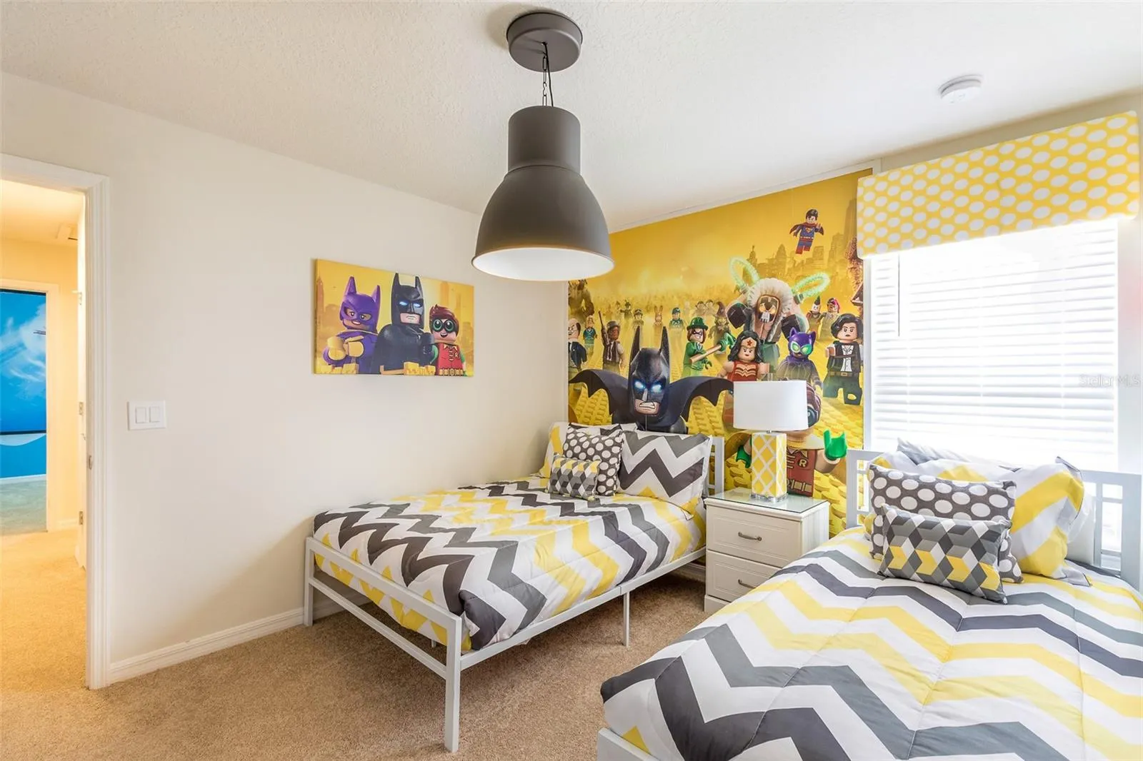 Welcome to this stunning 8-bedroom, 6-bathroom vacation home in the highly sought-after resort community of Windsor at Westside. Situated on a corner lot with a partial pond view, this turn-key property was built in 2019 and is fully furnished and professionally decorated to maximize short-term rental income. The home features a spacious open floor plan with a modern kitchen boasting granite countertops and stainless steel appliances. Designed with fun and comfort in mind, the home includes three themed bedrooms (Star Wars, Batman, and Little Mermaid), a Spider-Man themed loft with a TV, sofa, and pool table, and a fully converted garage game room with an Avatar theme, pool table, air hockey, and foosball. Two bedrooms, including the master suite, are located on the first floor, with five additional bedrooms upstairs, offering plenty of space for large groups. Enjoy Florida living at its finest with a private, west-facing heated pool and spa overlooking the serene pond. Windsor at Westside offers resort-style amenities including a 10,000 sq. ft. clubhouse, a large pool with a slide and tiki bar, fitness center, volleyball court, sundry shop, and video arcade. Located just minutes from Orlando’s world-renowned theme parks, shopping, and dining, and just over an hour to Florida’s beautiful beaches, this home is perfect for both personal use and as a high-performing investment. HOA fees include internet, cable, lawn care, and daily trash pickup. Don’t miss this incredible opportunity—schedule your showing today!