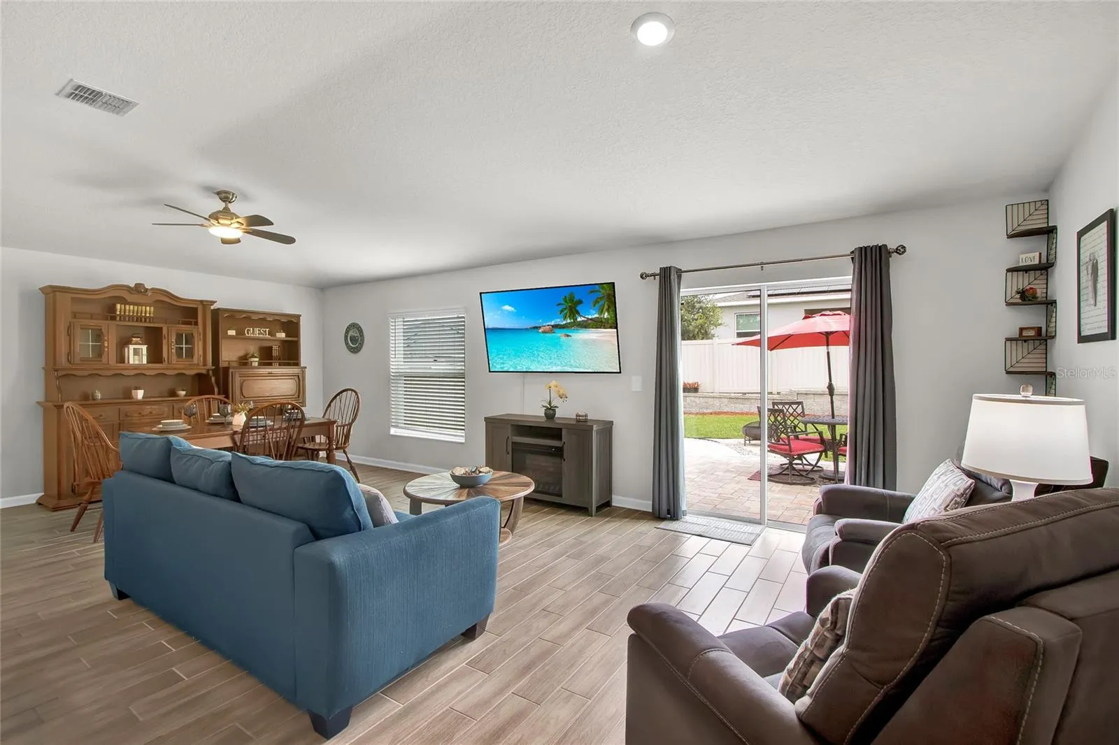 *** PRICE SLASHED *** *** FULLY FENCED LARGE BACK YARD *** *** PAVERED ENTERTAINMENT AREA *** *** SOLAR PANELS *** Welcome to 733 Citrus Reserve Blvd in Davenport, FL—a beautifully maintained Dover model by Lennar that offers comfort, efficiency, and style in one of the area’s most sought-after communities. This single-story home features 3 bedrooms, 2 bathrooms, and 1,555 square feet of well-designed living space. Step inside to discover an open-concept layout with stunning wood-look tile flooring that flows seamlessly through the main living areas, creating a warm and cohesive feel.