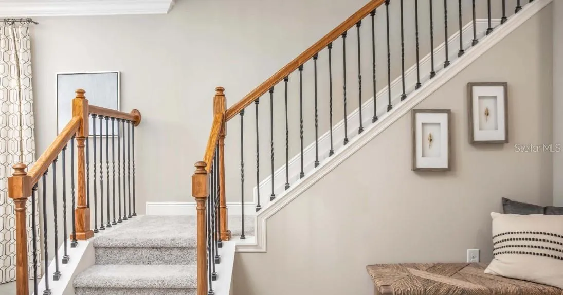 Upstairs, you’ll find four additional bedrooms—perfect for family, guests, or even a home office—along with a sleek iron handrail accenting the staircase.