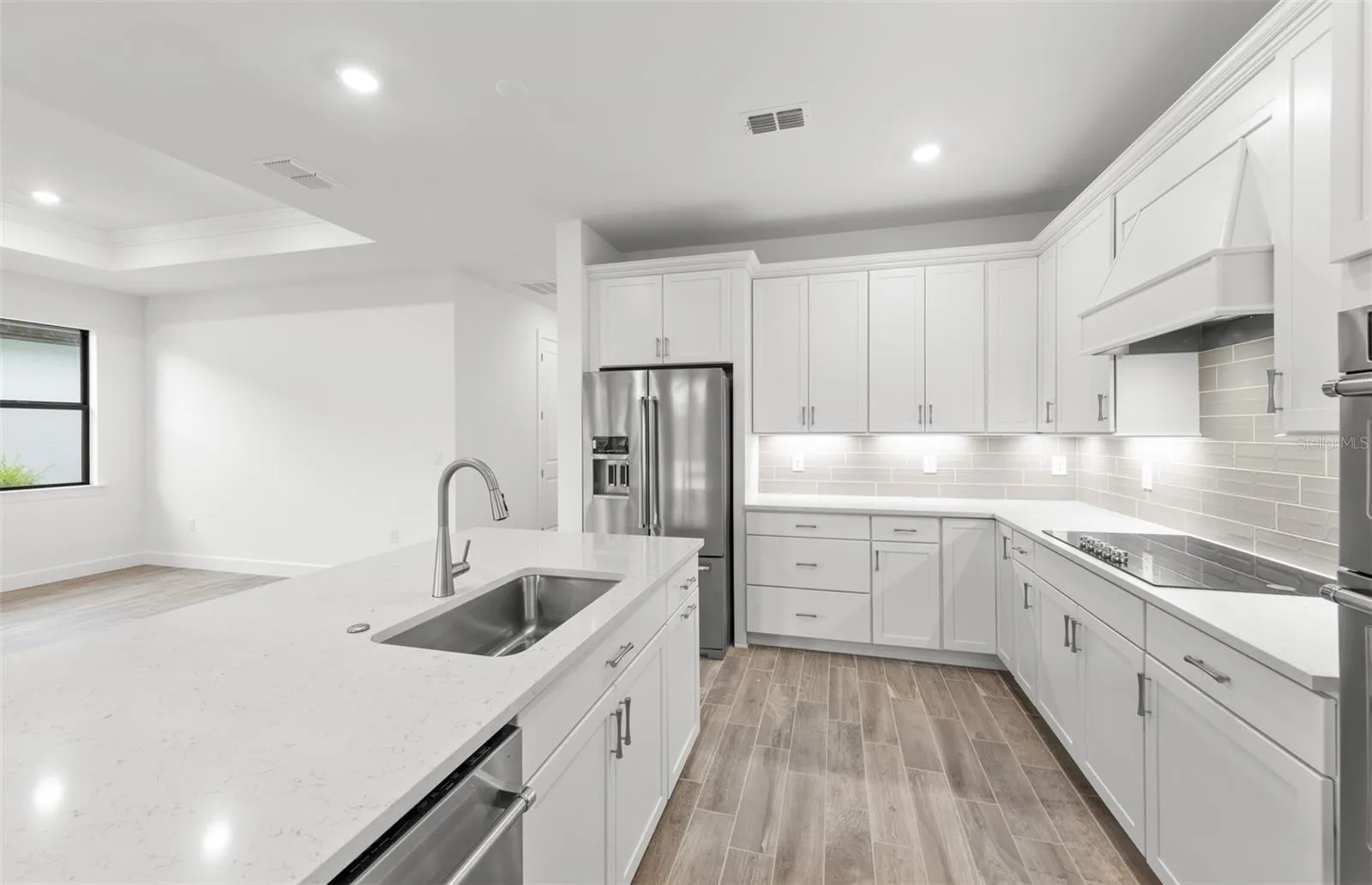 Introducing a beautifully designed new construction Mystique floor plan, thoughtfully crafted for both everyday living and effortless entertaining. This spacious home features four bedrooms, three full bathrooms, and zero corner sliding glass doors lead to an extended covered lanai. Carefully selected upgrades elevate the home’s style and functionality, including modern cabinets with quartz countertops, built in KitchenAid stainless steel appliances, and pendant lighting prewire over the kitchen island. The gathering room features a tray ceiling and the primary bath showcases extended tile to the ceiling, heavy glass shower doors, and upgraded tile throughout. With premium design touches and attention to detail, this Mystique home is a stunning blend of comfort, style, and modern living. Lakespur at Wellen Park, located in Venice, Florida, is the perfect place to call home for those seeking a vibrant lifestyle with coastal charm. This gated community will feature 68 future homesites and is part of Wellen Park, an award-winning master-planned community known for its thoughtful design and dynamic amenities. Residents will enjoy close proximity to world-class golf courses, pristine Gulf Coast beaches, and a variety of dining and shopping options. Within the community, residents can take advantage of a private amenity center featuring a resort-style pool, a cozy fire pit lounge, an event lawn, a playground, a fenced-in dog park, and a 12-foot-wide paved walking trail perfect for morning strolls or evening bike rides. Beyond Lakespur, Wellen Park itself offers even more, including schools, retail centers, a splash pad, scenic lakes for kayaking, and miles of trails.
