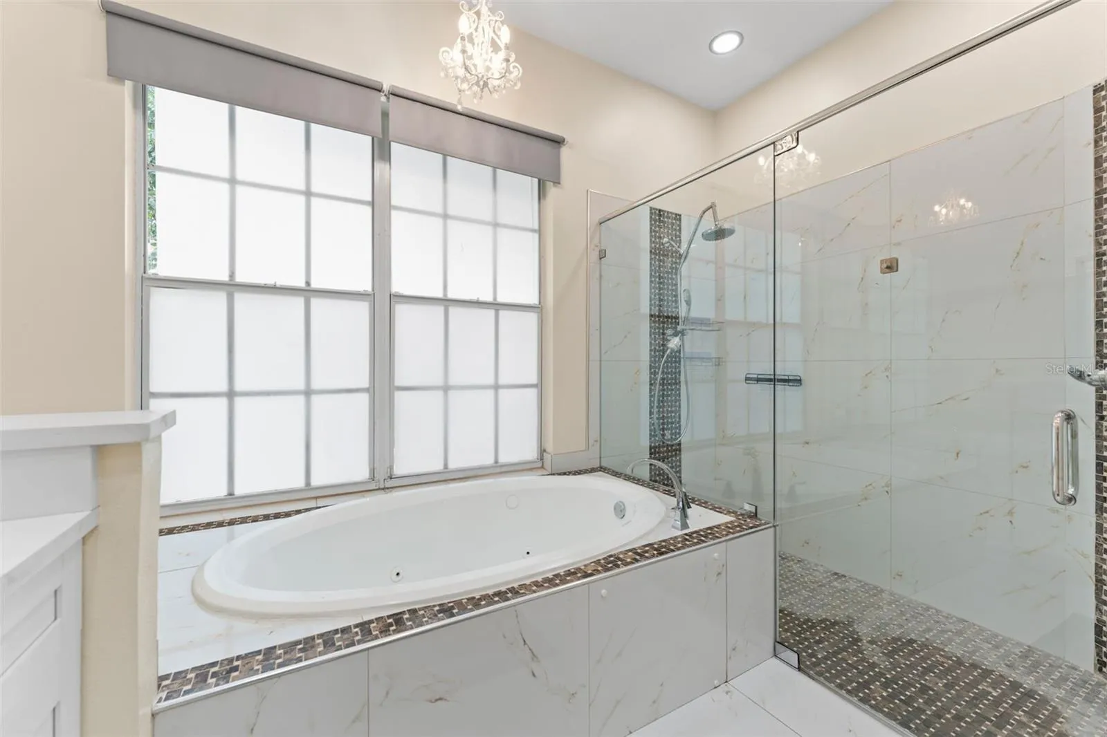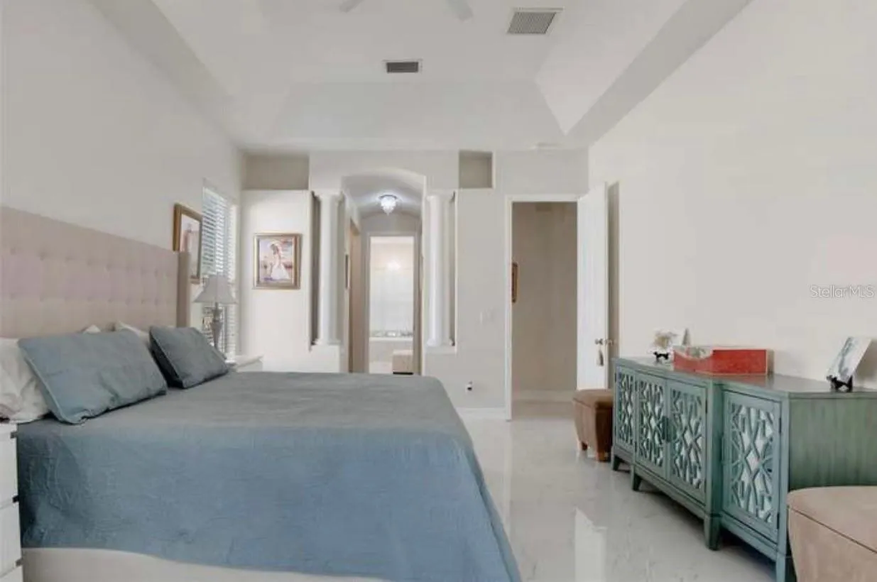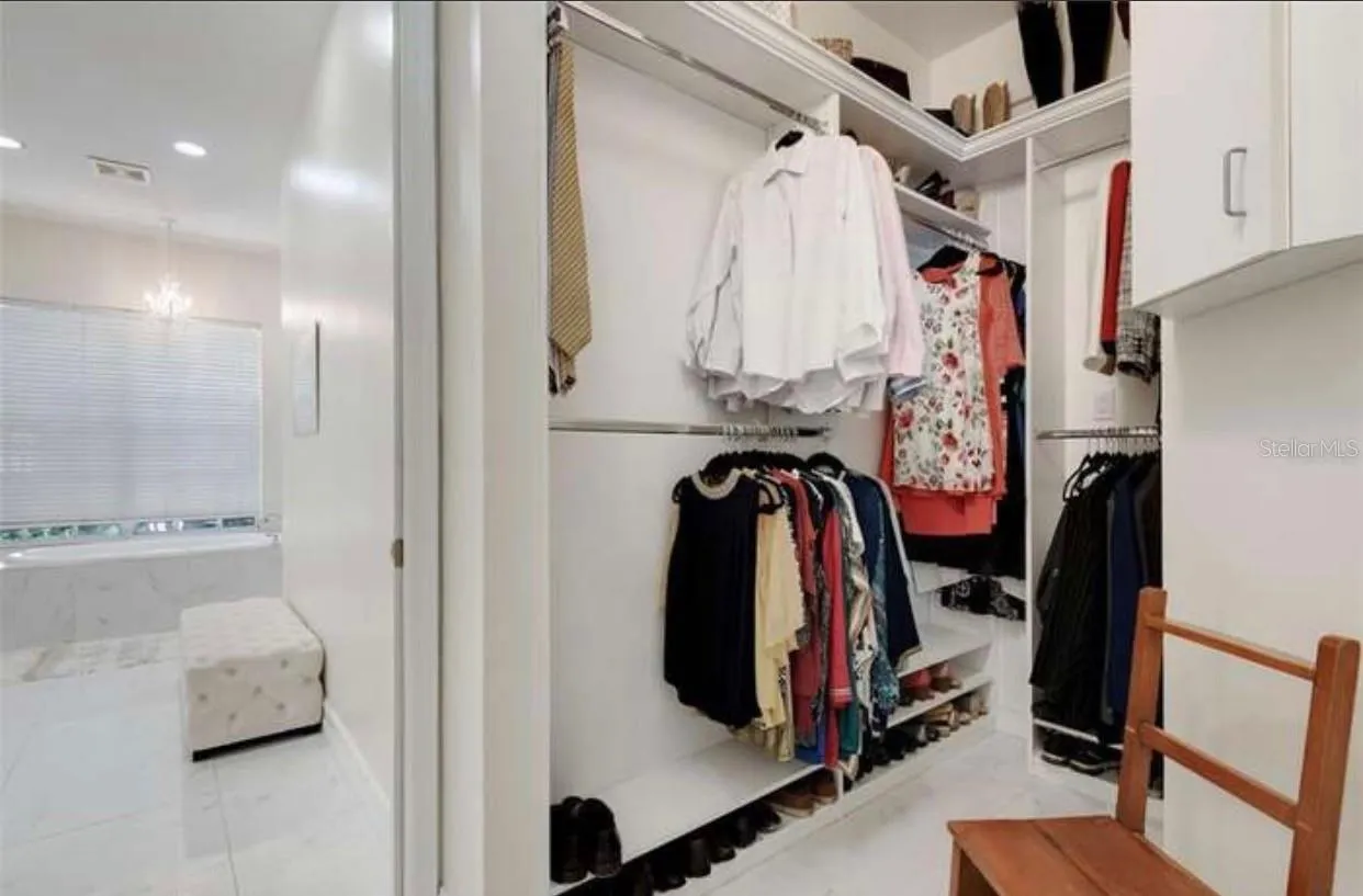 The spacious primary bedroom features a tray ceiling, 2 custom-made WALK-IN CLOSETS & large windows. The luxurious primary bathroom is the pillar of opulence with a large whirlpool tub, walk-in shower, and 2 sinks with dimmable LED Touch Button & anti-fog mirrors. French doors lead out to the enormous backyard which has gorgeous mango trees and ROOM FOR A POOL. The 3-car garage has a utility sink, floor-to-ceiling cabinets & overhead storage racks.
