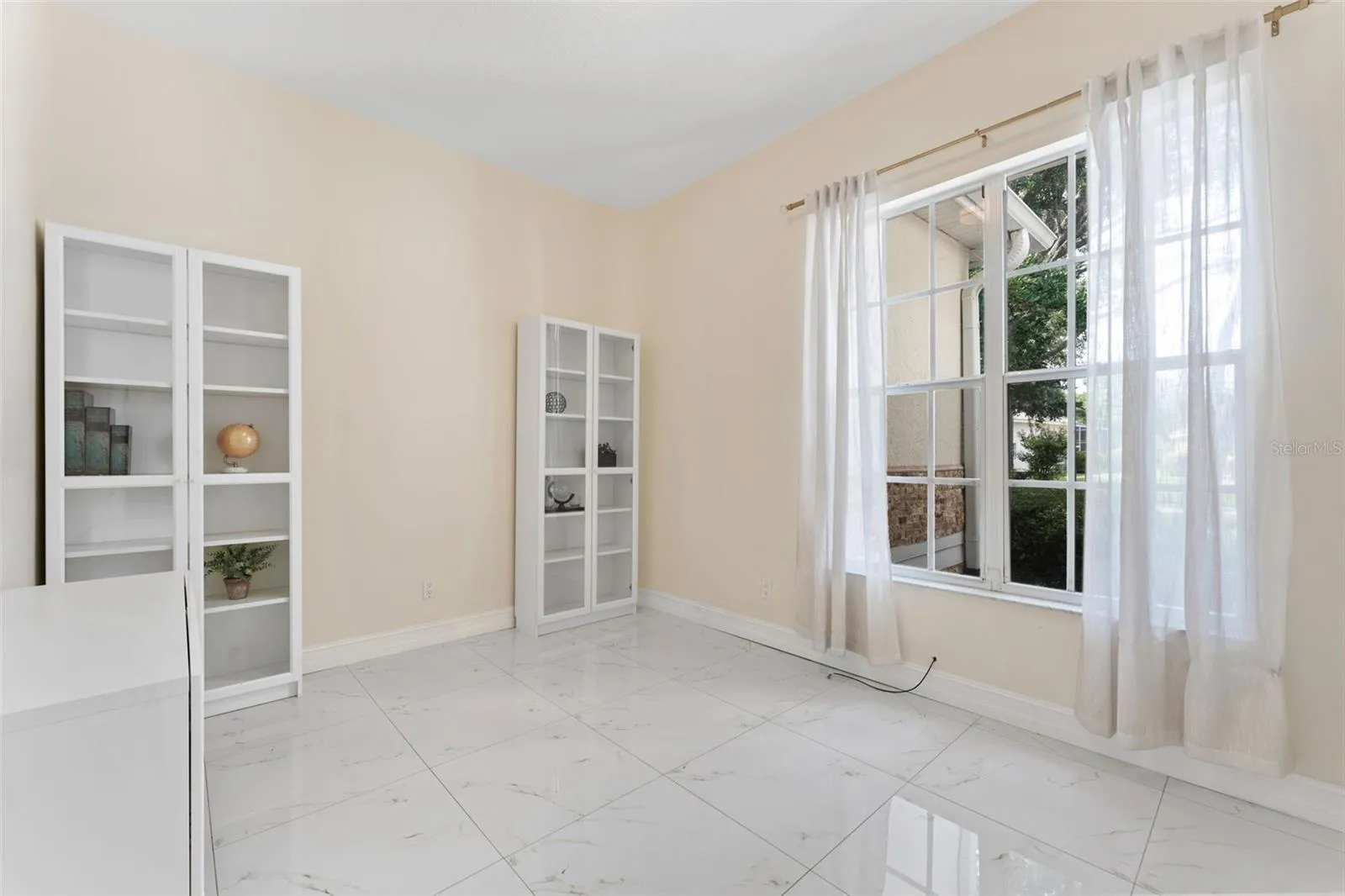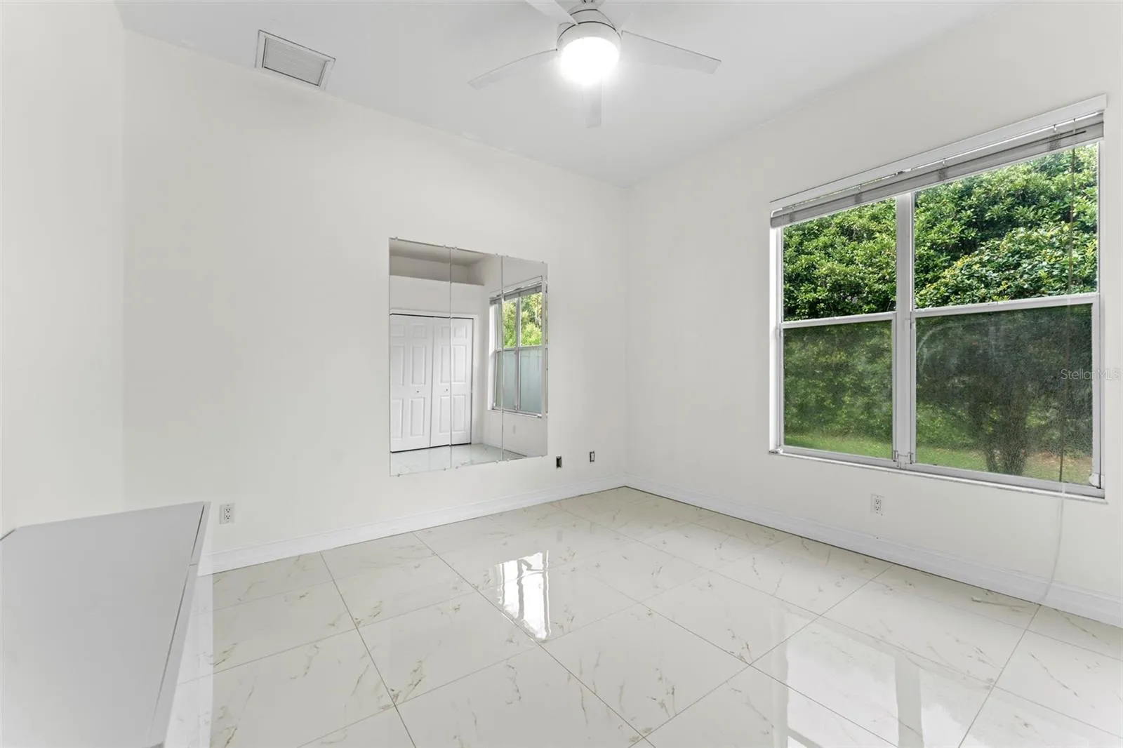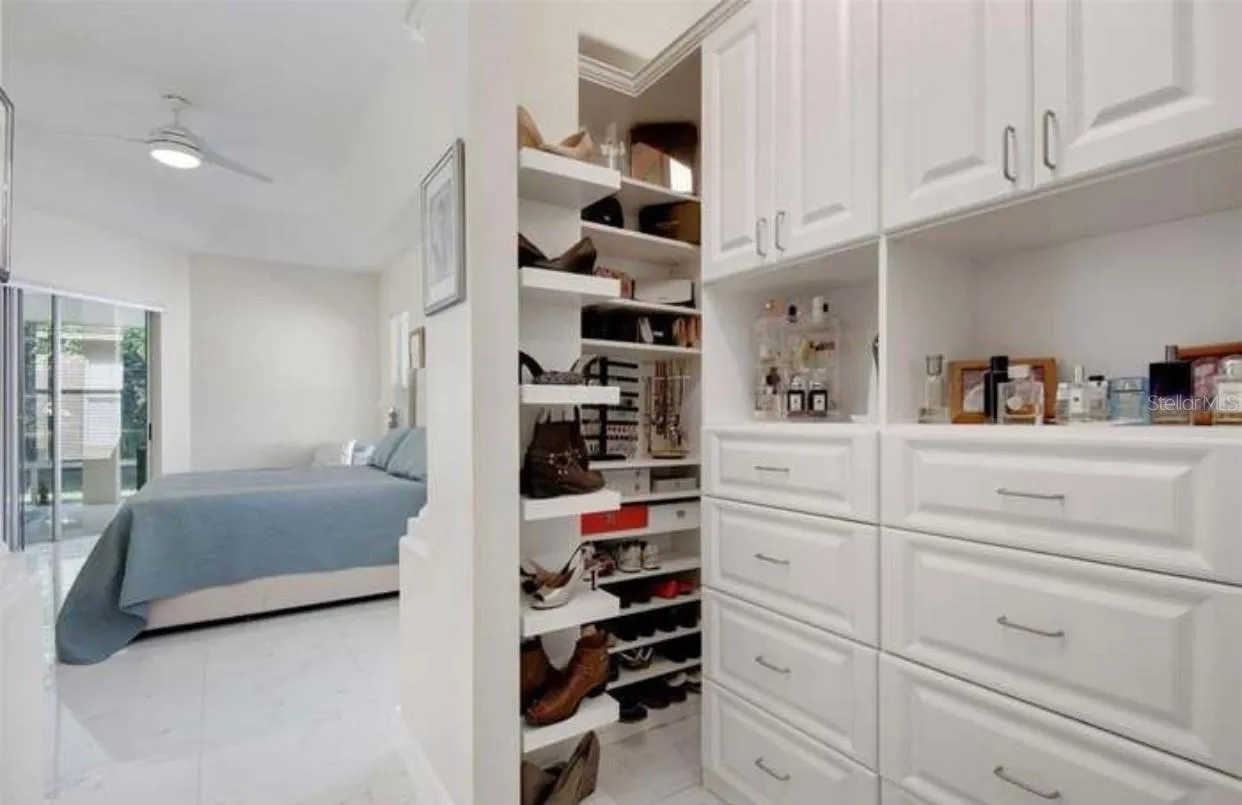 The spacious primary bedroom features a tray ceiling, 2 custom-made WALK-IN CLOSETS & large windows. The luxurious primary bathroom is the pillar of opulence with a large whirlpool tub, walk-in shower, and 2 sinks with dimmable LED Touch Button & anti-fog mirrors. French doors lead out to the enormous backyard which has gorgeous mango trees and ROOM FOR A POOL. The 3-car garage has a utility sink, floor-to-ceiling cabinets & overhead storage racks.