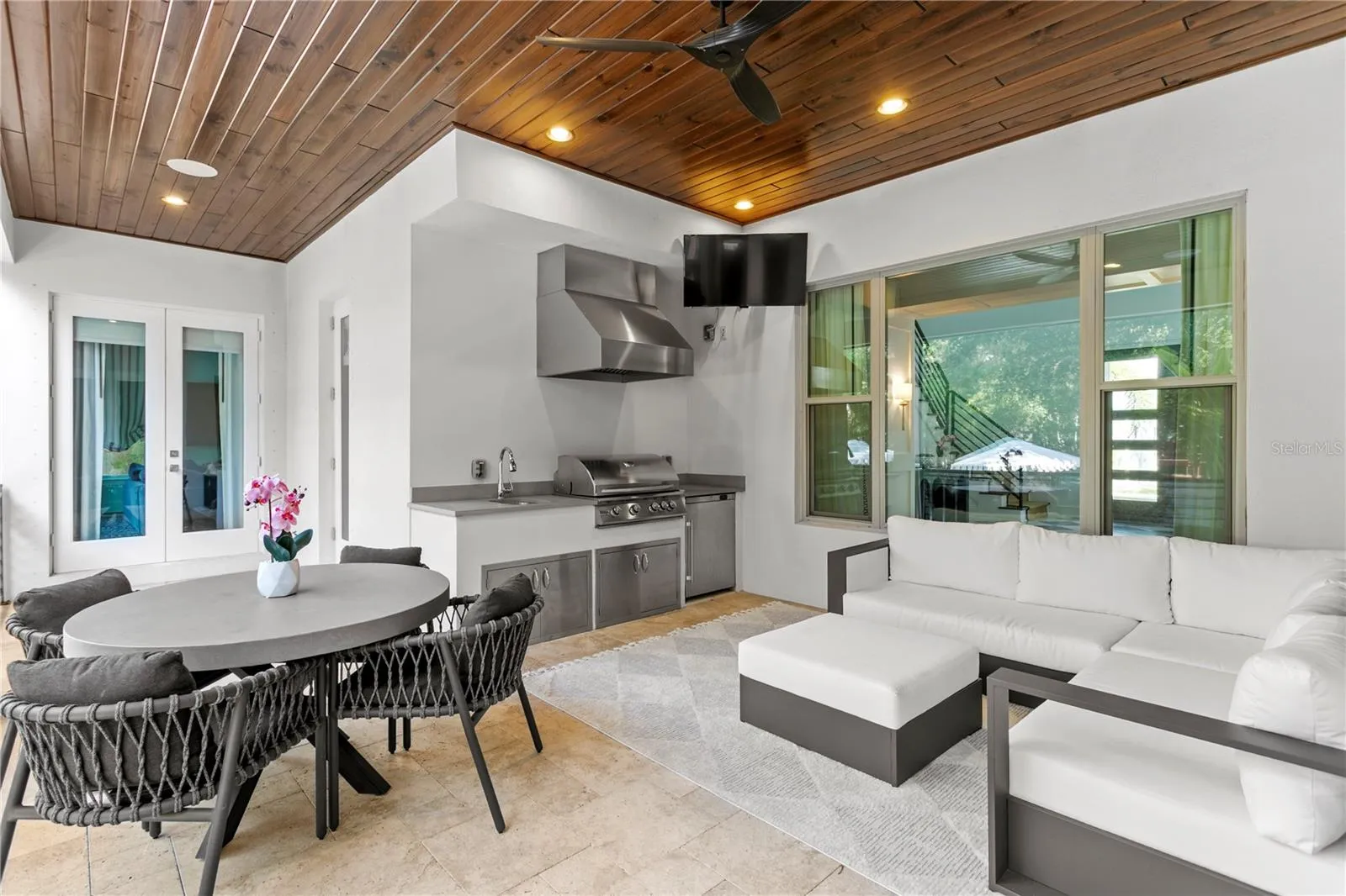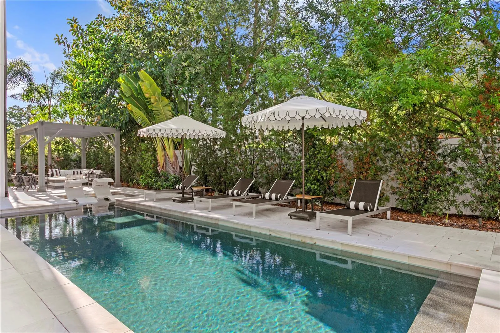 Welcome to 4807 W Longfellow Avenue, an exceptional luxury residence nestled in the Sunset Park neighborhood of South Tampa. Completed in 2017, this elegant 4-bedroom, 4-bathroom plus Bonus Room (possible 5th bedroom), smart home offers over 5,100 square feet of refined living space. From its stately two-story foyer to its thoughtfully designed interior spaces, every detail of this home speaks to quality and craftsmanship. The heart of the home is a chef’s dream kitchen, featuring top-of-the-line Thermador stainless steel appliances, including a 48-inch built-in refrigerator, professional gas range with double ovens, sleek Quartz countertops, a large center island, breakfast bar, and an oversized hidden walk-in pantry. The open-concept design flows seamlessly into a spacious great room with gas fireplace, perfect for entertaining or relaxing with family. A formal dining room, mudroom, full bath, and a versatile fifth bedroom/media room complete the well-appointed first floor. Upstairs, the luxury primary suite spans the east wing, offering two boutique-style walk-in closets, a morning kitchen with a sink plus beverage fridge, and a spa-inspired bathroom adorned with Carrara marble dual vanities, an oversized rainfall shower, and freestanding soaking tub. Step outside through elegant French doors to discover your own outdoor oasis. The screened lanai features a complete outdoor kitchen with a gas grill, professional hood, beverage refrigerator and undermount stainless sink; an ideal setting for alfresco dining and entertaining year-round. Additional upgrades include oil-finished Maxi Line engineered hardwood floors throughout, JELD-WEN impact-resistant Low-E insulated windows, smart home technology, and an oversized two-car garage with 15-foot ceilings. Located within a top-rated school district and just minutes from Tampa International Airport, downtown Tampa, major bridges, fine dining, and premier shopping, this home offers the perfect balance of elegance, convenience, and modern living.