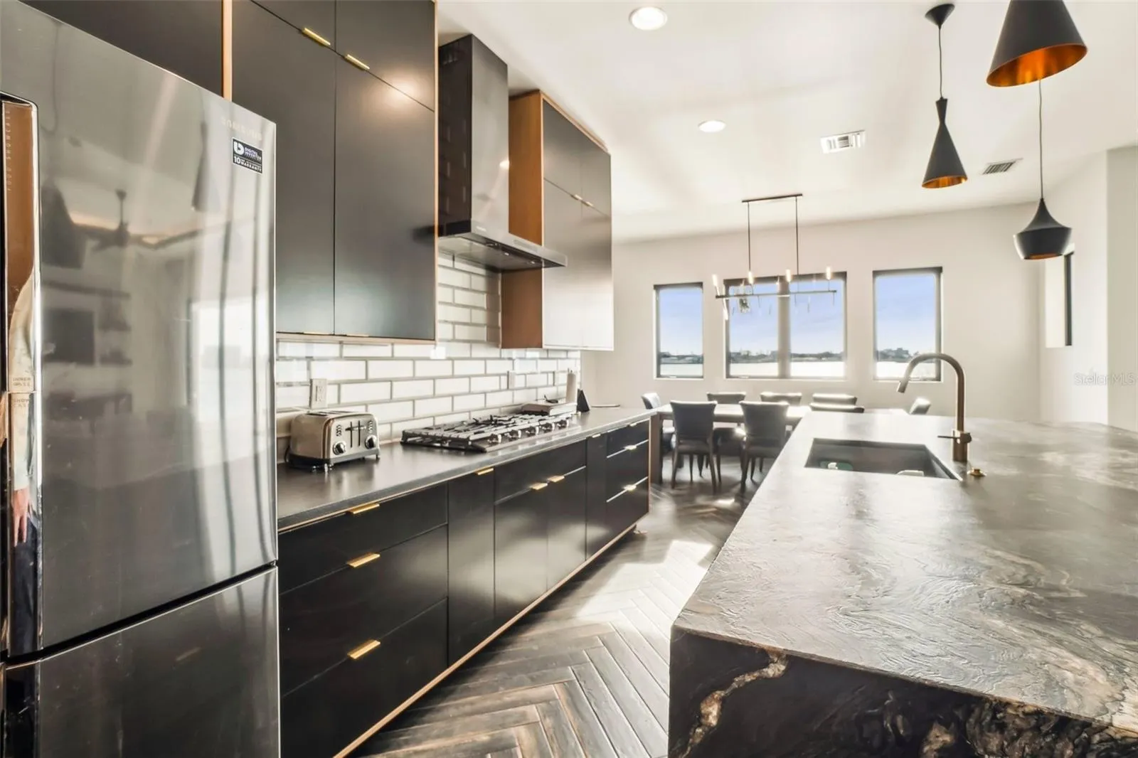 The gourmet kitchen is a chef’s dream, equipped with a gas range, top-of-the-line appliances, a custom wine cellar, and a spacious center island, perfect for hosting gatherings. Step into your private waterfront paradise, complete with a saltwater pool and spa, outdoor kitchen, and fireplace, ideal for relaxing or entertaining under the night sky.