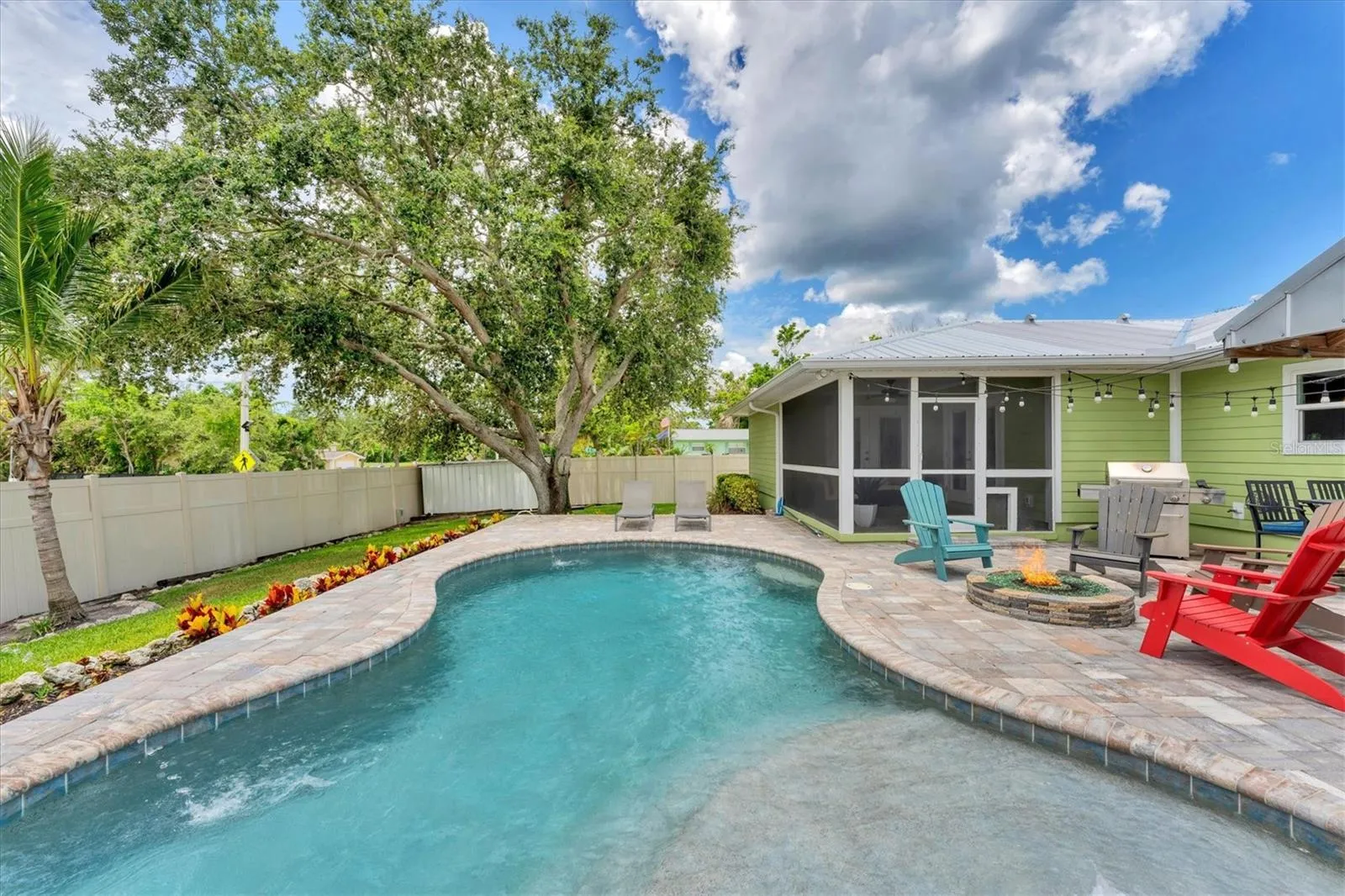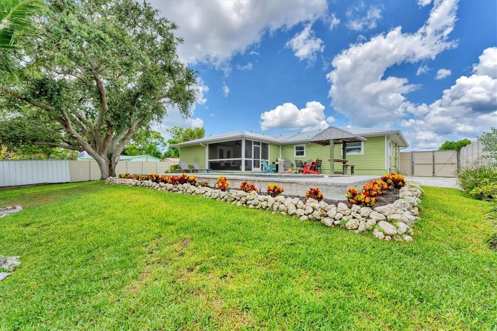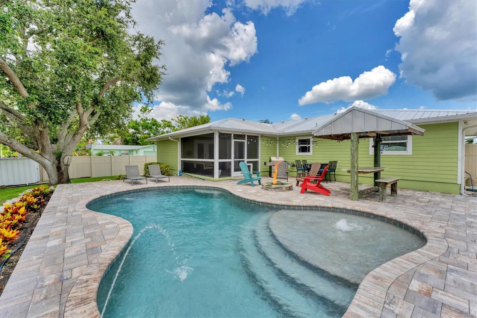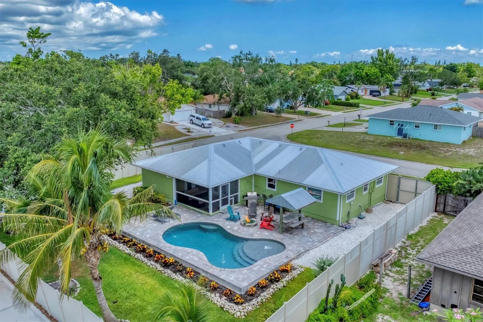 Discover Florida, living at its finest in this breathtaking home, perfectly positioned on a spacious corner lot. As you step inside, you’ll be welcomed by a warm, inviting living room filled with natural light, seamlessly connecting to a generous kitchen, dining area, and cozy TV space — all enhanced by elegant French doors that open to the lanai. The kitchen is a chef’s dream, offering ample cabinets, abundant counter space, and a large island that provides extra storage and a perfect spot for casual dining. With sleek stainless steel appliances and stunning quartz countertops, this space is not only functional but designed for unforgettable entertaining experiences. This thoughtfully designed split floor plan ensures privacy for everyone. On one side of the home, discover two spacious bedrooms accompanied by a full bath, while the luxurious primary suite awaits on the opposite side. The primary features a large walk-in closet and an exquisite ensuite bathroom, complete with quartz countertops and an oversized tiled walk-in shower with double showerheads. Easy access to the lanai through French doors makes this suite even more enticing. Step outside to the lanai and be captivated by the picturesque view of the sparkling pool and beautifully landscaped backyard. The backyard boasts a pool with stunning fountains, a built-in fire pit for cozy nights, and a covered dining area with quartz countertops — a perfect spot to unwind and entertain. There is an oversized shed and other small storage units. There is also ample space to park your RV or boat on either side of the house. Located close to the scenic Robinson’s Preserve and DeSoto National Memorial. This home could be sold turn key, perfect opportunity for an investor or second home. Newer metal roof (2021). Newer A/C (2021). New electrical (2021). Is this your perfect match? Book your showing today!