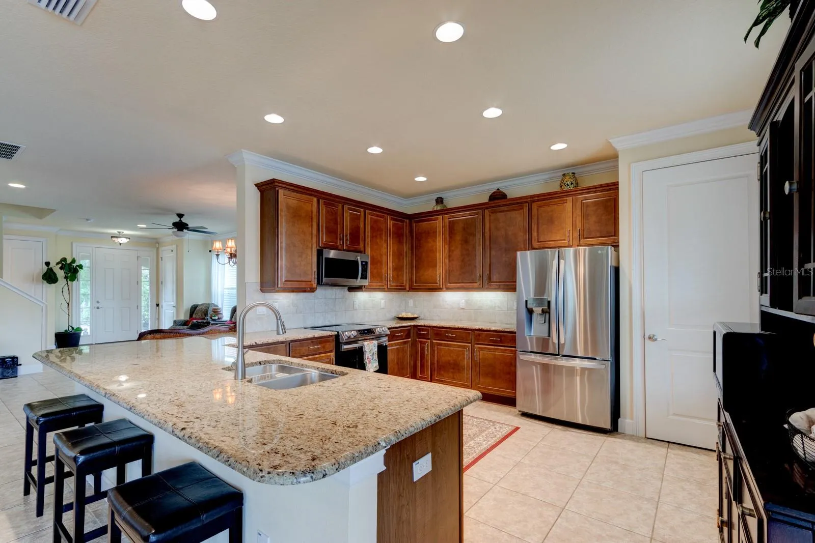 Welcome to Your Dream Home in the Coveted Covendale Community of Waters Edge! Prepare to be impressed by this stately and meticulously maintained 4-bedroom, 3.5-bathroom home, perfectly nestled on a quiet cul-de-sac in this exclusive gated neighborhood. The front elevation is enhanced by elegant stone pillars that beautifully frame the inviting covered porch and entryway. Peaceful, private, and packed with upgrades—this home checks every box. Step inside to a spacious, open-concept floor plan where natural light floods the formal living area through multiple windows, highlighting the elegant tile floors. As you move through the space, your eyes are drawn to the stunning water view framed by expansive 3-pane sliding glass doors that open to a covered back porch—ideal for morning coffee or evening refreshment. The kitchen is a chef’s dream with abundant upper and lower cabinetry, striking granite countertops, a stylish tile backsplash, and brand-new stainless steel appliances (oven, refrigerator, and microwave). The breakfast bar flows seamlessly into the oversized family room, making it the perfect spot for entertaining, game nights, or just relaxing together. Upstairs, you’ll find bamboo flooring throughout the bedrooms, including a versatile flex space, ideal for a play area, home office, reading nook, or craft area. The spacious primary suite is a true retreat, featuring a tray ceiling, serene pond views, and enough room for a sitting area. The spa-like en-suite bathroom offers a luxurious garden tub, a walk-in tiled shower, and a dual-sink granite vanity. Practical features abound: recessed lighting and crown molding throughout the main floor, under-stair storage, a 2024 hybrid heat pump water heater, and all windows have been replaced. Waters Edge is a beautifully landscaped community close to top-rated schools, shopping, restaurants, and major access roads-everything you need right at your fingertips.